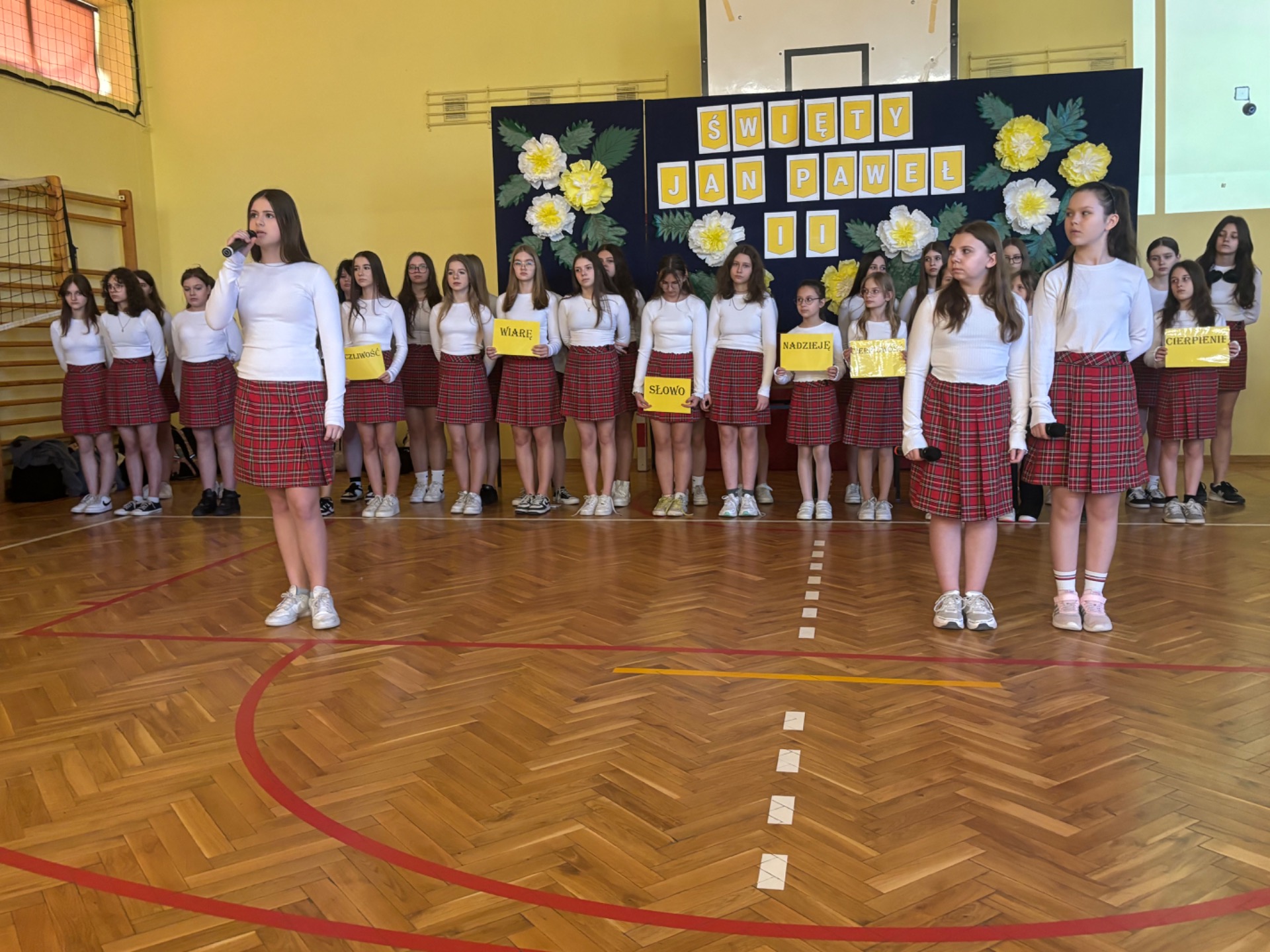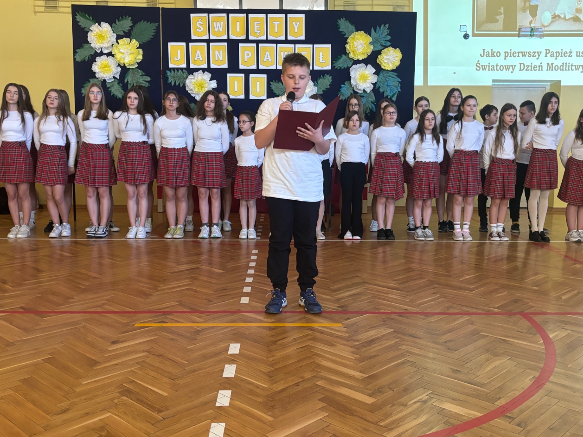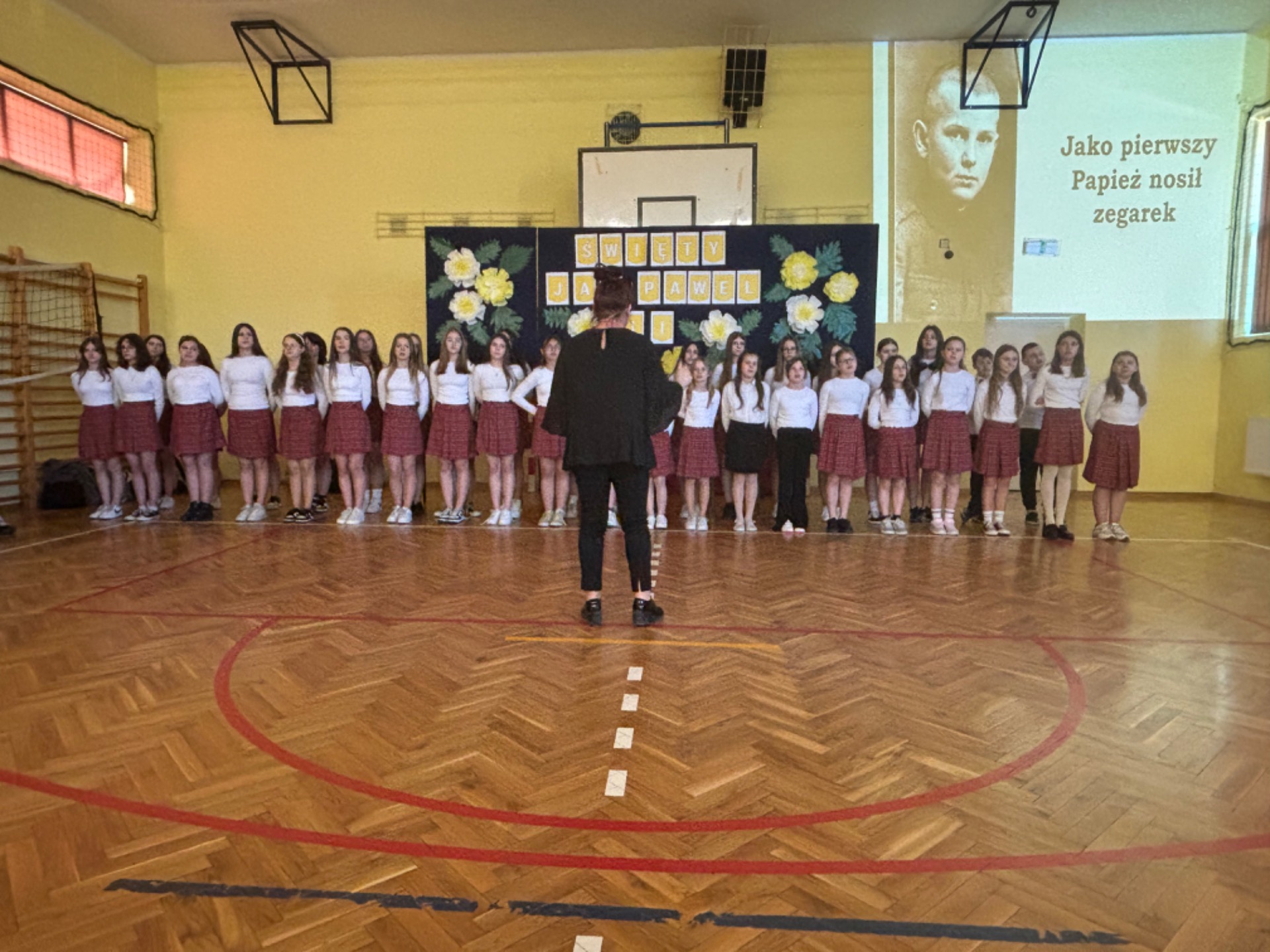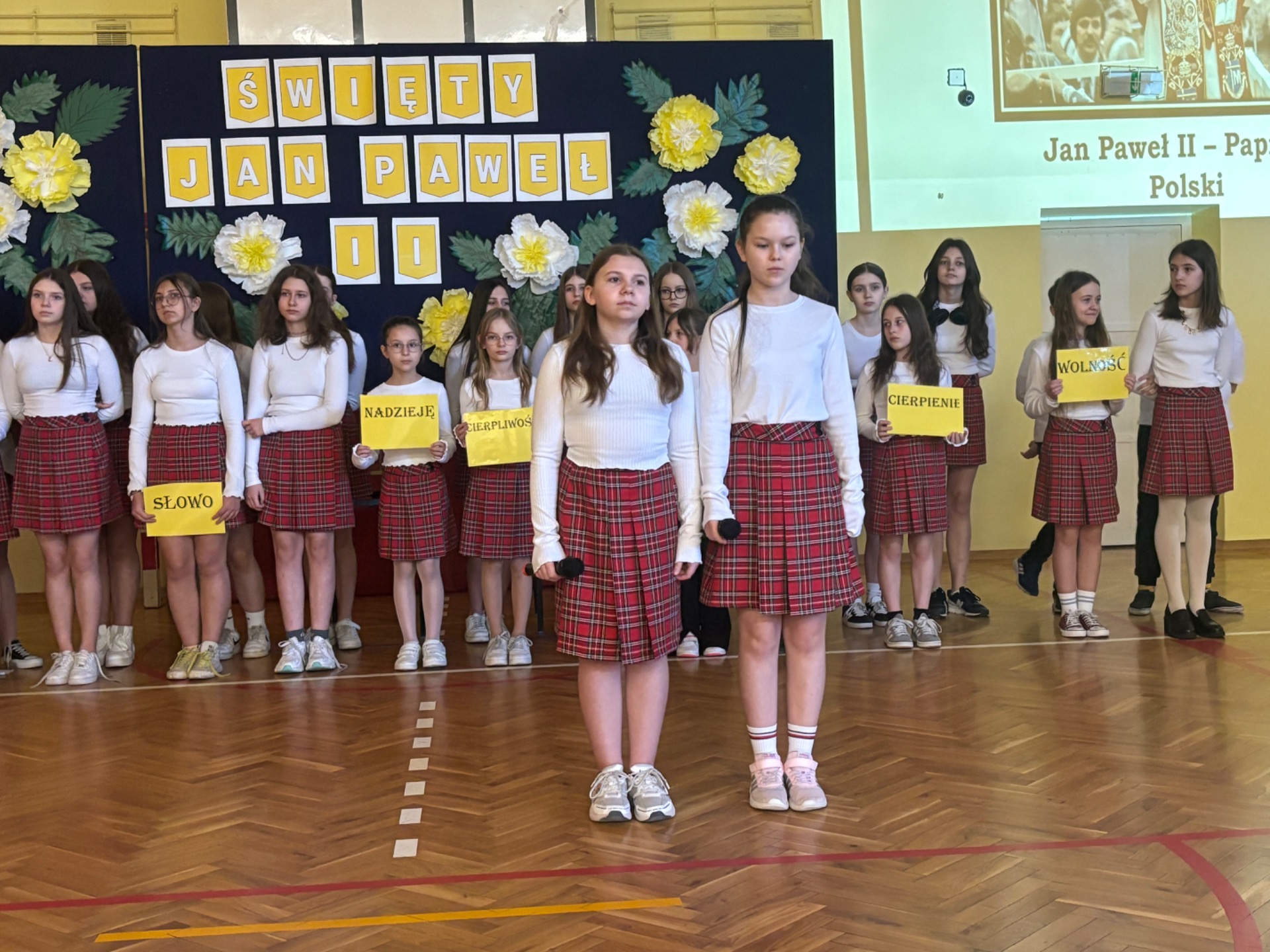 Dlatego postanowiliśmy w naszej szkole zainteresować uczniów Jego osobą, aby na nowo odkrywać – wspólnie z uczniami, rodzicami i wszystkimi chętnymi z naszej lokalnej , małej społeczności – nauczanie Jana Pawła II .