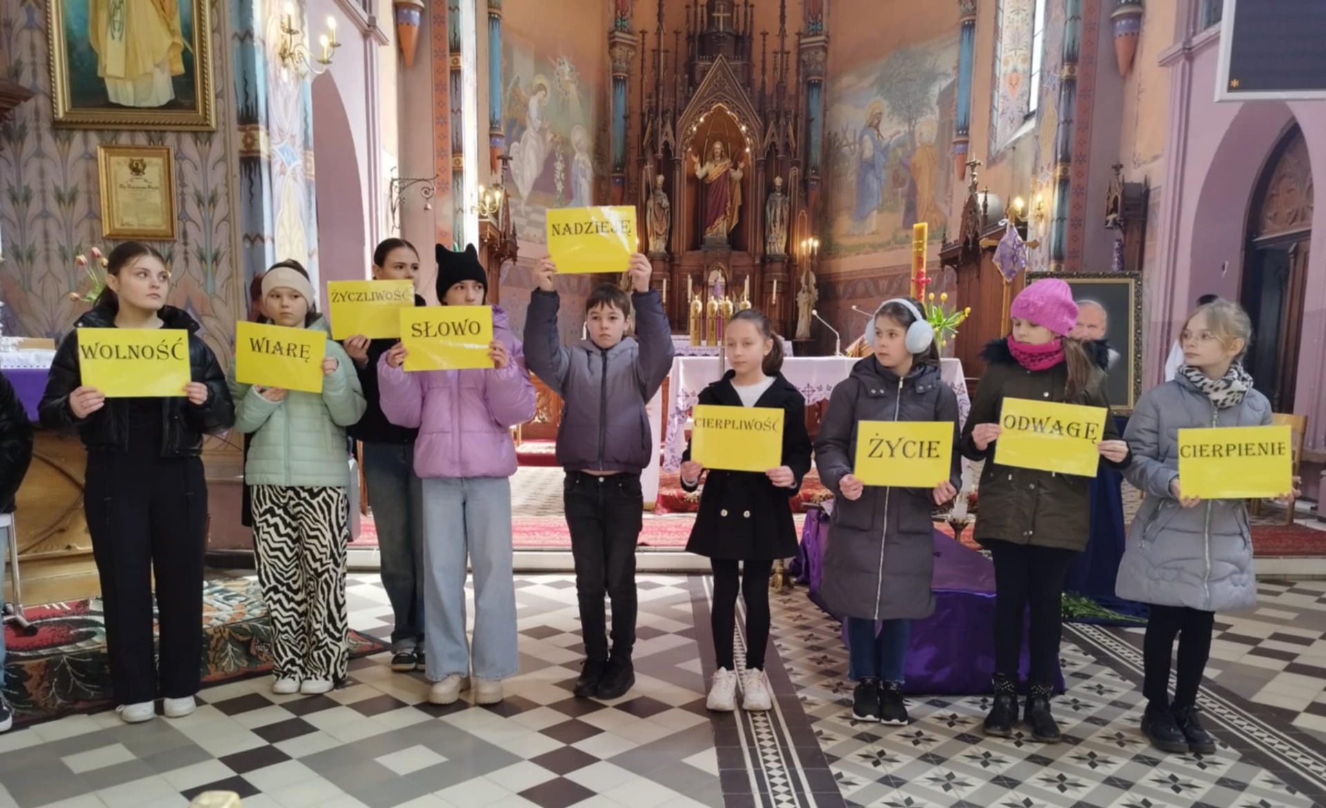 Podczas niedzielnej mszy świętej w Kościele Parafialnym w Nowym Duninowie nasi uczniowie z okazji 20 rocznicy śmierci Papieża Polaka przypomnieli postać Świętego Jana Pawła II. Przepiękny występ słowno-muzyczny w wykonaniu uczniów zostanie na długo w pamięci.