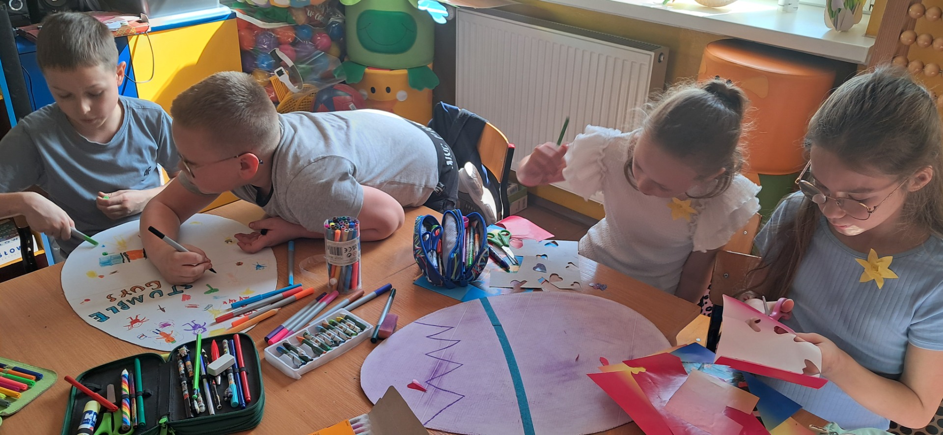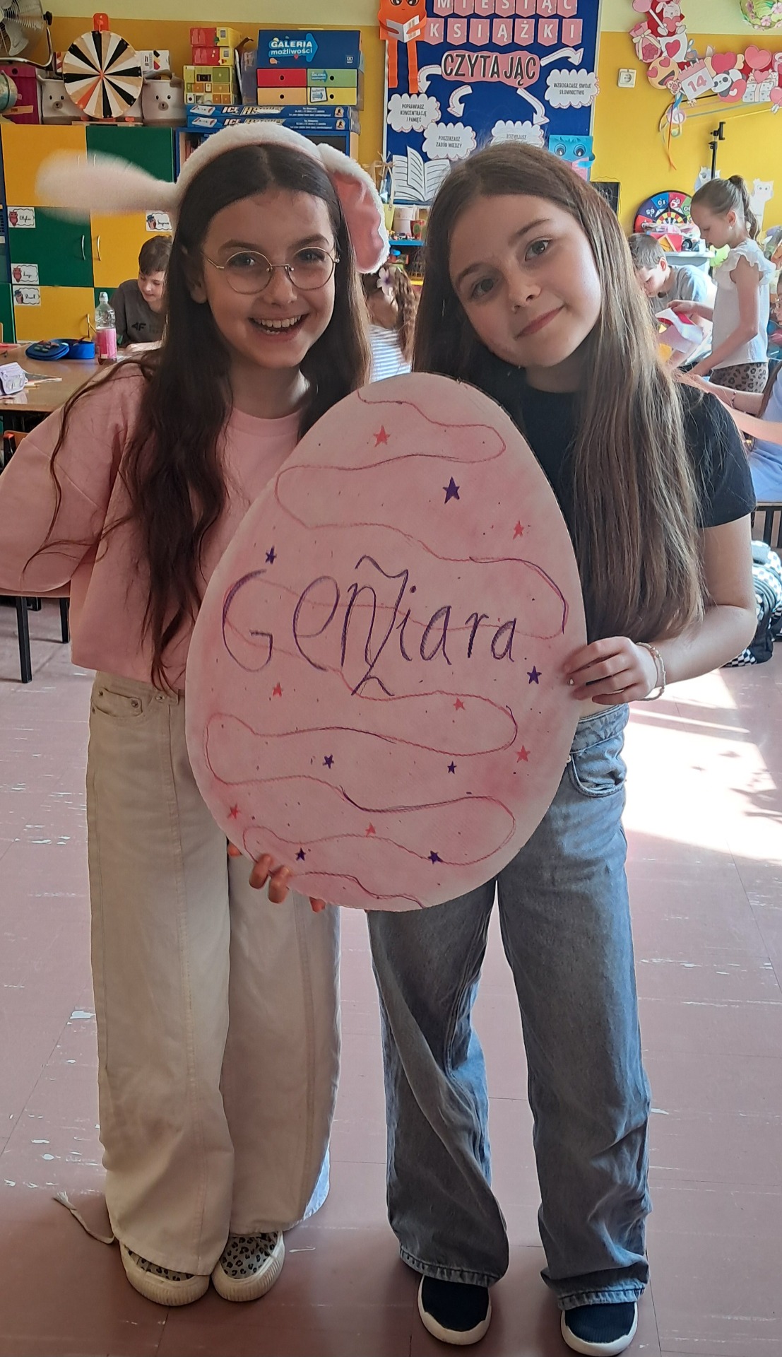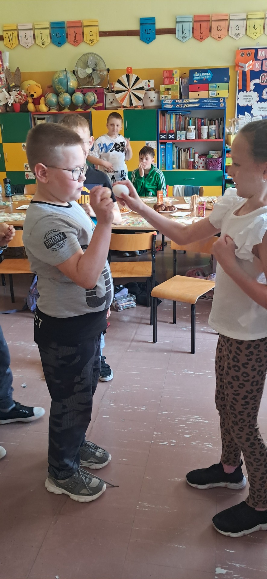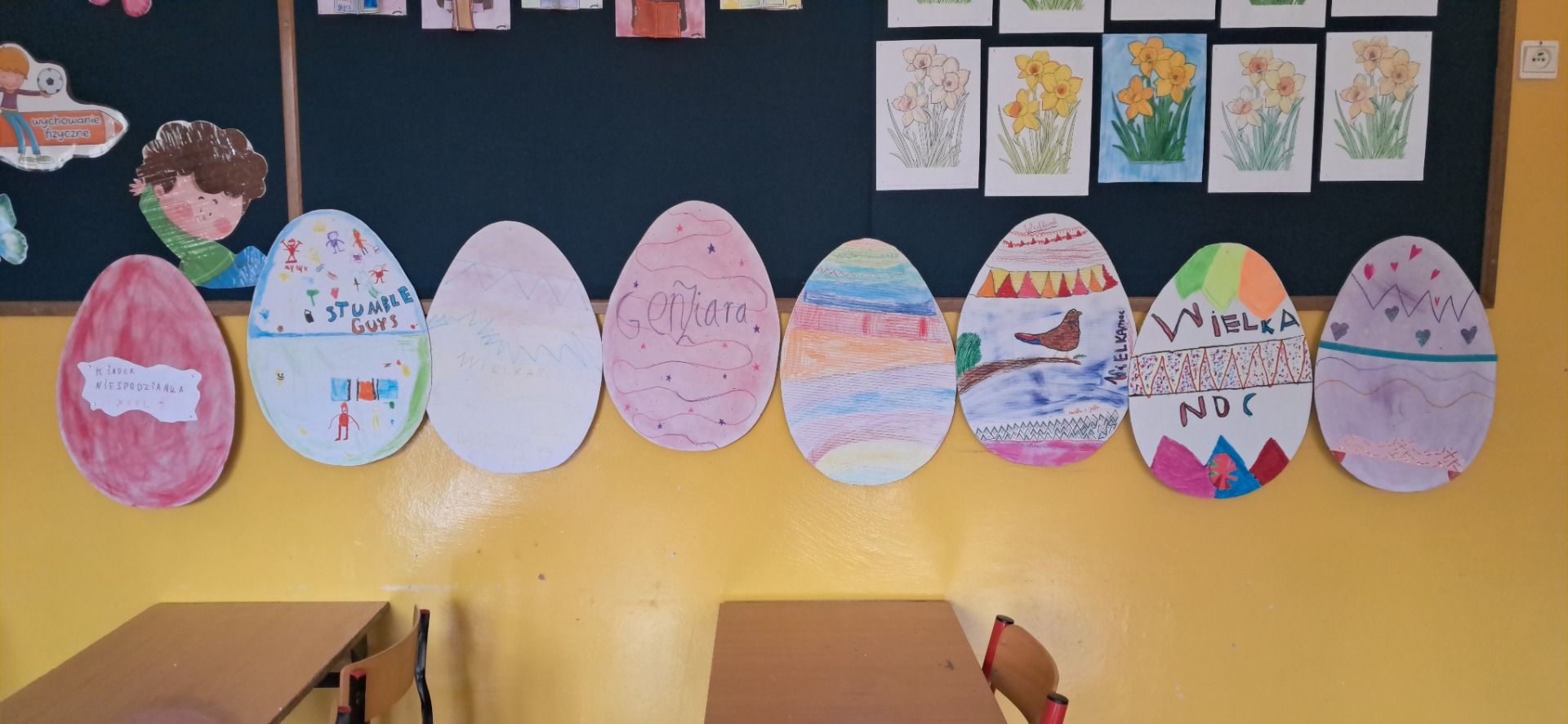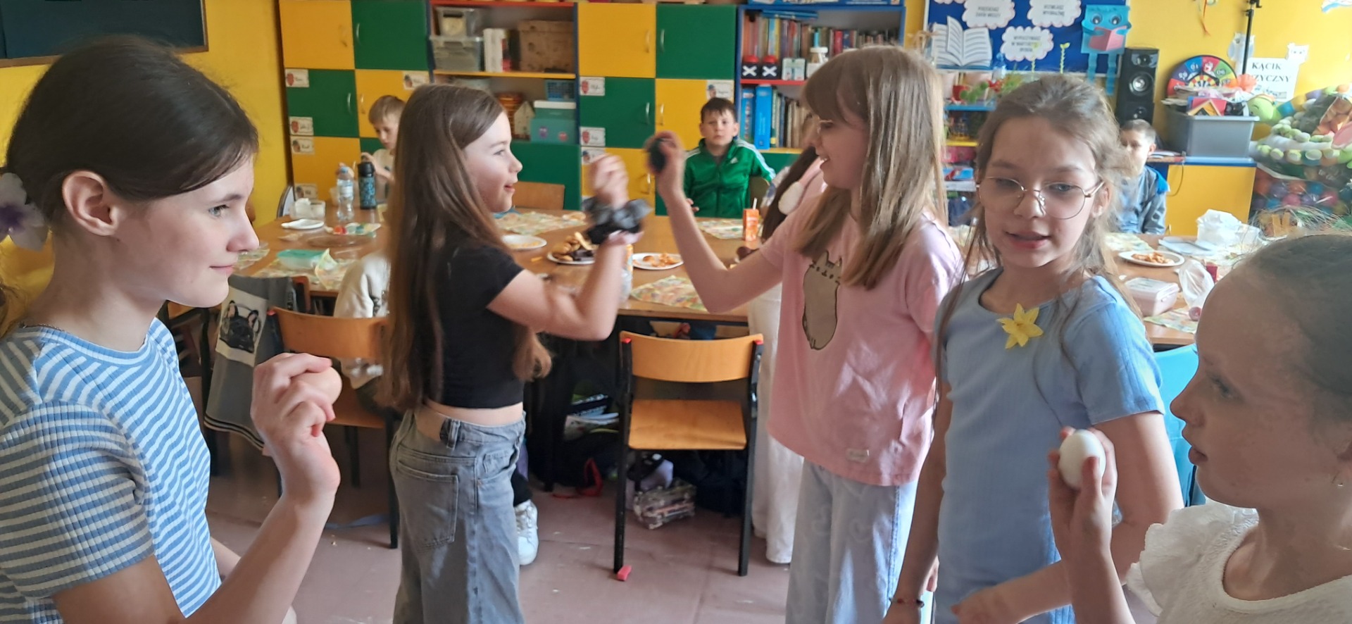Święta Wielkanocne to święta radosne, przepełnione wiarą i nadzieją. W całej szkole mogliśmy poczuć atmosferę zbliżających się świąt. Nasz dzień był bardzo aktywny. Wykonywaliśmy ozdobne jajka wielkanocne, nie zabrakło zabaw i pogadanek na temat tradycji wielkanocnego koszyczka, śniadania z całą rodziną, śmigusa-dyngusa oraz zwyczajów ludowych w różnych regionach Polski i świata. Najwięcej zabawy było przy pojedynku na najbardziej wytrzymałe jajko i przy turlaniu jajek, które najdalej się poturla. Życzymy wszystkim spokojnych, zdrowych i radosnych Świąt Wielkanocnych.