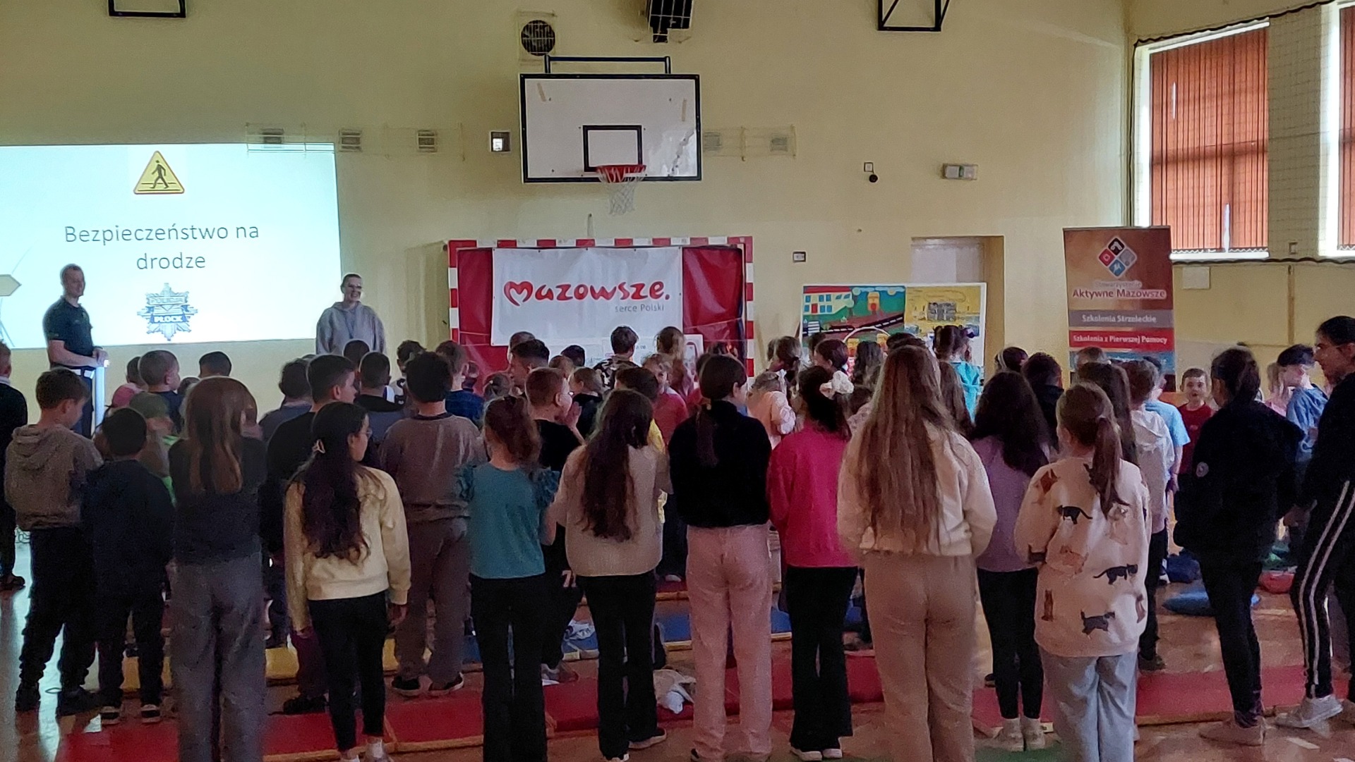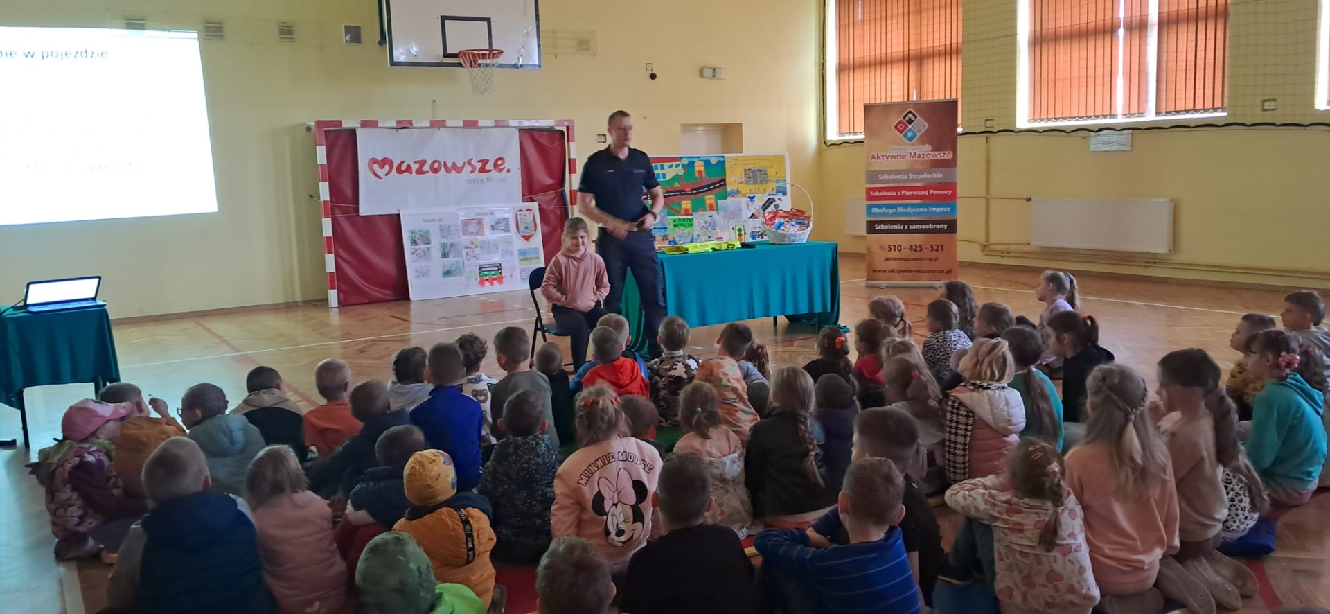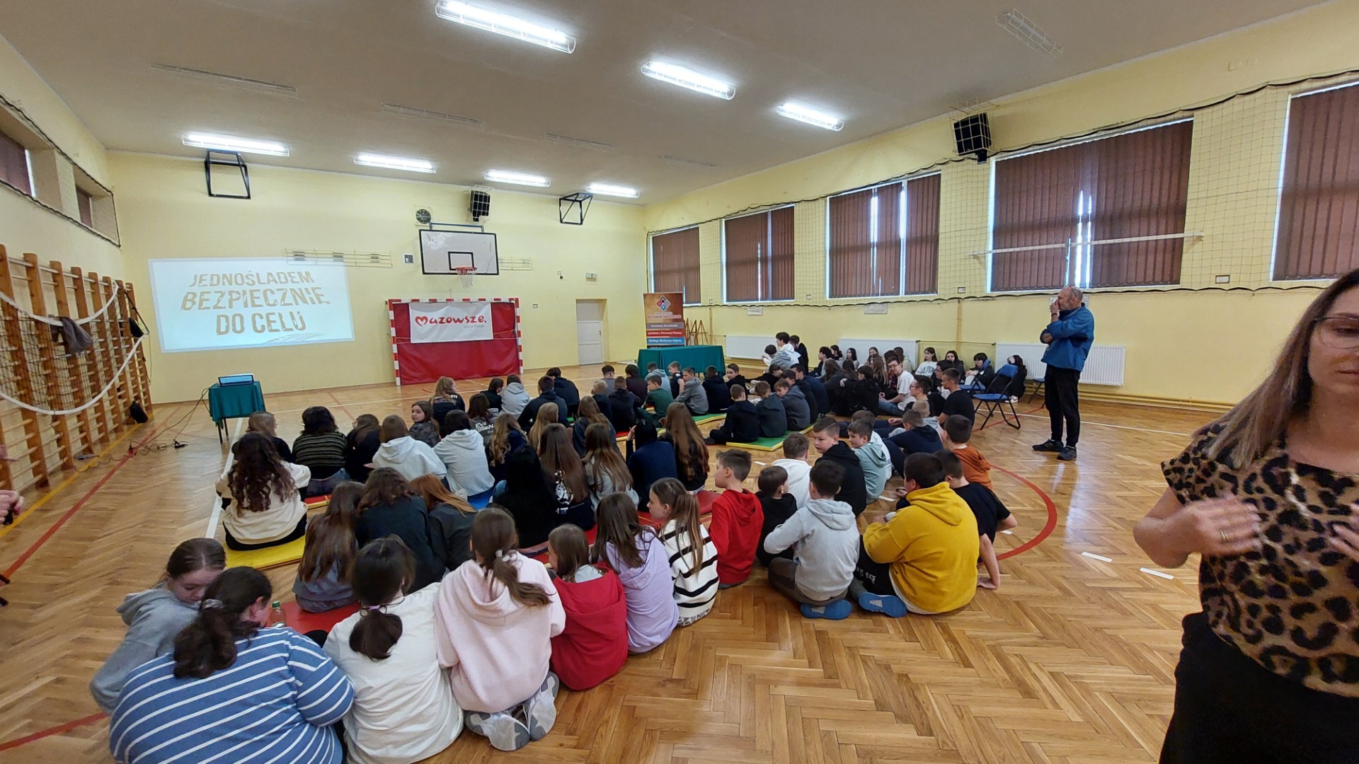 Następnie uczniowie uczestniczyli w zajęciach, podczas których Asp.szt. Przemysław Nec przybliżył zasady bezpieczeństwa na drogach dla najmłodszych oraz omówił z młodzieżą zasady poruszania się pojazdami takimi jak elektryczne hulajnogi, rowery i motorowery.