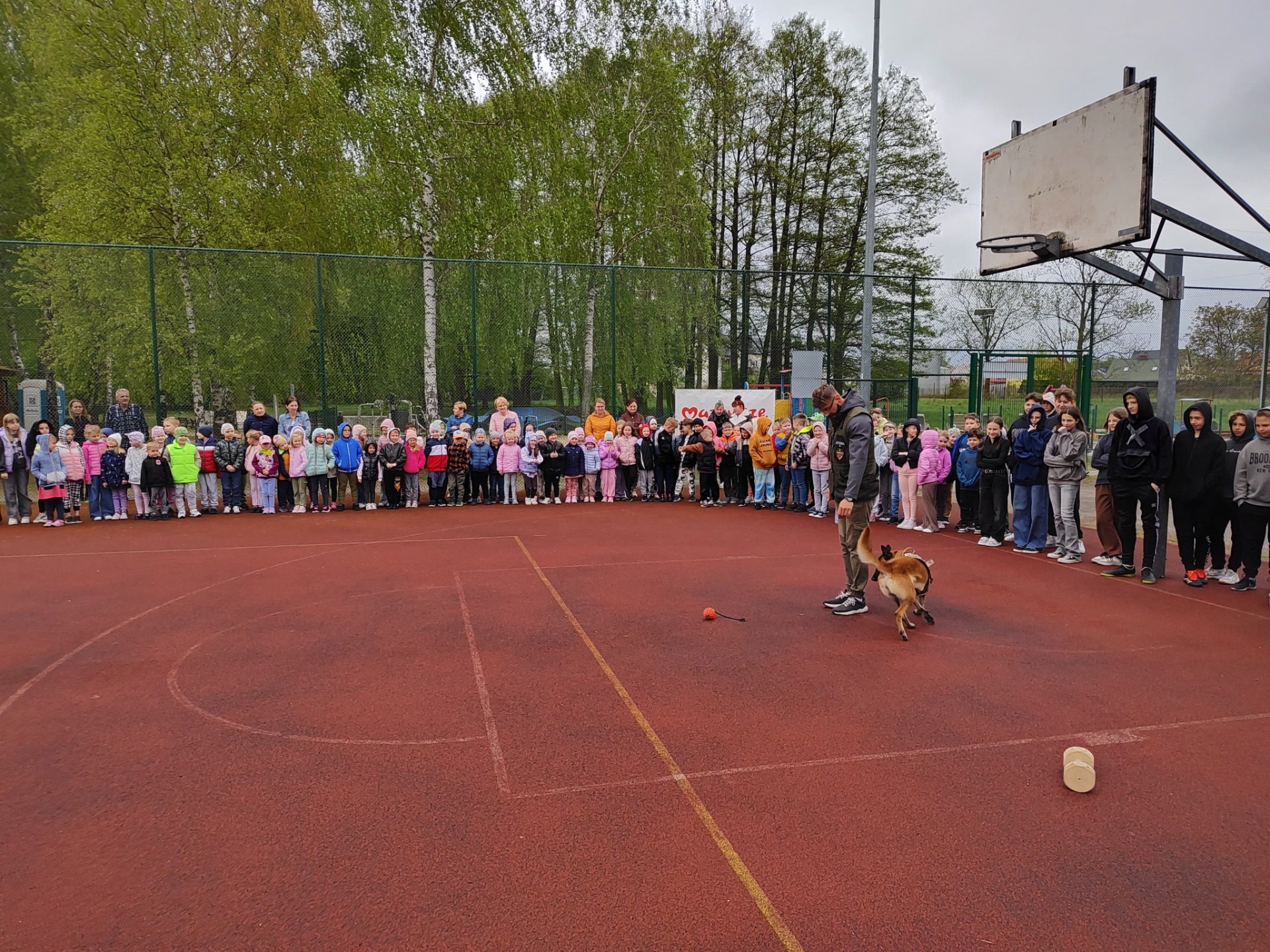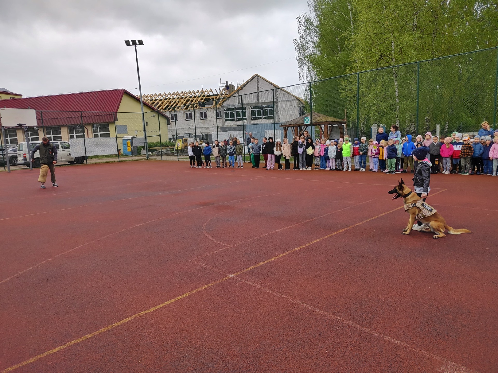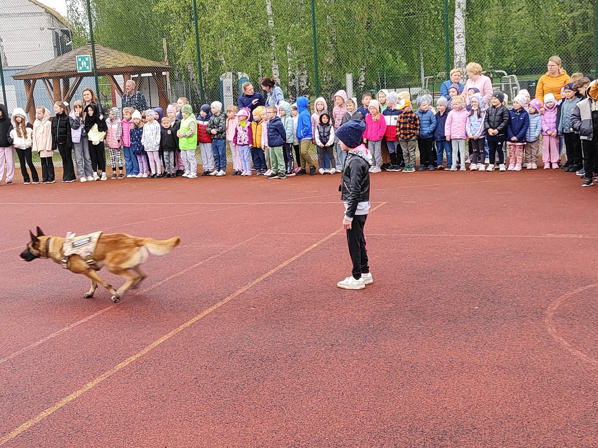 W dniu dzisiejszym wspólnie z Fundacją dla Bezpieczeństwa, Dzielnicowym Panem Marcinem Wolińskim oraz innymi gośćmi uczestniczyliśmy w zajęciach o bezpieczeństwie na drodze. Na wstępie, Pan Hubert, który jest policjantem KMP Płock, a także trenerem psów zaprezentował nam umiejętności swojego psa Ateny. Pan Hubert ze swoim owczarkiem belgijskim i córką Eleną pokazali nam elementy posłuszeństwa, komendy ataku i obrony.