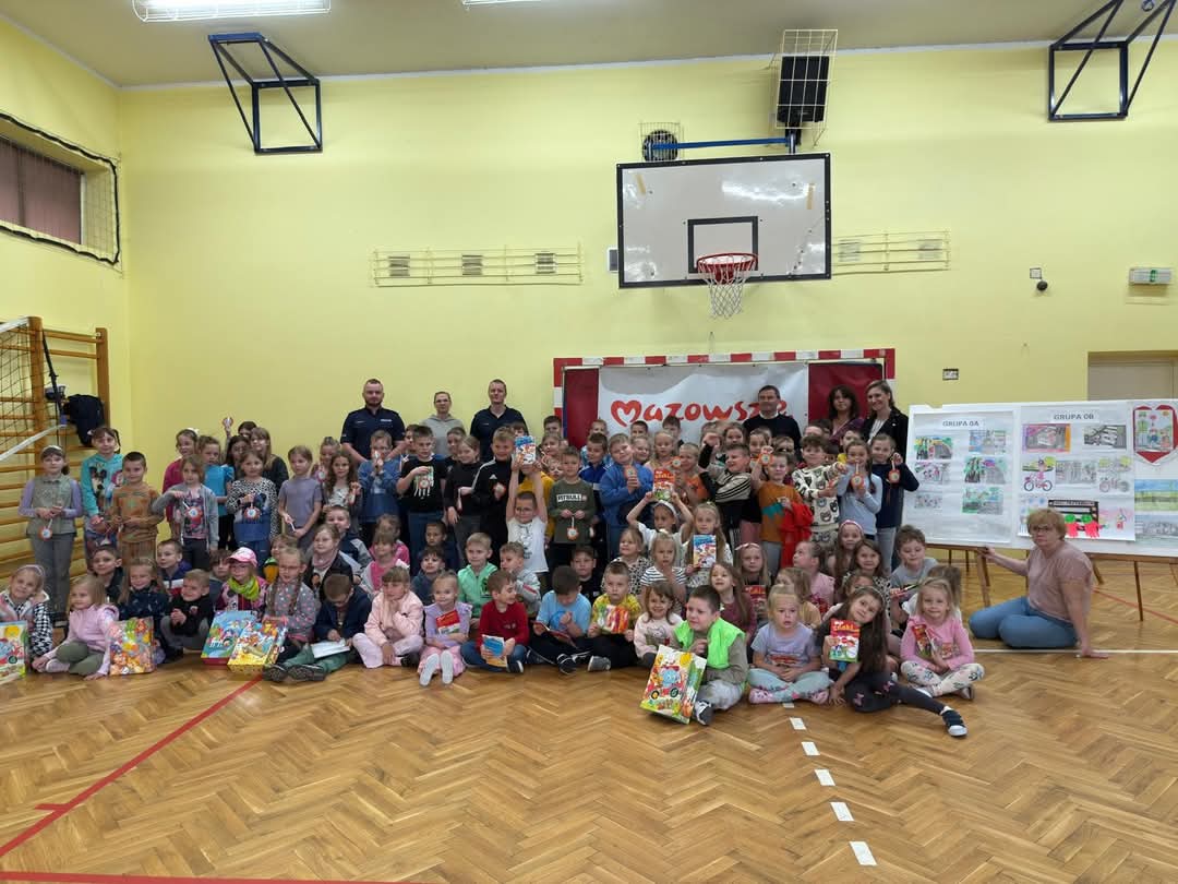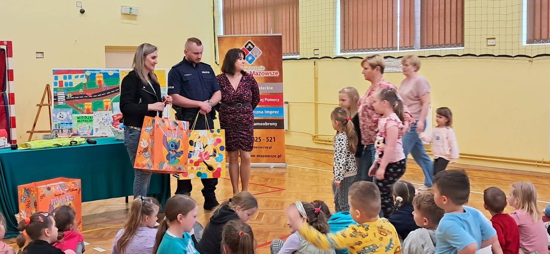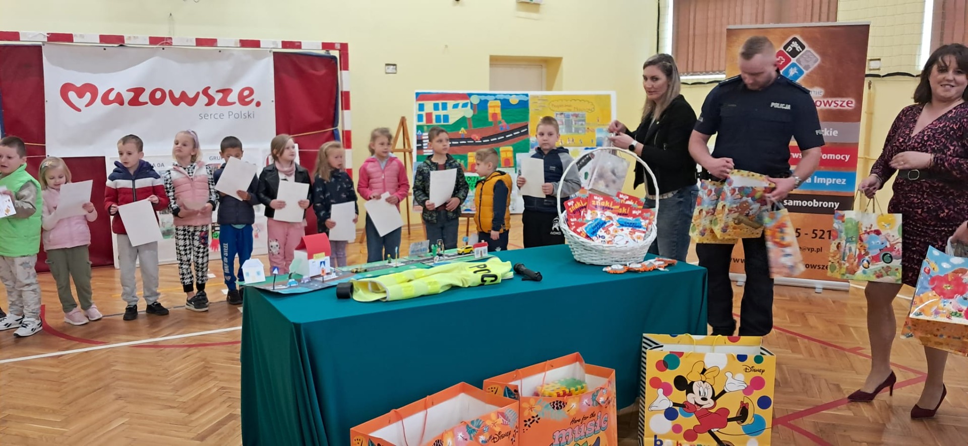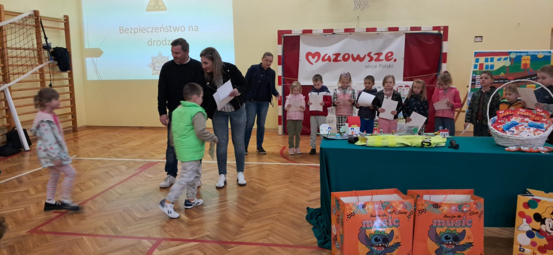 W ramach projektu przedszkolaki wzięli udział w konkursie plastycznym "BEZPIECZNA DROGA". Wszystkie grupy otrzymały zabawki do swoich klas, uczestnicy konkursu otrzymali nagrody i dyplomy za udział, a pozostali uczniowie kolorowanki i odblaski, które wręczali: Wiceprezes Fundacji dla Bezpieczeństwa - Pani Oliwia Cyrankowska, Zastępca Wójta Gminy Nowy Duninów - Pan Piotr Szpakowicz oraz Pani Dyrektor-Agnieszka Paradowska.