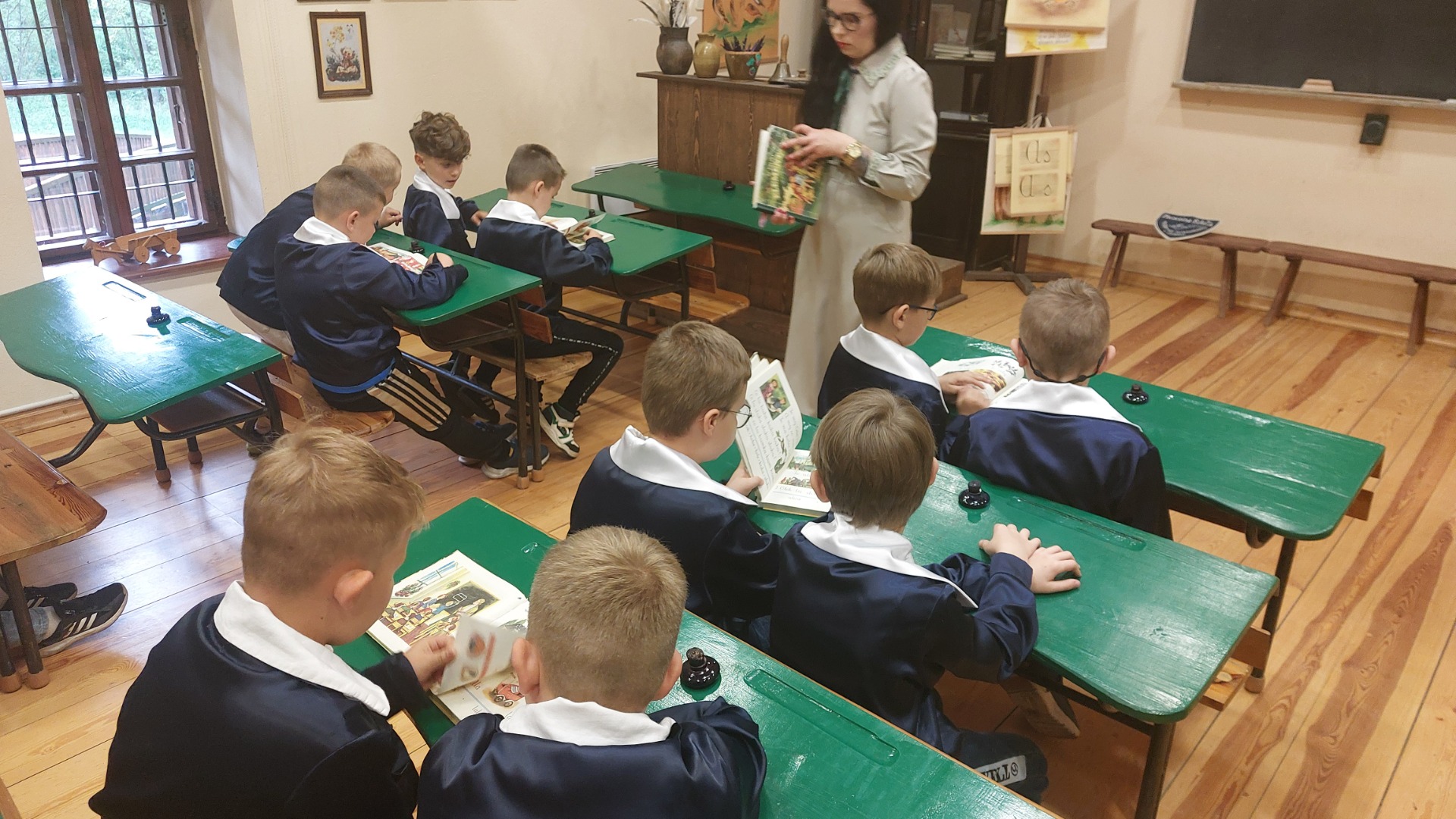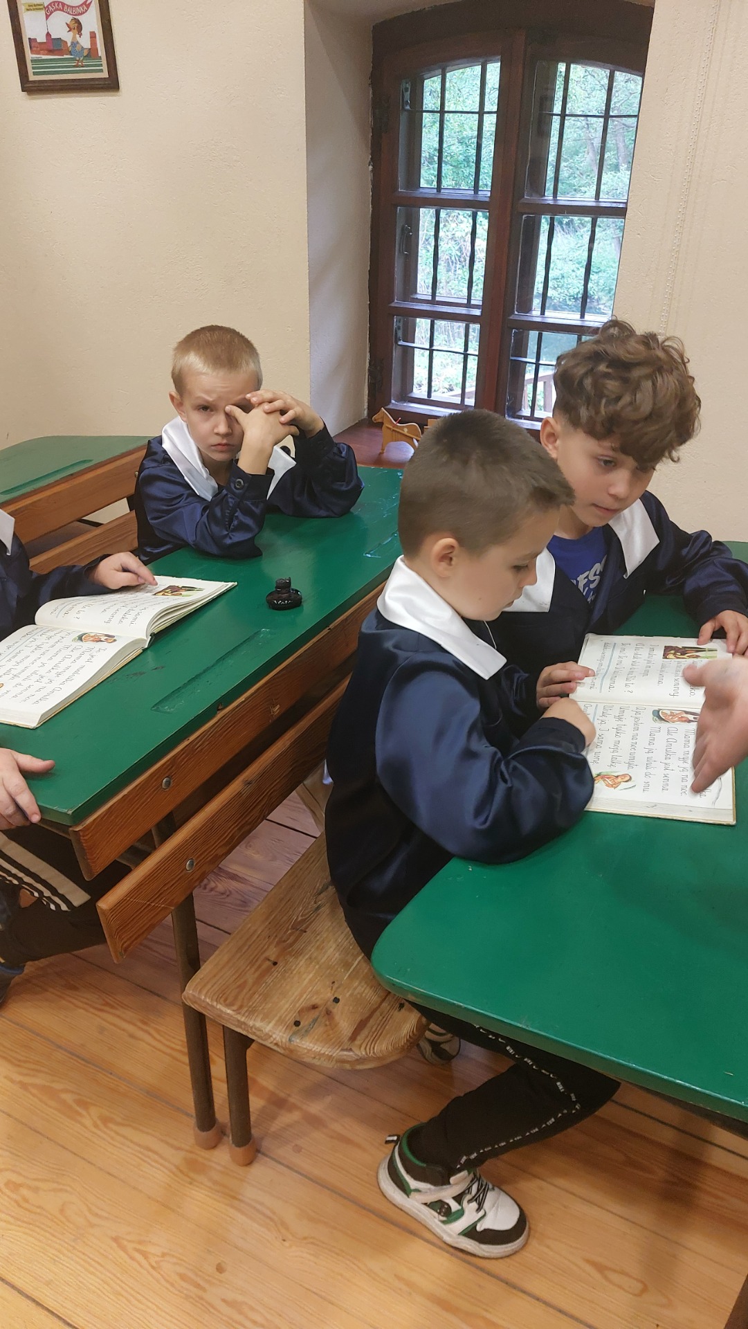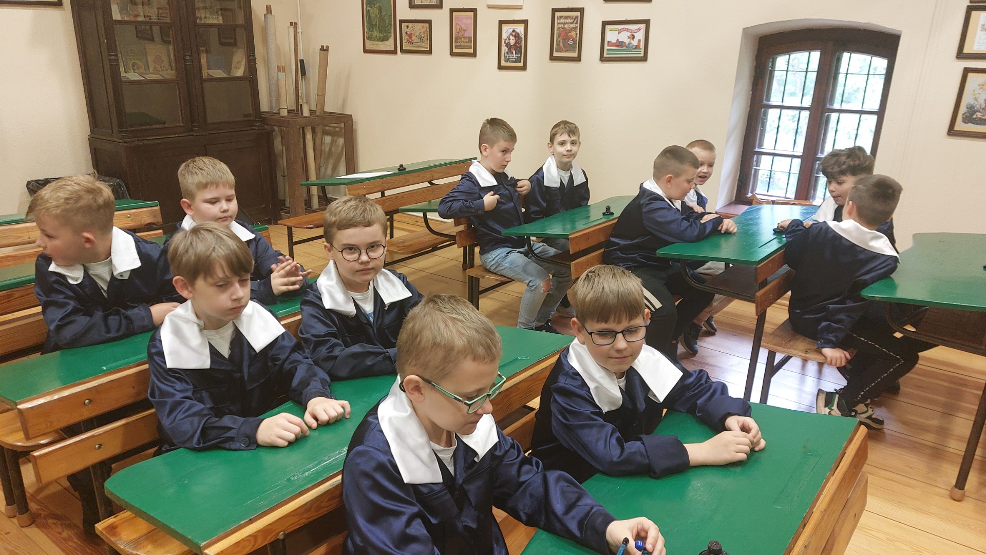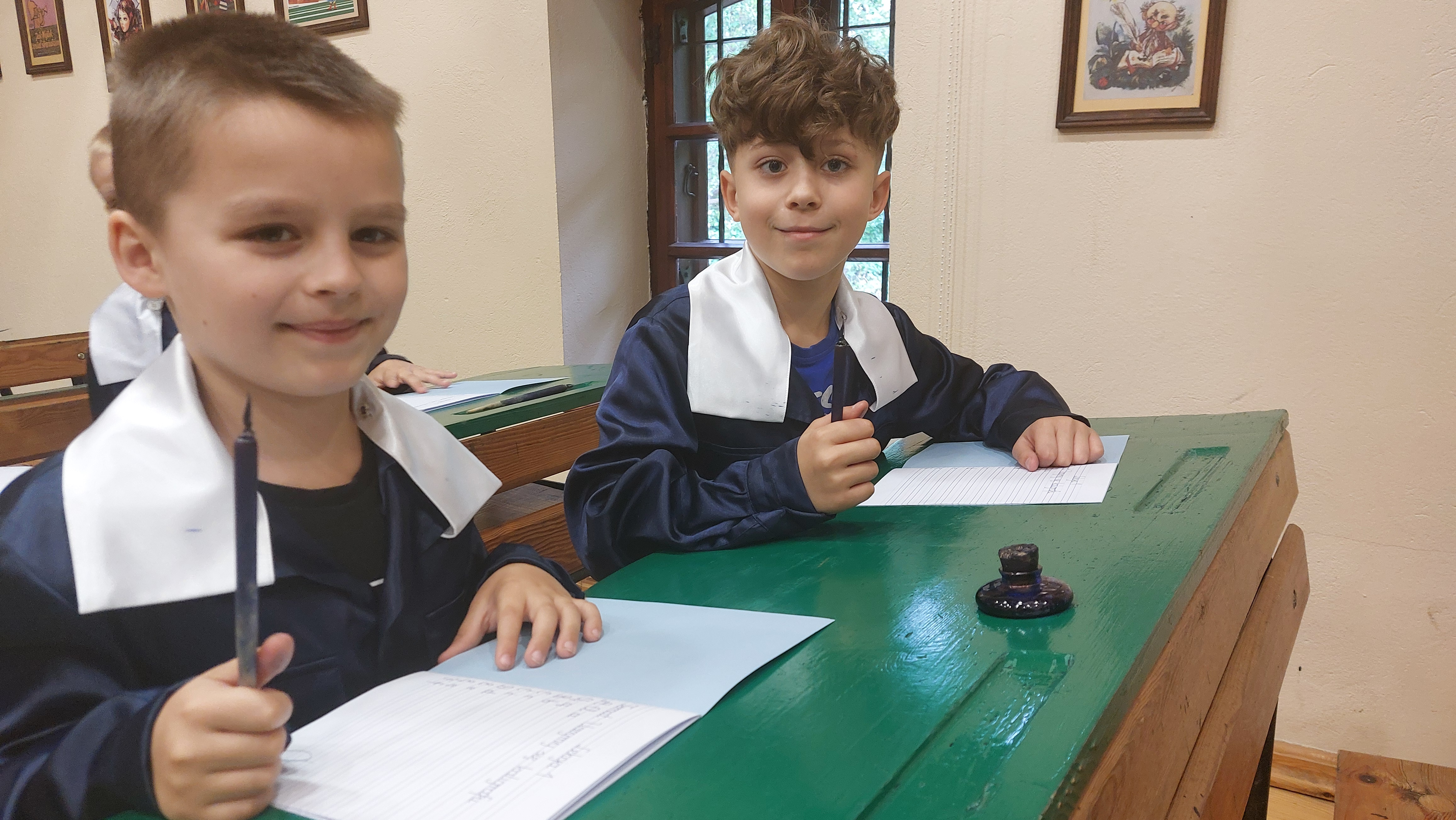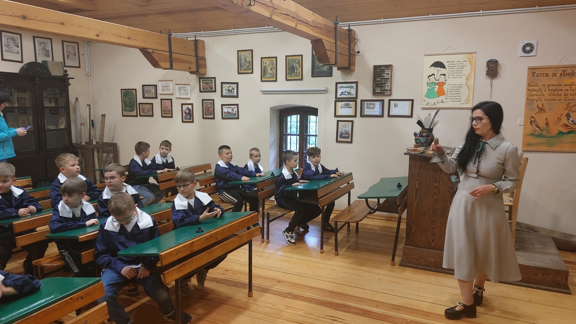 W dniu 22 maja 2025 r. uczniowie klas I i II Szkoły Podstawowej w Nowym Duninowie uczestniczyli w wycieczce do Muzeum Wsi Mazowieckiej w Sierpcu. Dzieci wzięły udział w niezwykle ciekawej lekcji kaligrafii – ubrane w szkolne mundurki sprzed lat, pisały piórem i atramentem, poznając dawne szkolne zwyczaje. W ramach zwiedzania muzeum uczestniczyły również w grze terenowej, która pozwoliła im w sposób aktywny odkrywać tajemnice mazowieckiej wsi. Wielką atrakcją była przejażdżka wozem konnym oraz możliwość zakupu pamiątek. Na zakończenie wycieczki dzieci odwiedziły restaurację McDonald’s, a drogę powrotną umilały sobie wspólnym, radosnym śpiewem w autobusie. Wycieczka dostarczyła wszystkim wielu niezapomnianych wrażeń i była okazją do nauki poprzez zabawę.