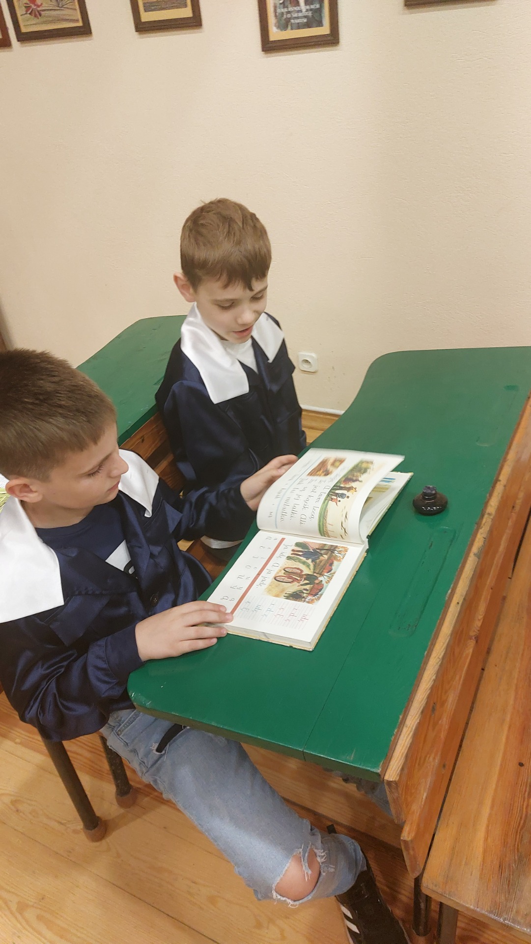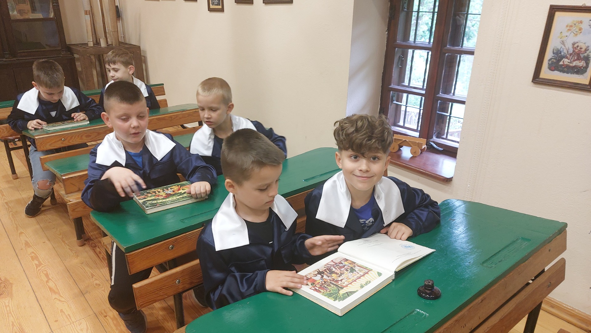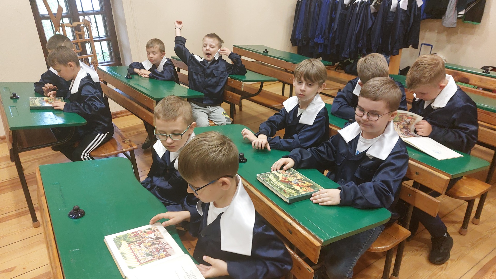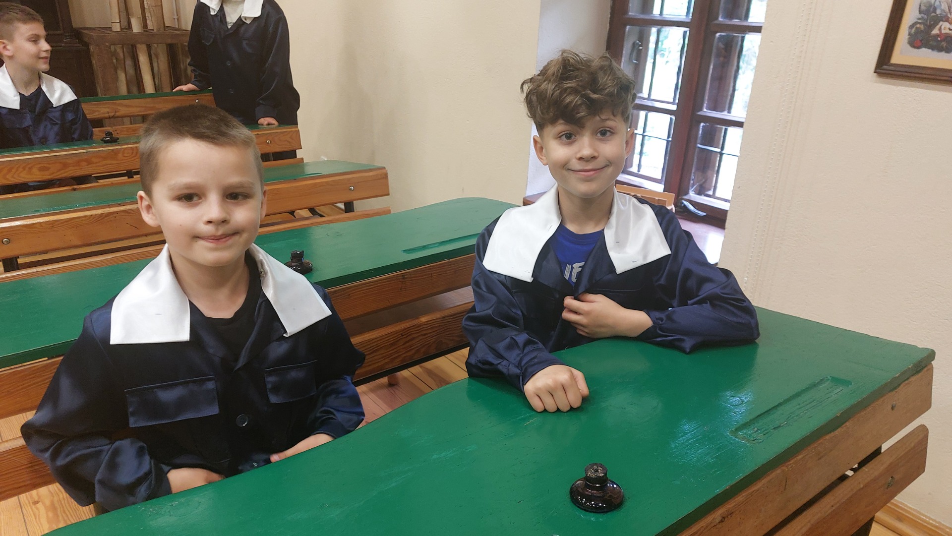 W dniu 22 maja 2025 r. uczniowie klas I i II Szkoły Podstawowej w Nowym Duninowie uczestniczyli w wycieczce do Muzeum Wsi Mazowieckiej w Sierpcu. Dzieci wzięły udział w niezwykle ciekawej lekcji kaligrafii – ubrane w szkolne mundurki sprzed lat, pisały piórem i atramentem, poznając dawne szkolne zwyczaje. W ramach zwiedzania muzeum uczestniczyły również w grze terenowej, która pozwoliła im w sposób aktywny odkrywać tajemnice mazowieckiej wsi. Wielką atrakcją była przejażdżka wozem konnym oraz możliwość zakupu pamiątek. Na zakończenie wycieczki dzieci odwiedziły restaurację McDonald’s, a drogę powrotną umilały sobie wspólnym, radosnym śpiewem w autobusie. Wycieczka dostarczyła wszystkim wielu niezapomnianych wrażeń i była okazją do nauki poprzez zabawę.