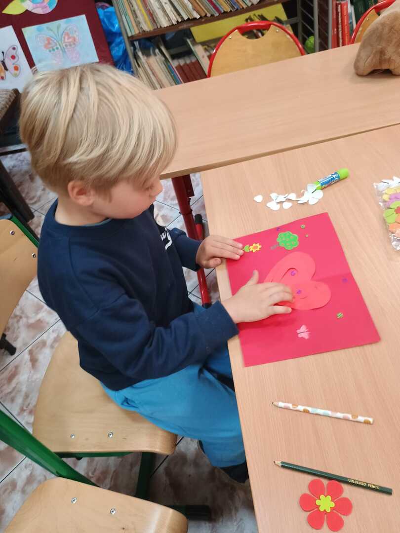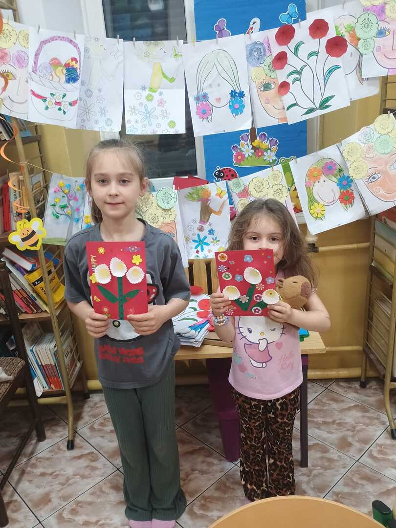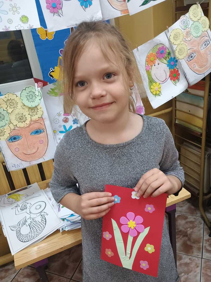 Również w świetlicy szkolnej dzieci brały udział w różnych zajęciach z okazji Dnia Matki, które miały na celu wzmocnienie więzi rodzinnych. Dzieci uczestniczyły w rozmowach na temat roli mamy w życiu dziecka, układały opisy swoich Mam . Dzieci śpiewały piosenki o mamie i wykonywały różnymi technikami plastycznymi piękne, wielobarwne laurki , serduszka i kwiaty.