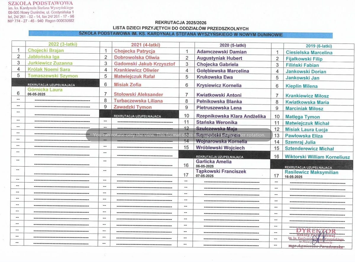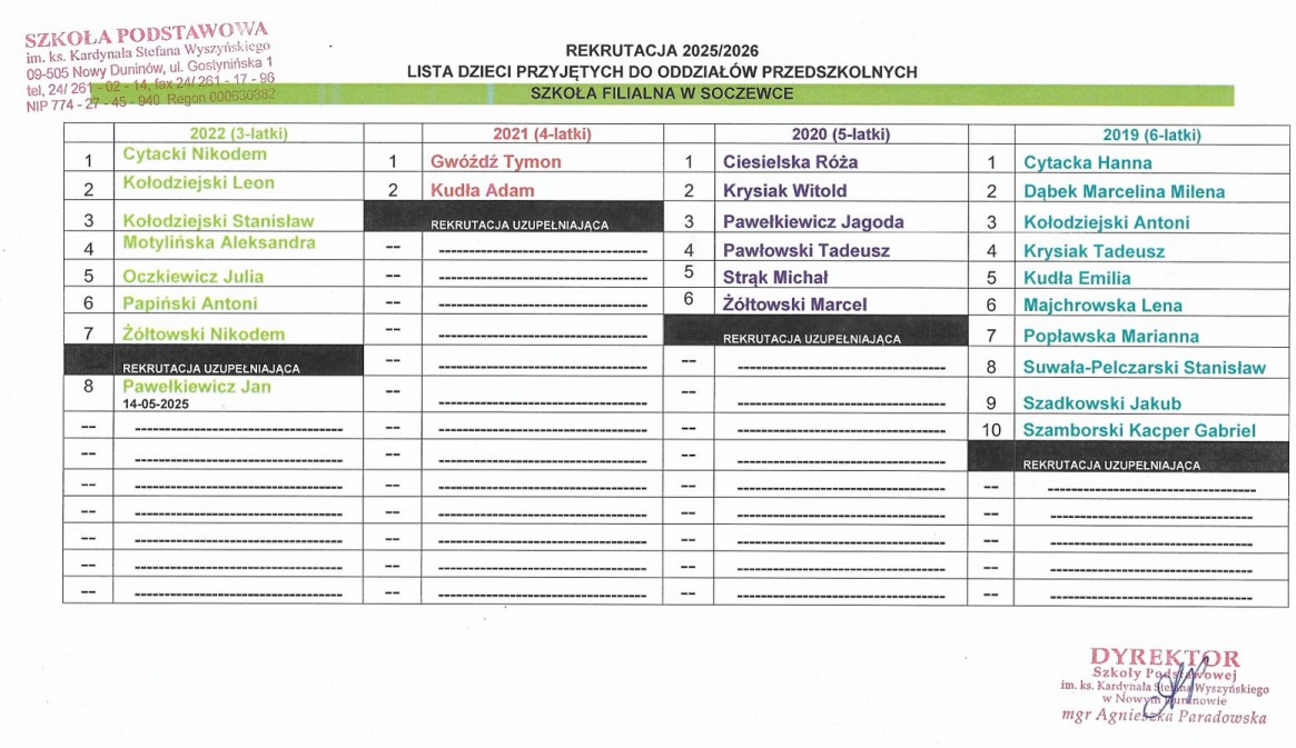 • Wyniki rekrutacji do oddziałów przedszkolnych...