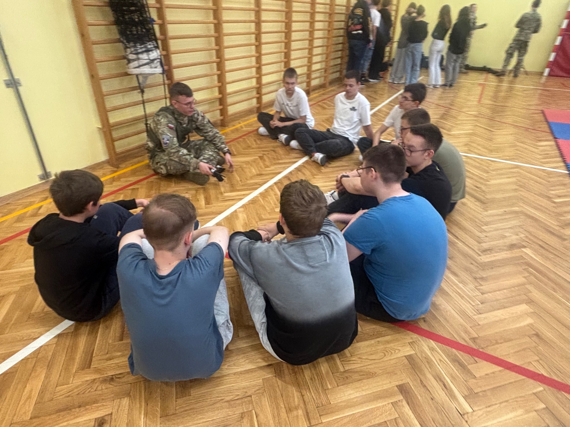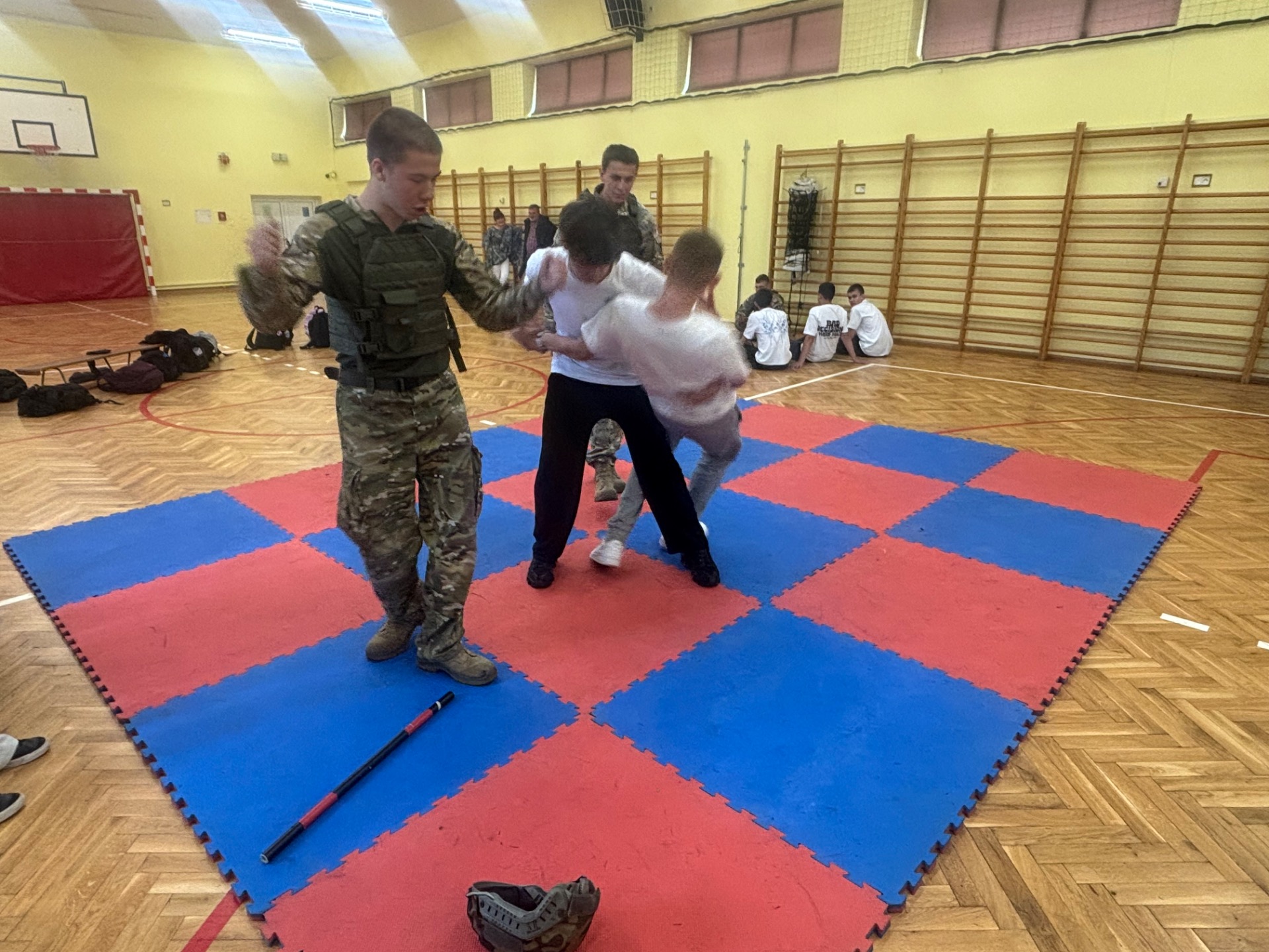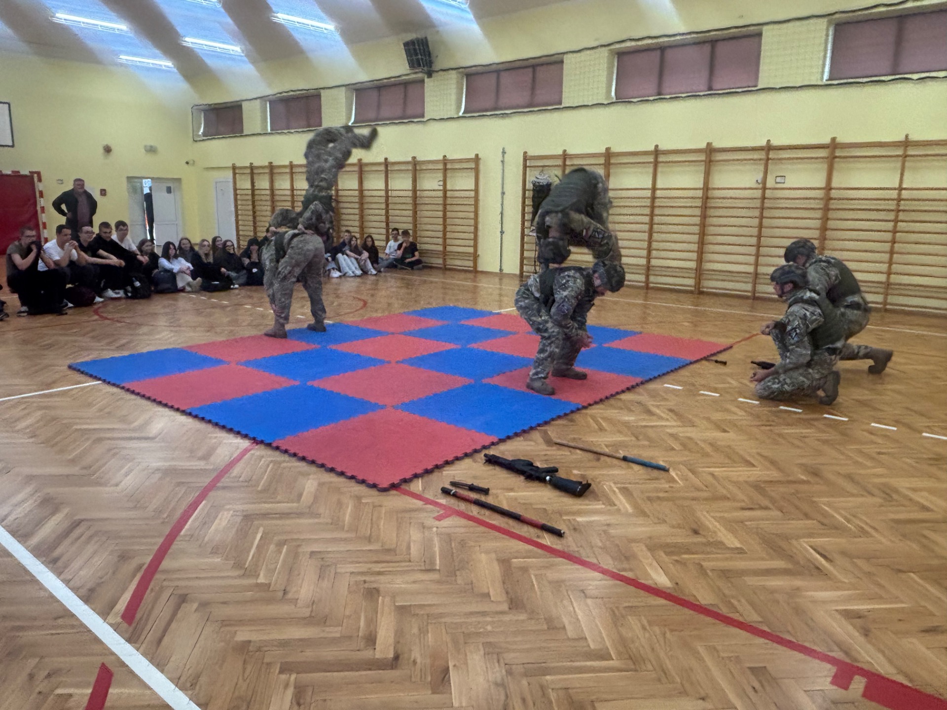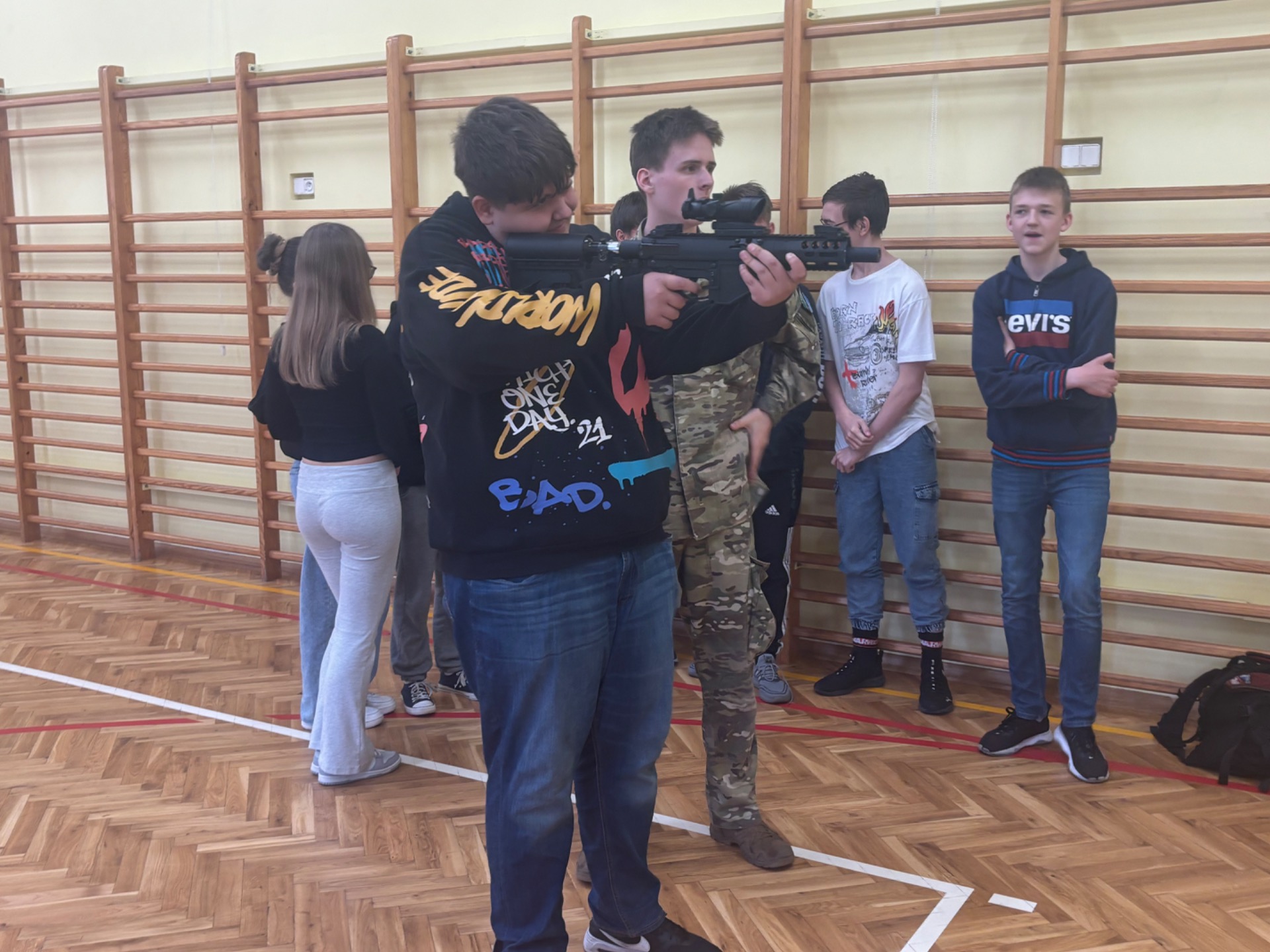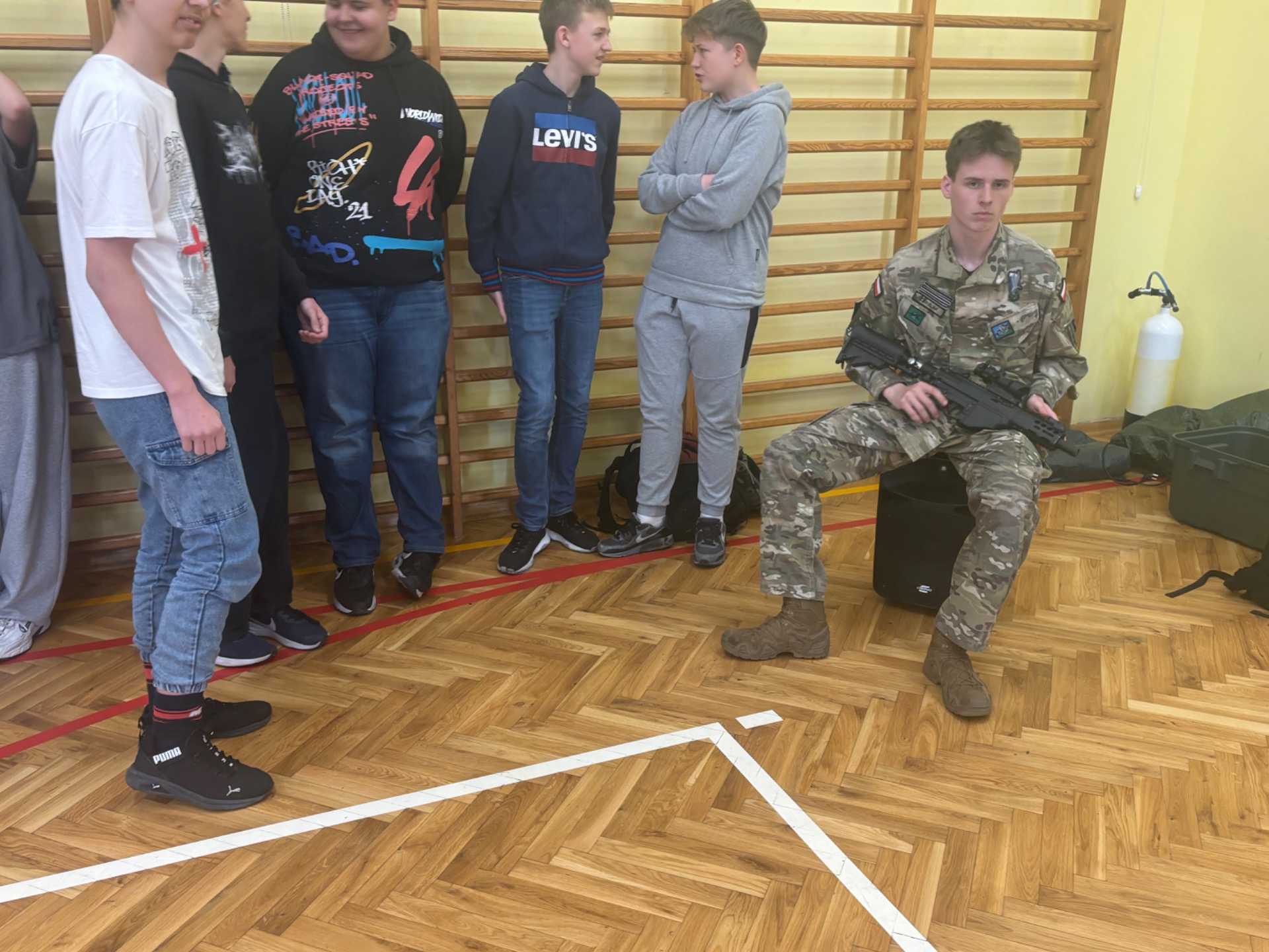 29 maja odiwedzili naszych uczniów z klas 8 przedstawiciele Mundurowego liceum ogólnokształcącego CN-B Feniks w Płocku, które oferuje wszechstronne przygotowanie do dorosłego życia oraz służby mundurowej. Podczas nauki uczniowie zdobywają zarówno wiedzę teoretyczną, jak i praktyczne umiejętności przydatne w różnych formacjach mundurowych, co czyni tę ofertę idealną dla ambitnych osób z pasją. Absolwenci szkół Feniksa zyskują również dodatkowe punkty w procesie rekrutacyjnym do wojskowych uczelni oraz do zawodowej i terytorialnej służby wojskowej.