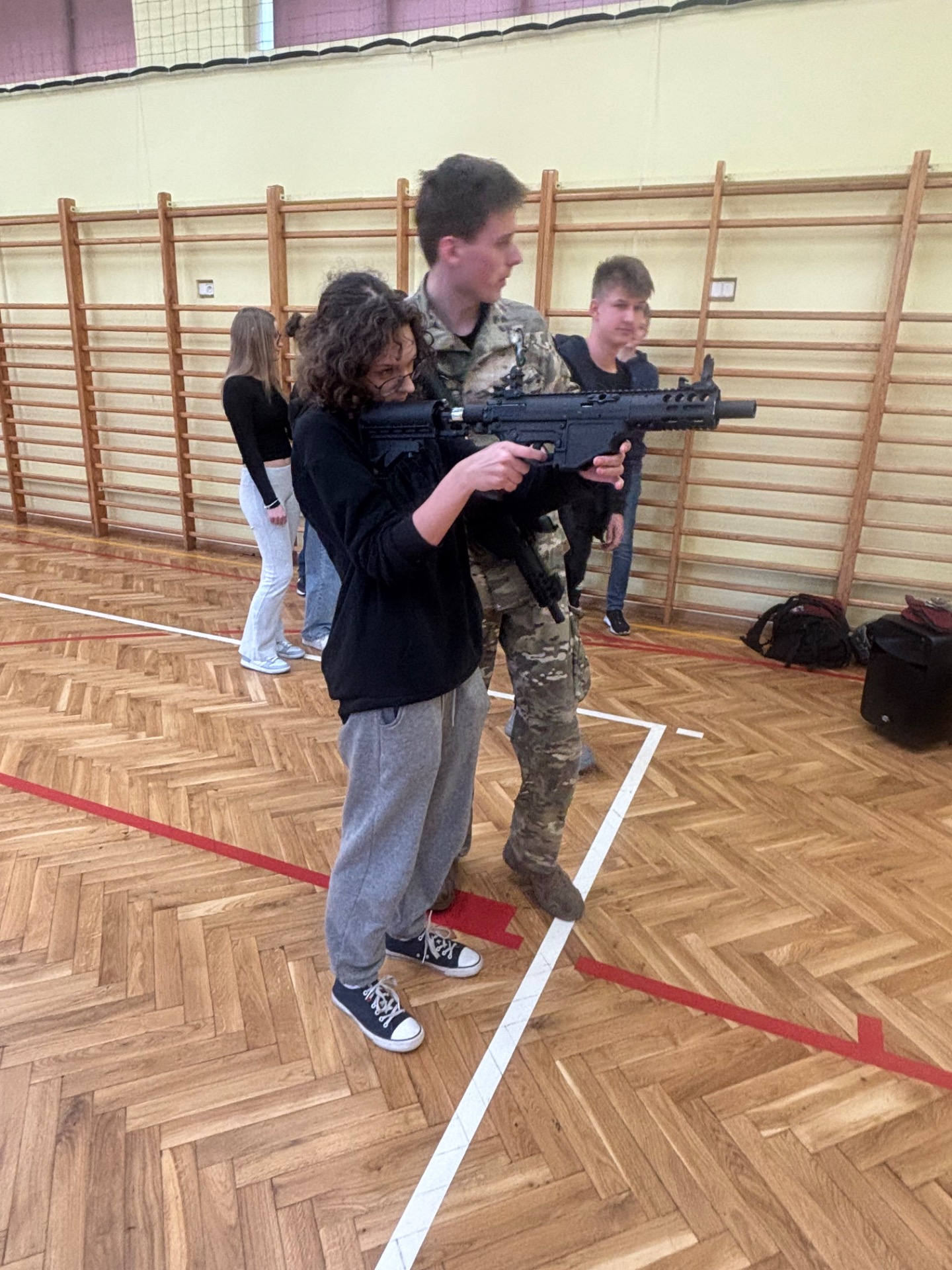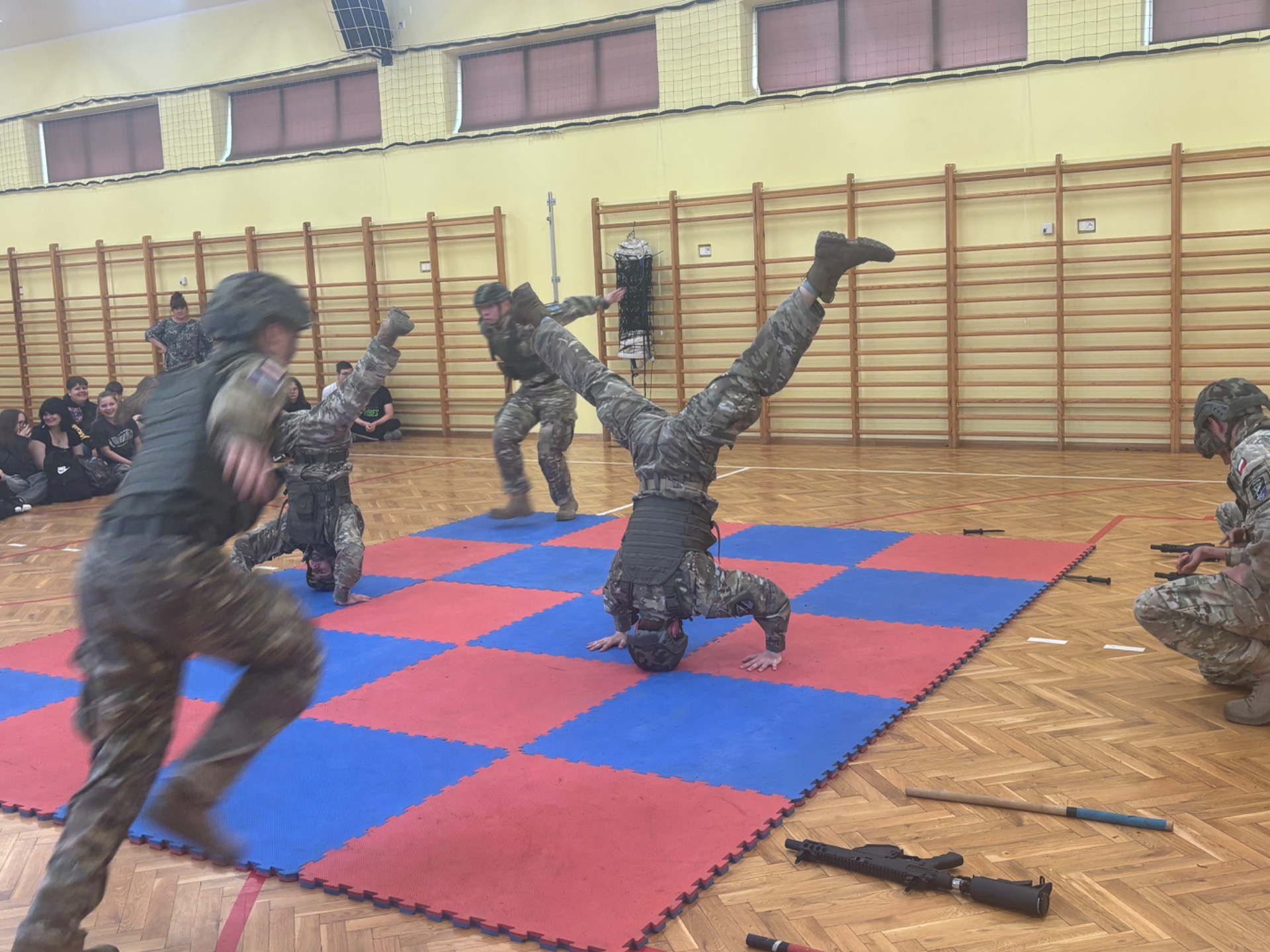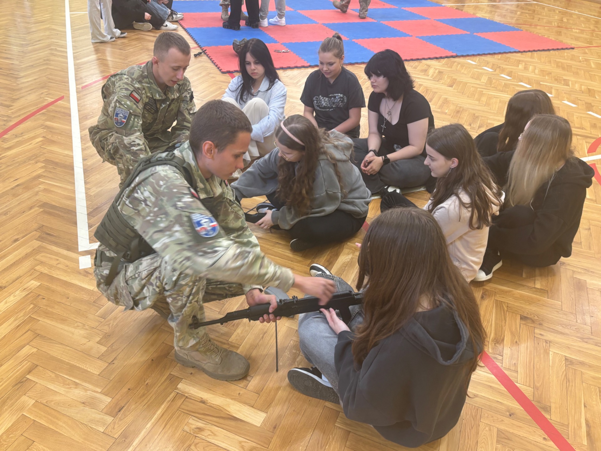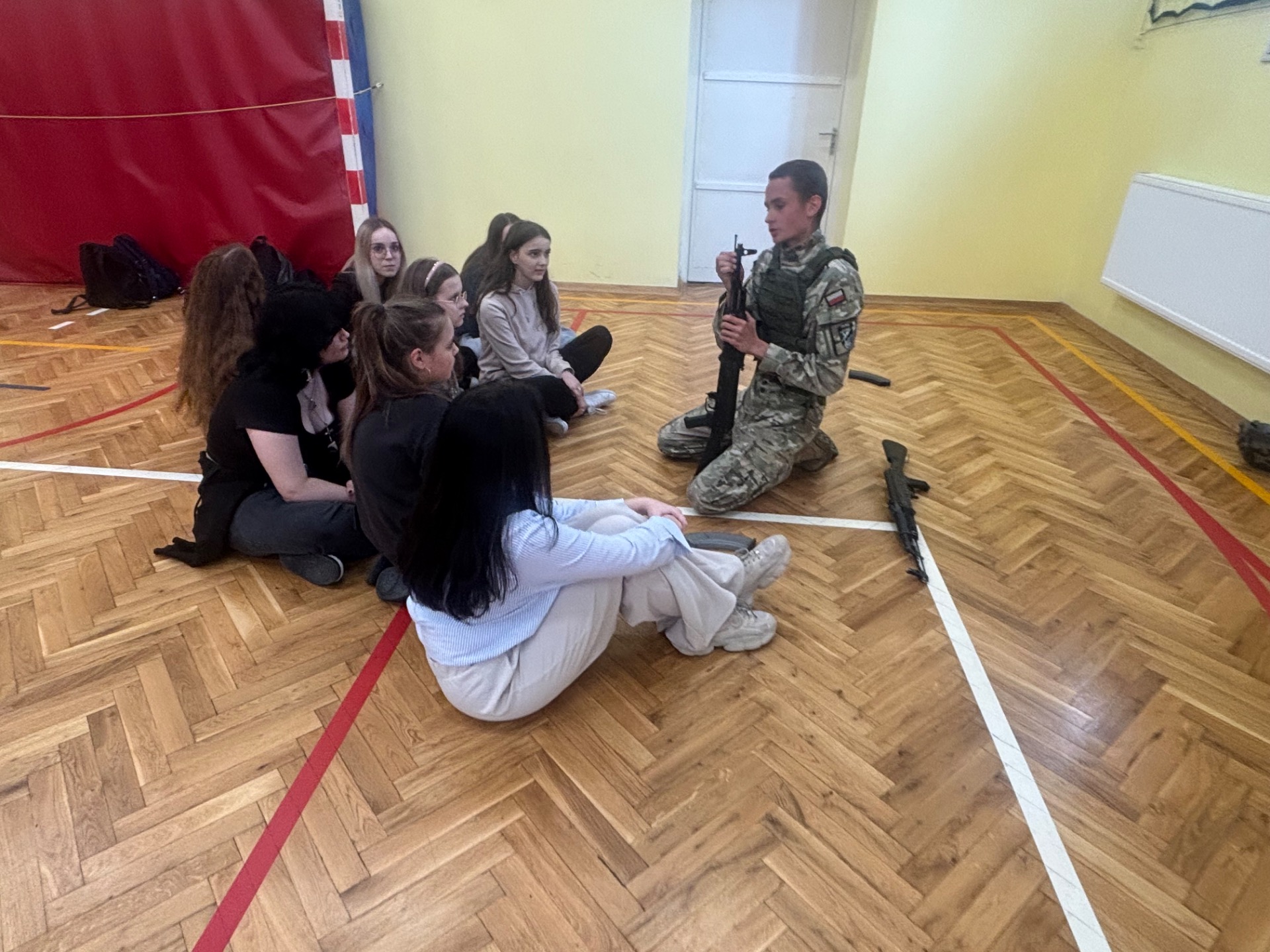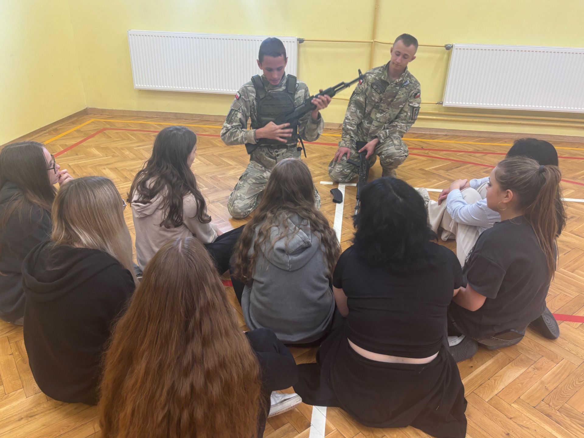 29 maja odiwedzili naszych uczniów z klas 8 przedstawiciele Mundurowego liceum ogólnokształcącego CN-B Feniks w Płocku, które oferuje wszechstronne przygotowanie do dorosłego życia oraz służby mundurowej. Podczas nauki uczniowie zdobywają zarówno wiedzę teoretyczną, jak i praktyczne umiejętności przydatne w różnych formacjach mundurowych, co czyni tę ofertę idealną dla ambitnych osób z pasją. Absolwenci szkół Feniksa zyskują również dodatkowe punkty w procesie rekrutacyjnym do wojskowych uczelni oraz do zawodowej i terytorialnej służby wojskowej.