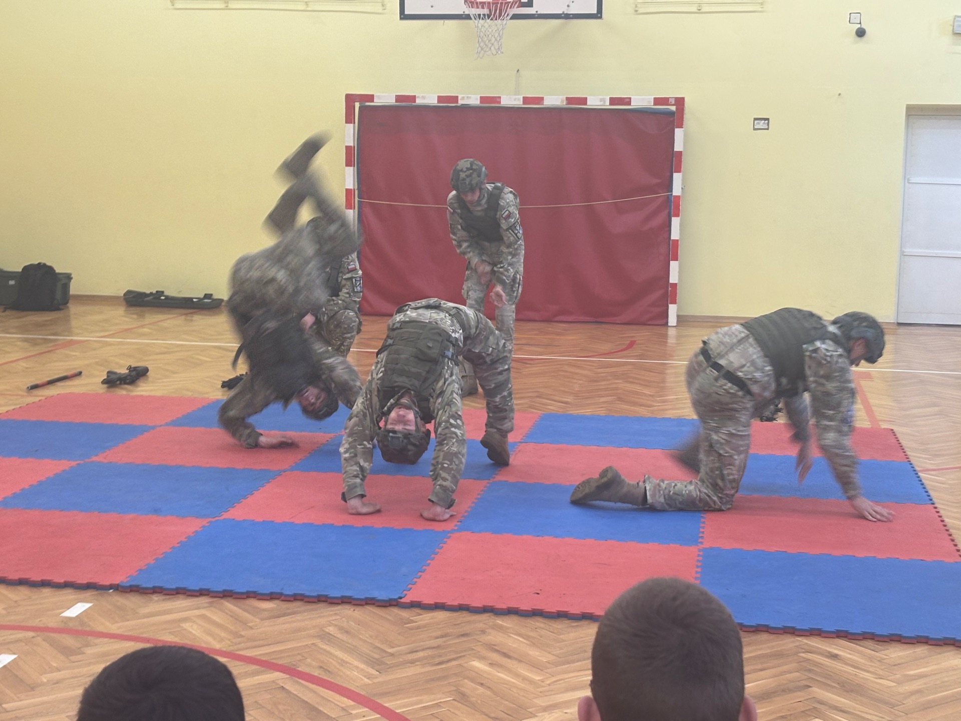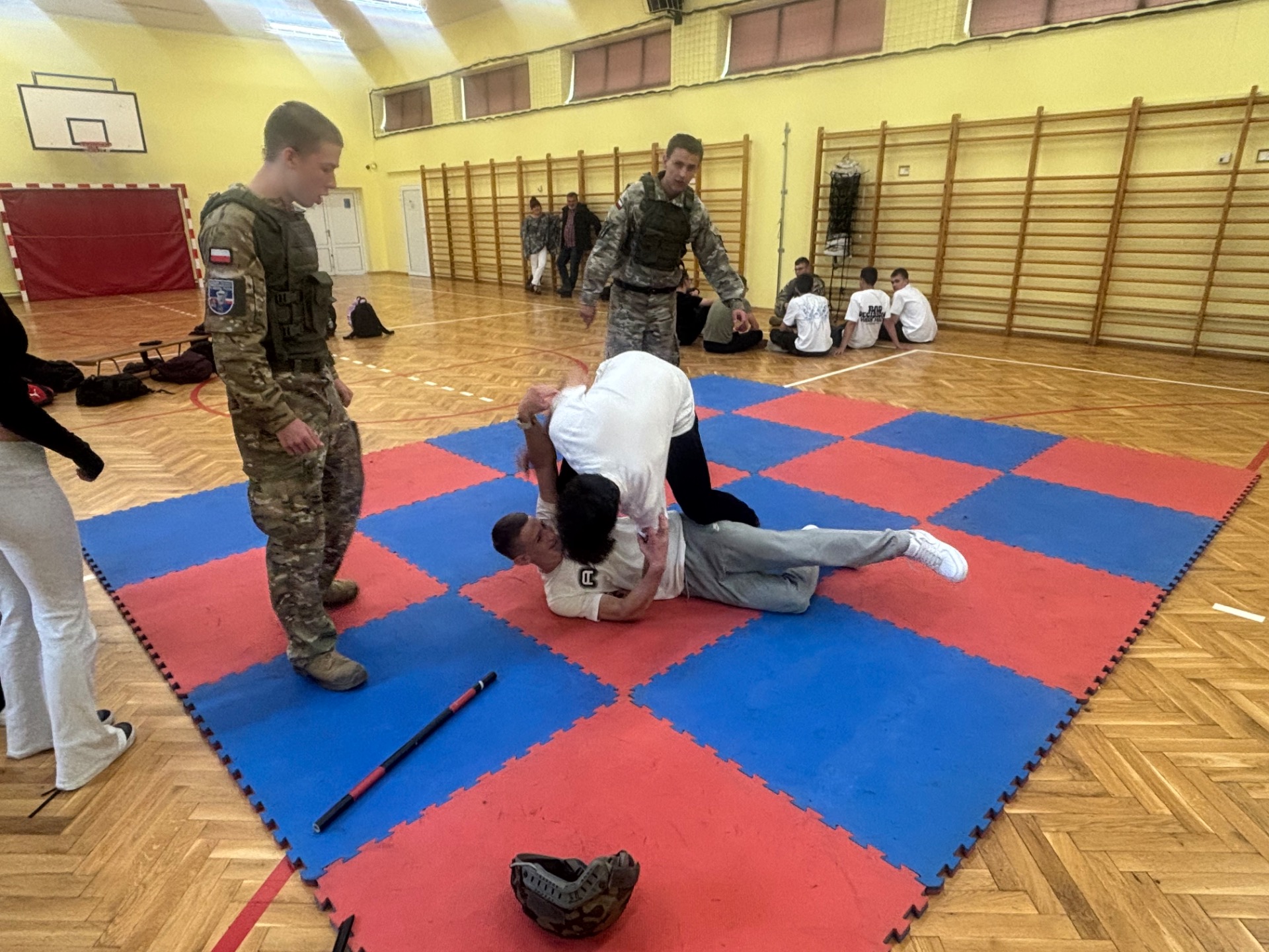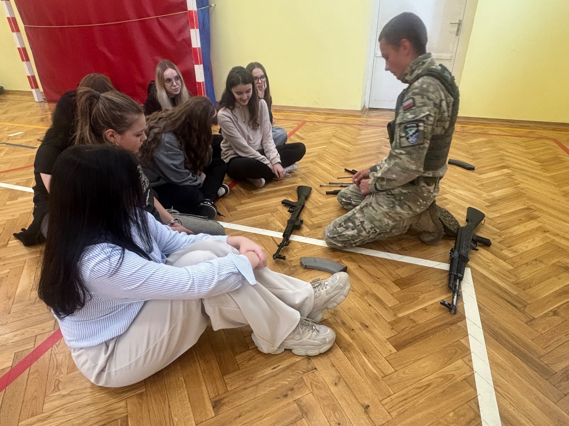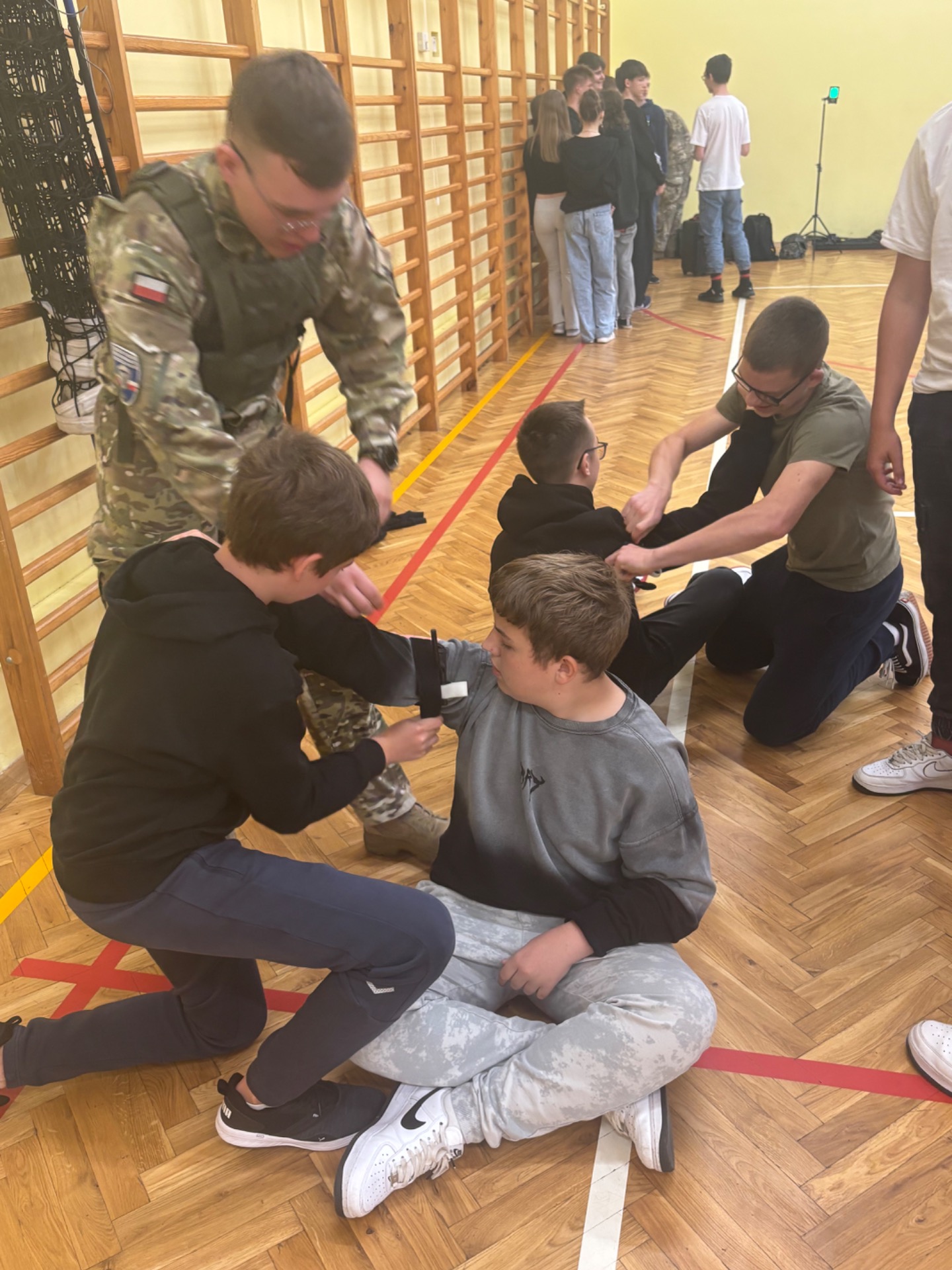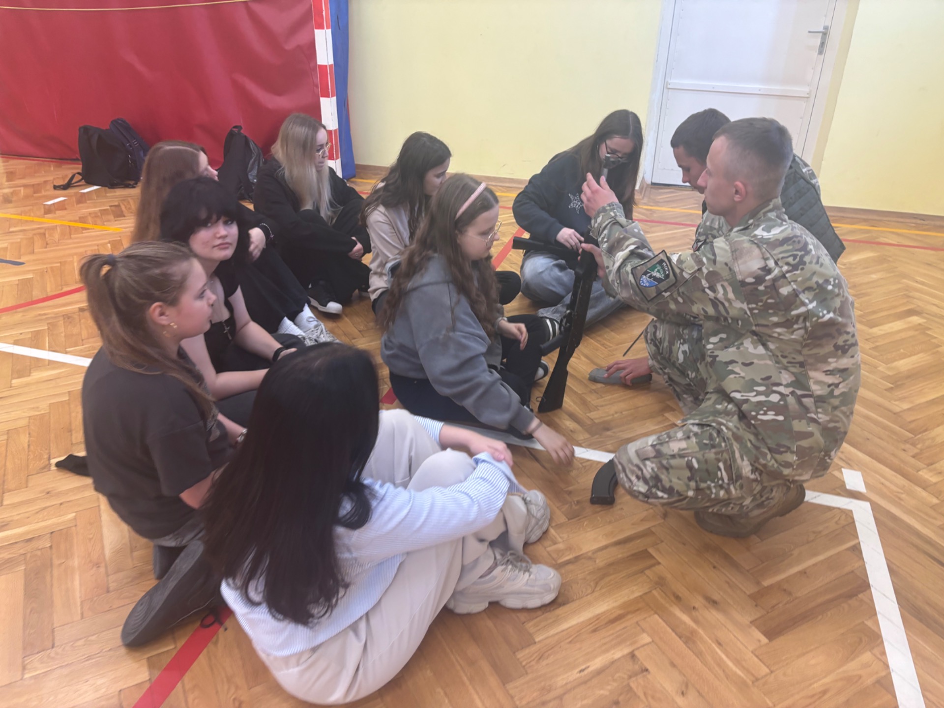 29 maja odiwedzili naszych uczniów z klas 8 przedstawiciele Mundurowego liceum ogólnokształcącego CN-B Feniks w Płocku, które oferuje wszechstronne przygotowanie do dorosłego życia oraz służby mundurowej. Podczas nauki uczniowie zdobywają zarówno wiedzę teoretyczną, jak i praktyczne umiejętności przydatne w różnych formacjach mundurowych, co czyni tę ofertę idealną dla ambitnych osób z pasją. Absolwenci szkół Feniksa zyskują również dodatkowe punkty w procesie rekrutacyjnym do wojskowych uczelni oraz do zawodowej i terytorialnej służby wojskowej.