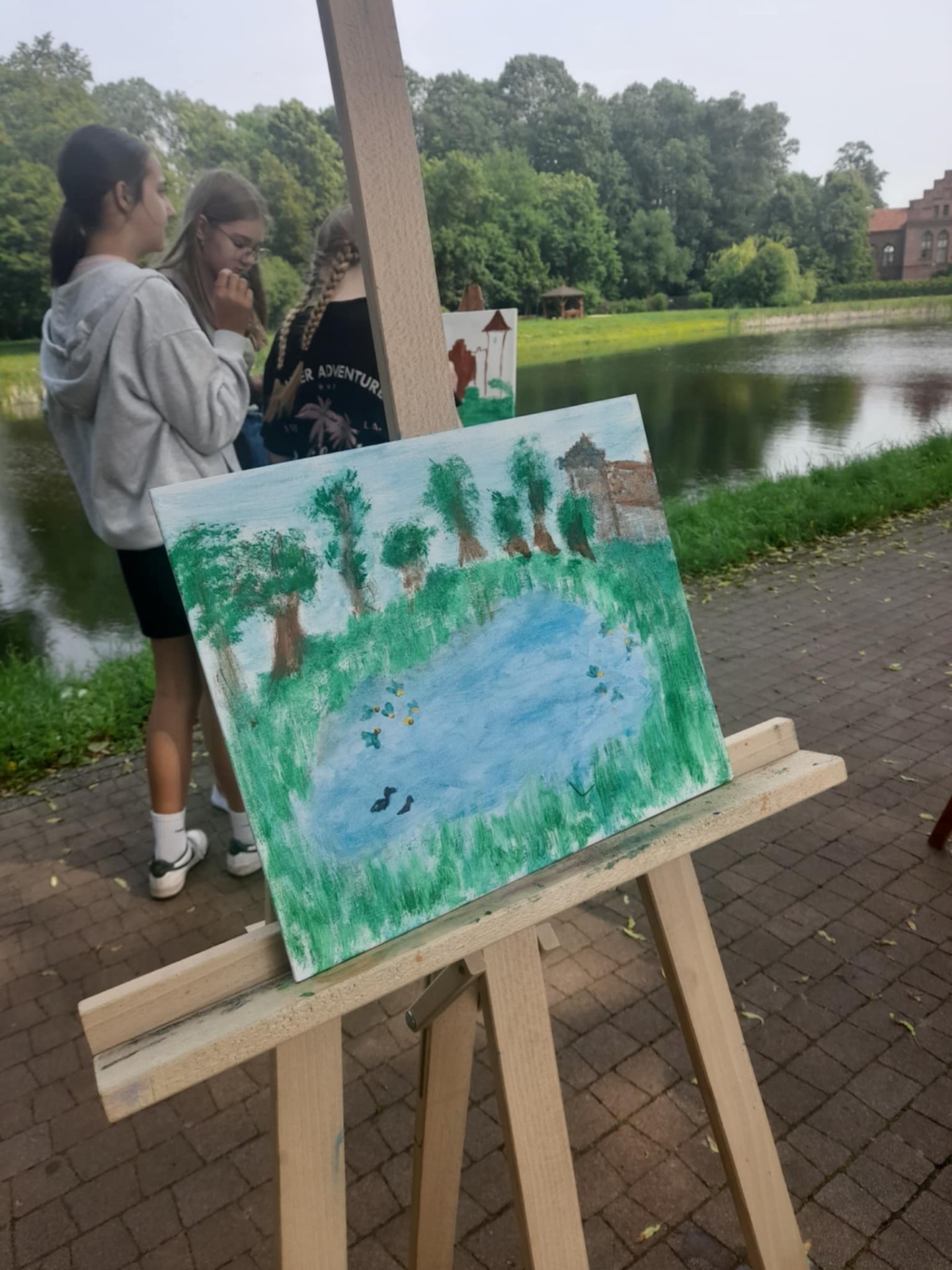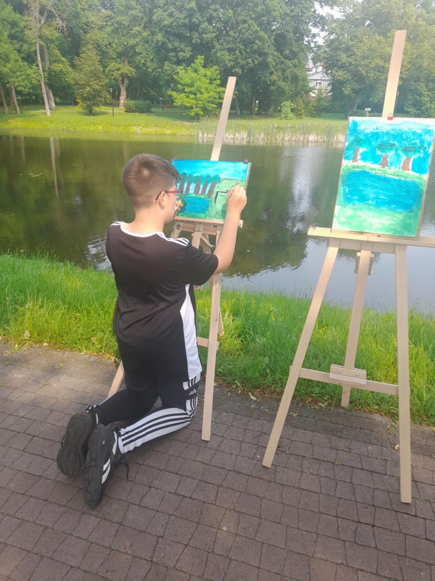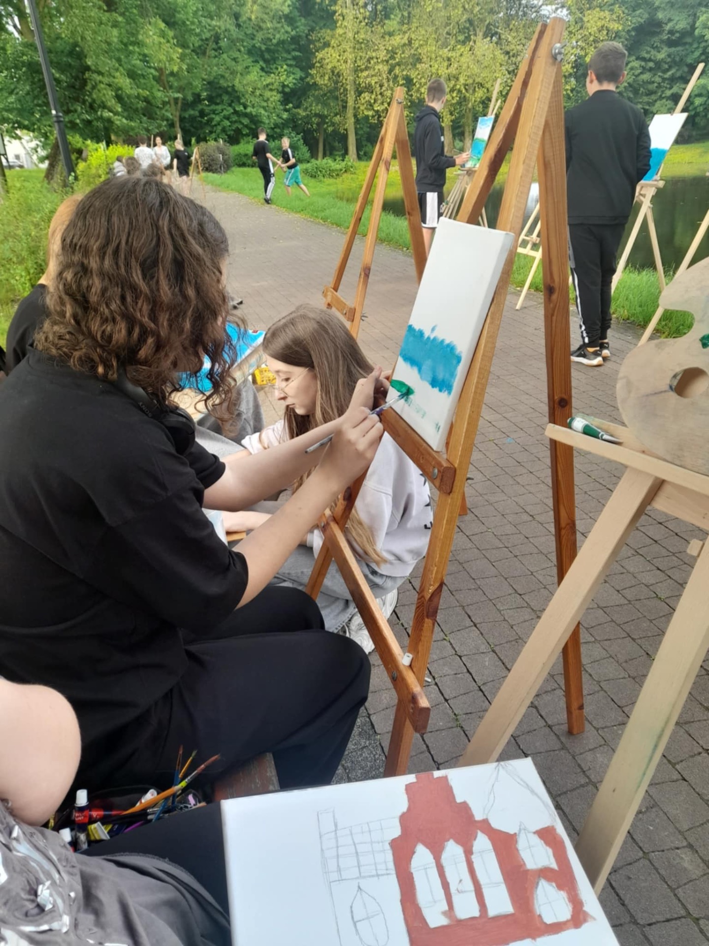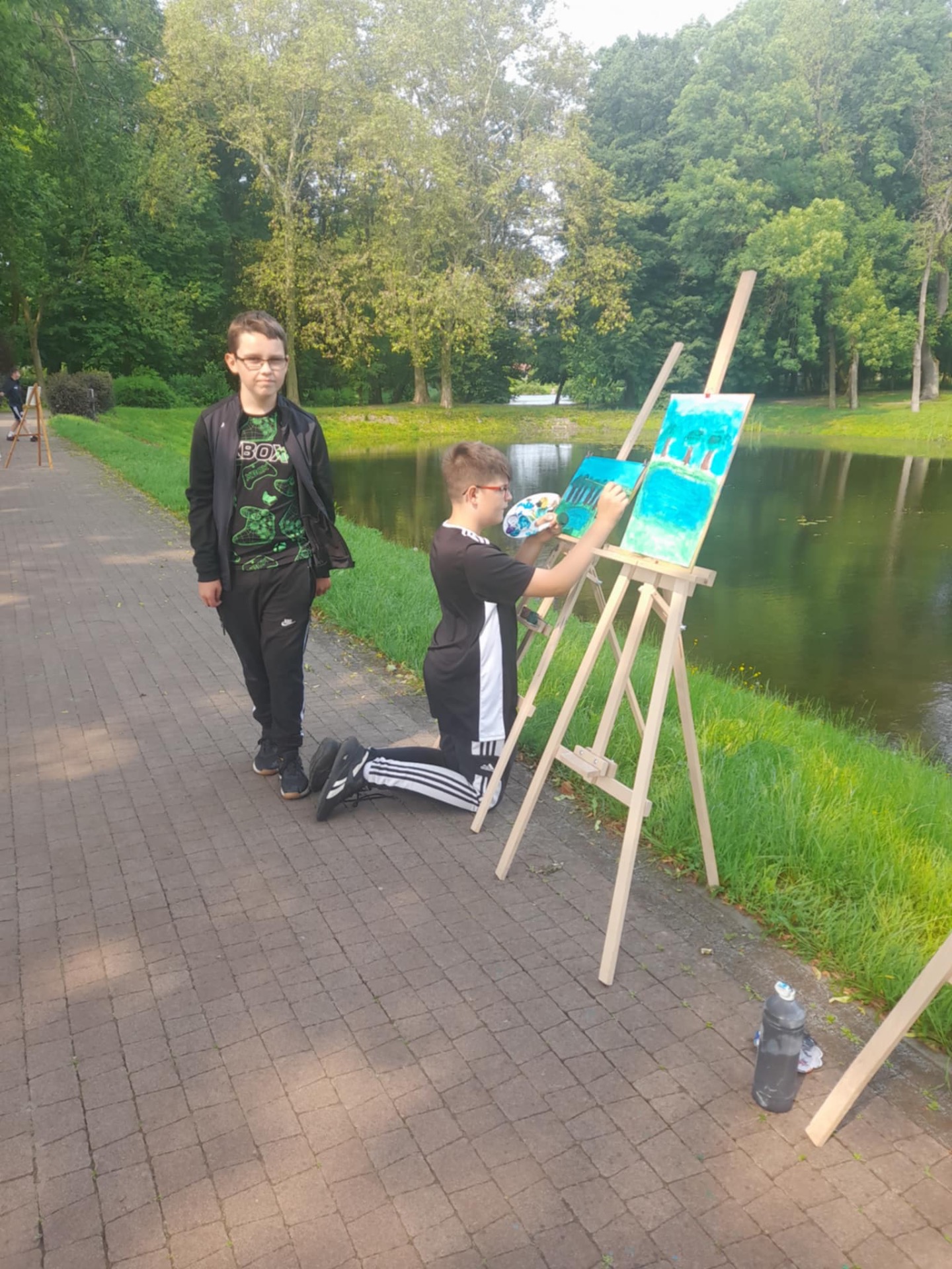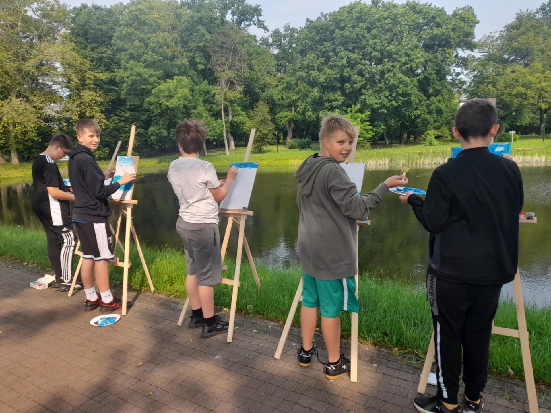 Uczniowie klasy szóstej wzięli udział w plenerze malarskim zorganizowanym w lokalnym parku. Celem wydarzenia było rozwijanie kreatywności, umiejętności obserwacji przyrody oraz praktyczne zastosowanie technik malarskich poznanych na lekcjach plastyki. Podczas pleneru uczniowie malowali pejzaż oraz wybrane elementy otaczającej przyrody. Uczestnicy wykazali się dużym zaangażowaniem i pomysłowością. Pogoda dopisała, a atmosfera była twórcza i radosna. Wydarzenie było nie tylko okazją do nauki przez działanie, ale także formą integracji i spędzenia czasu na świeżym powietrzu. Plener został oceniony przez uczniów bardzo pozytywnie.