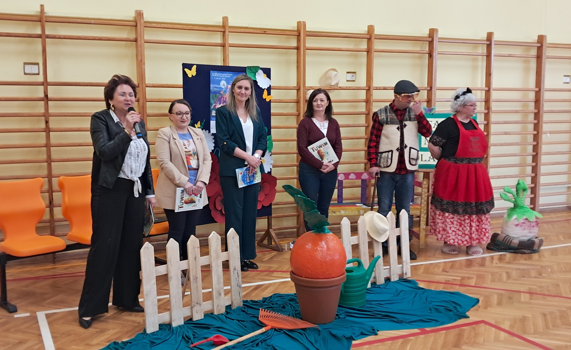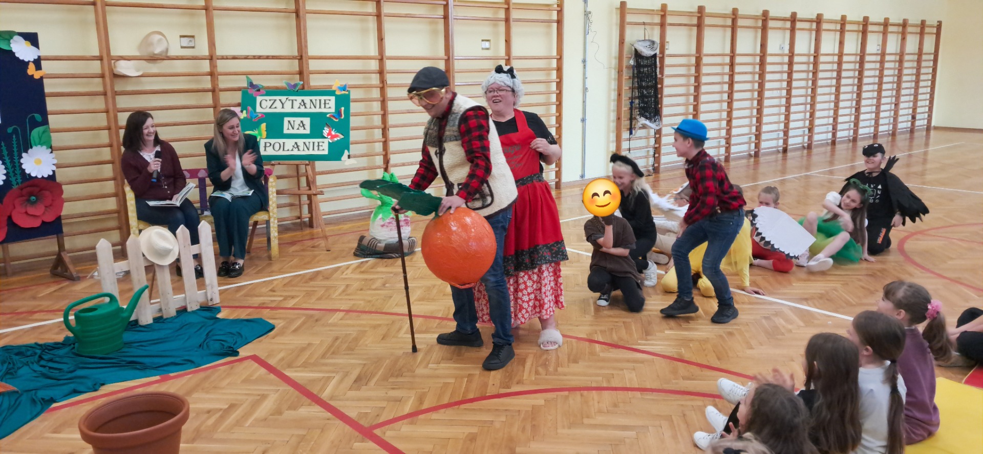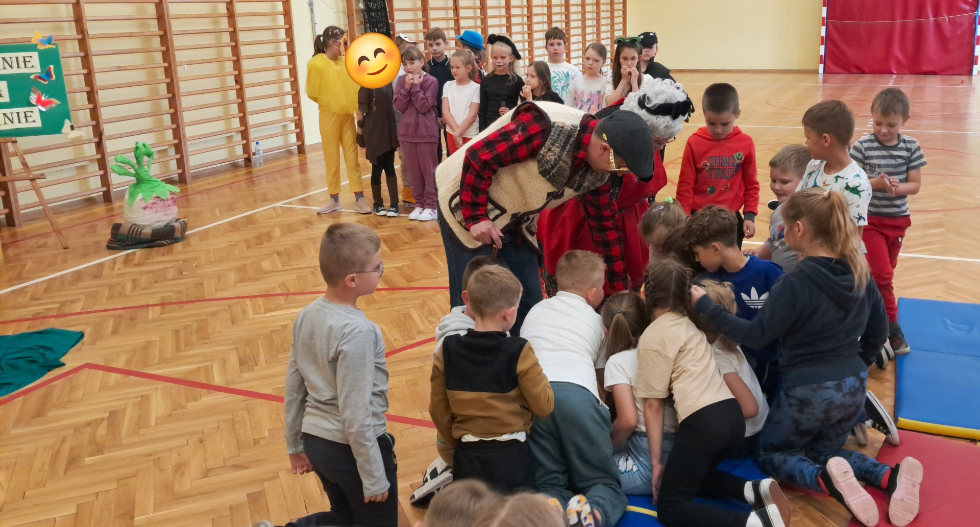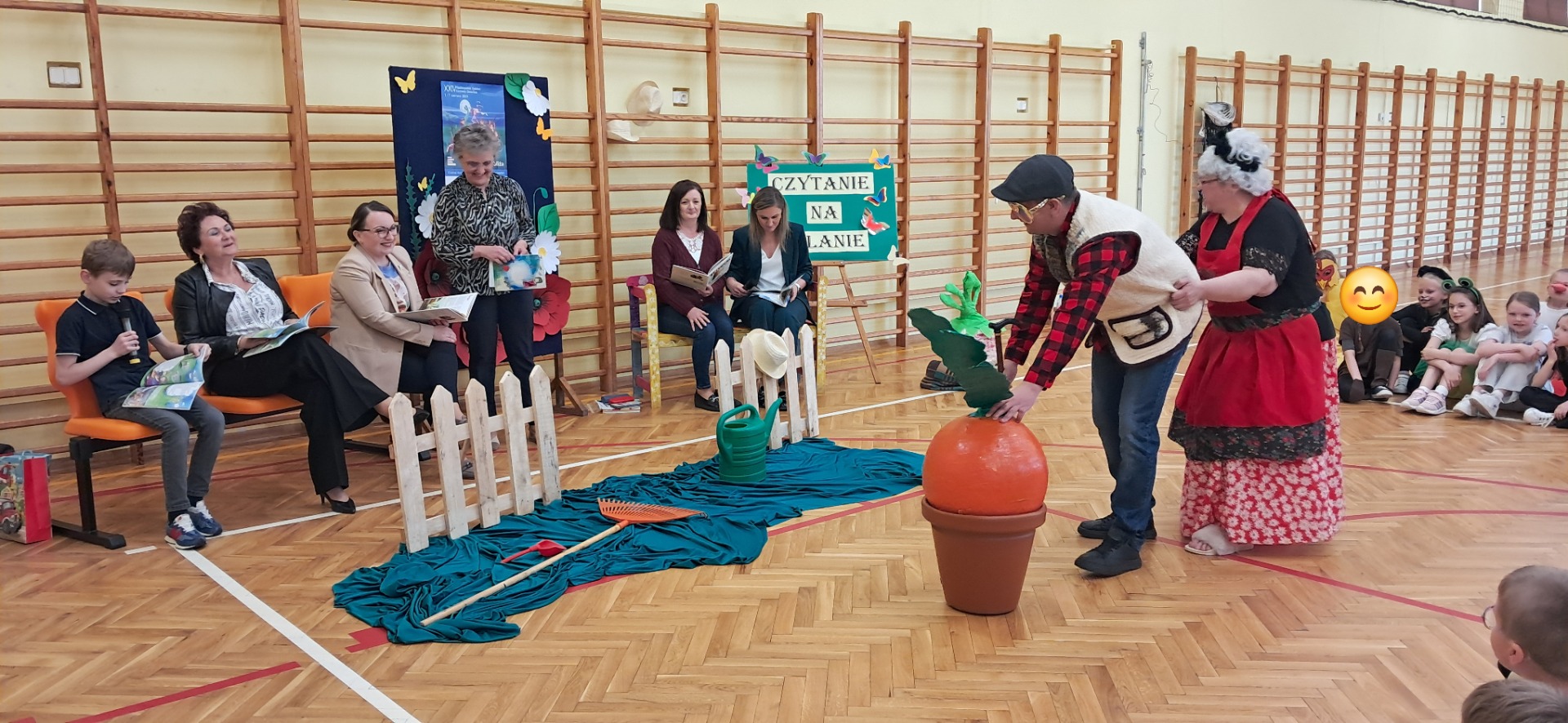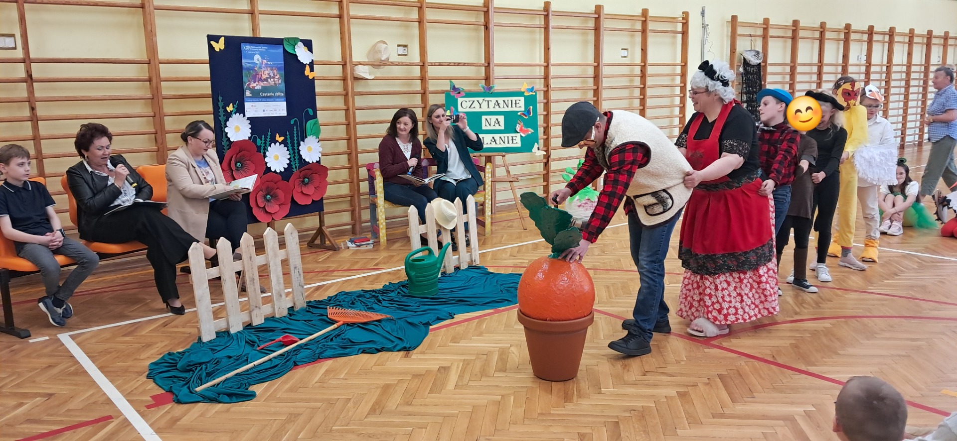 Dzieci, wspólnie z zaproszonymi gośćmi, przygotowały barwną i pełną humoru inscenizację znanego wiersza Juliana Tuwima pt. „Rzepka”. W rolę Dziadka wcielił się Wójt Gminy Nowy Duninów, Pan Karol Gutkowicz, a Babcię odegrała Radna Gminy Nowy Duninów, Pani Iwona Rękawiecka. Na scenie nie zabrakło również małych aktorów – uczniów klasy II, którzy z zapałem odgrywali role: Wnuczka, Kurki, Kici, Mruczka, Gąski, Boćka i Żabki.