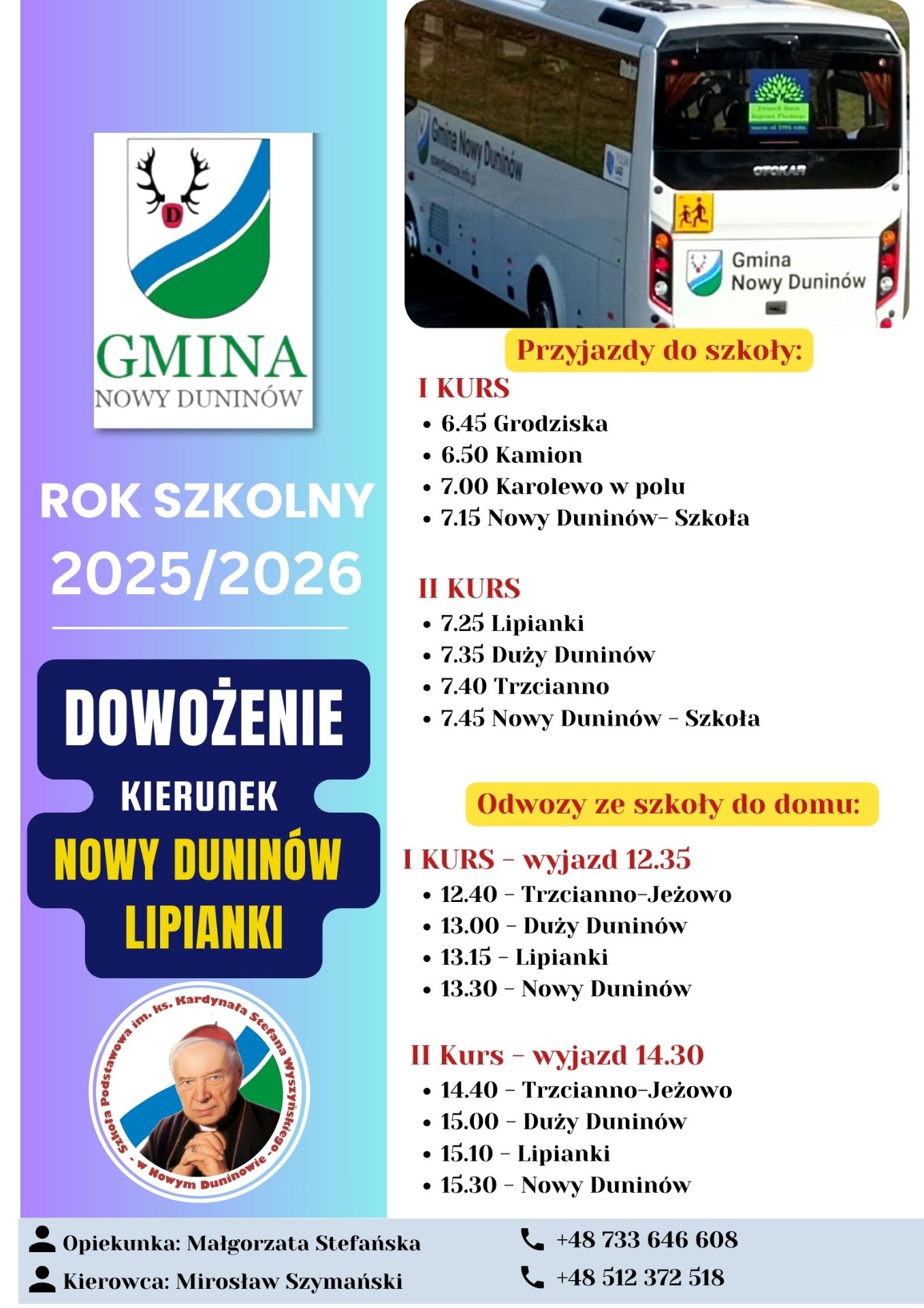 ➡️ Od drugiego semestru ZMIANA pierwszy kurs realizowany będzie w kierunku Lipianek – Duży Duninów.