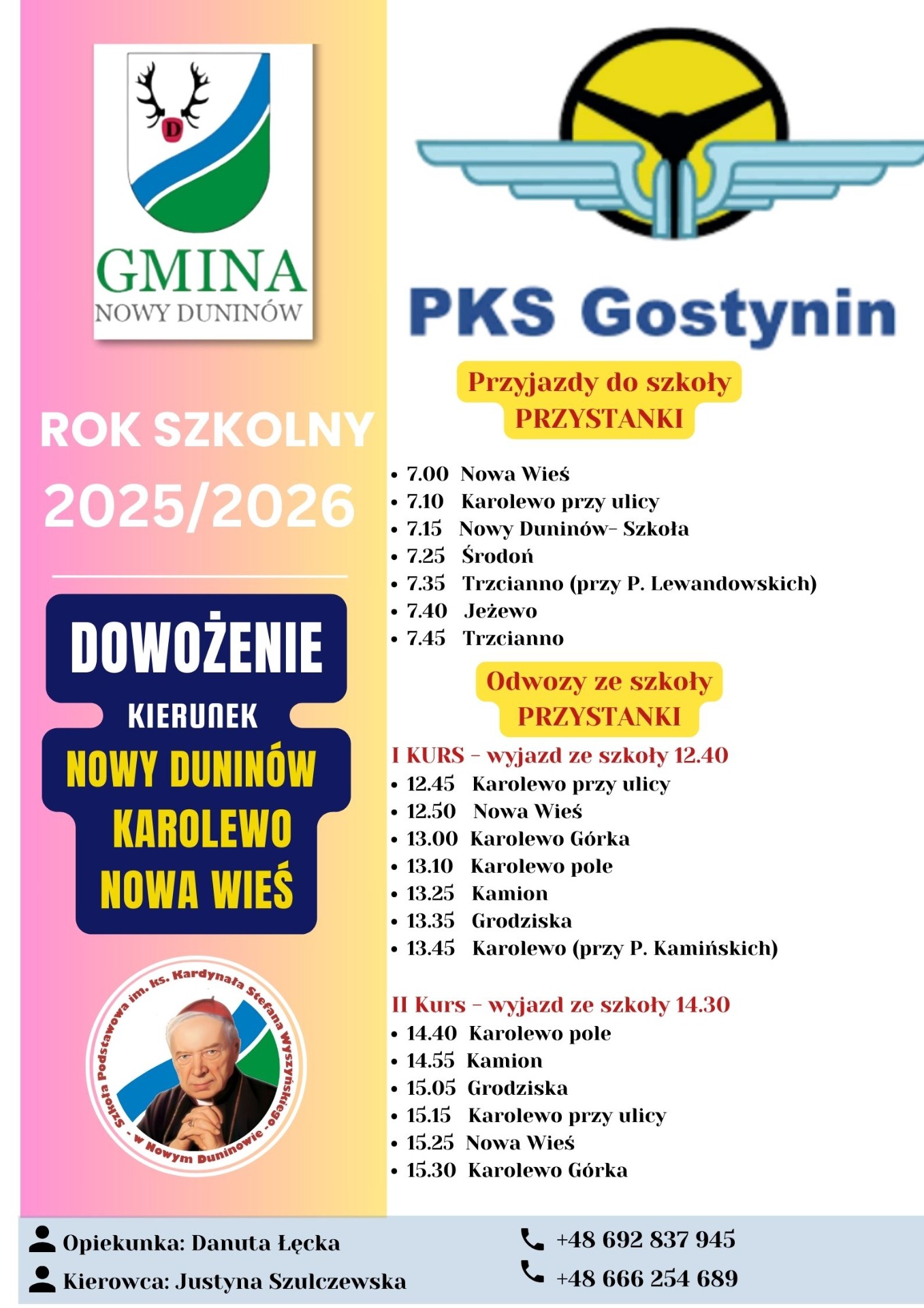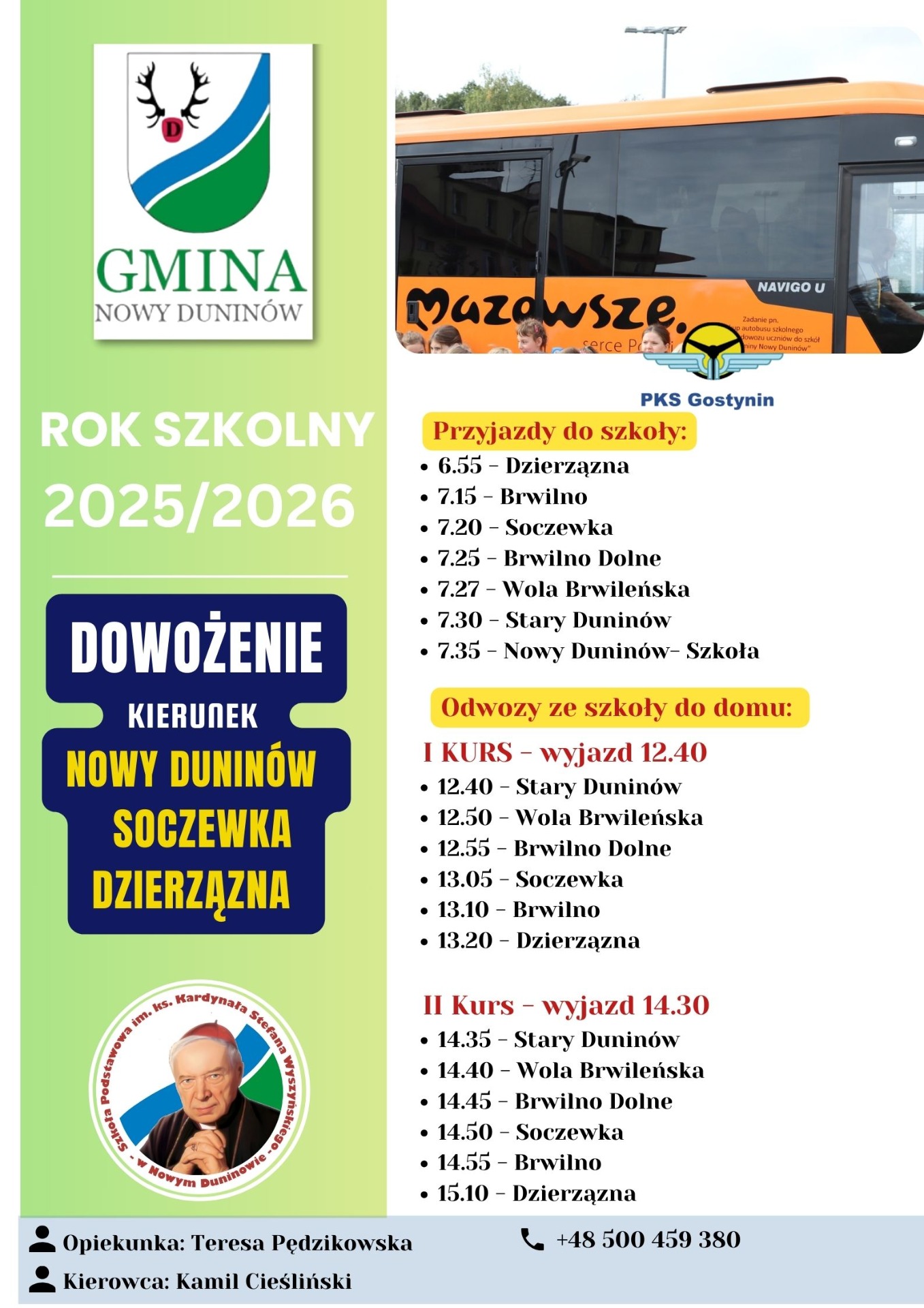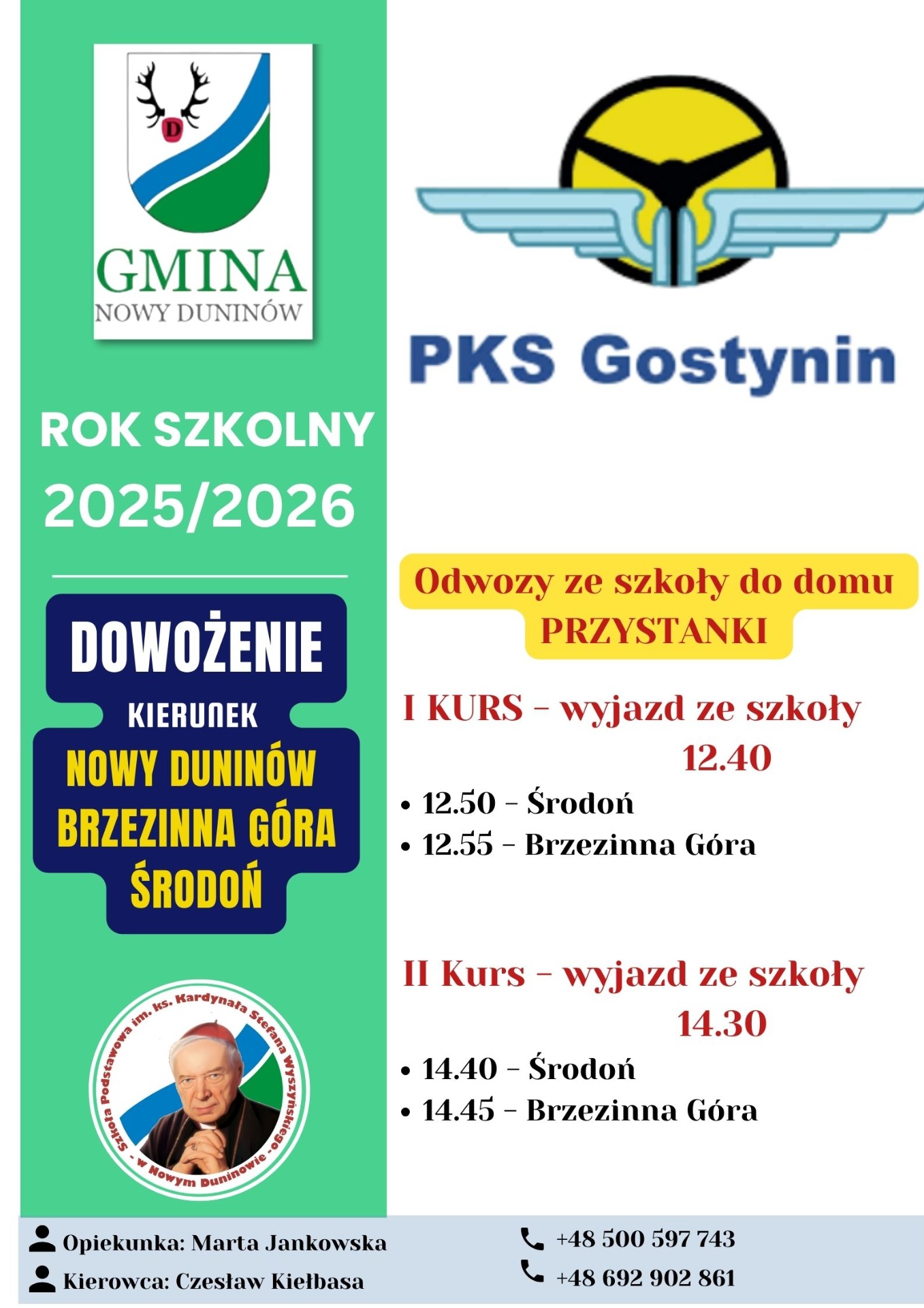 Szczegółowy rozkład jazdy autobusów PKS dostępny jest na stronie internetowej Gminy Nowy Duninów pod linkiem: