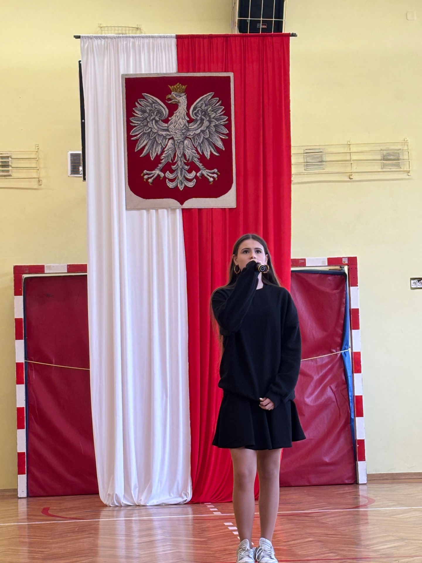 W krótkim programie artystycznym uczniowie przybliżyli zgromadzonym postać Patrona Szkoły.