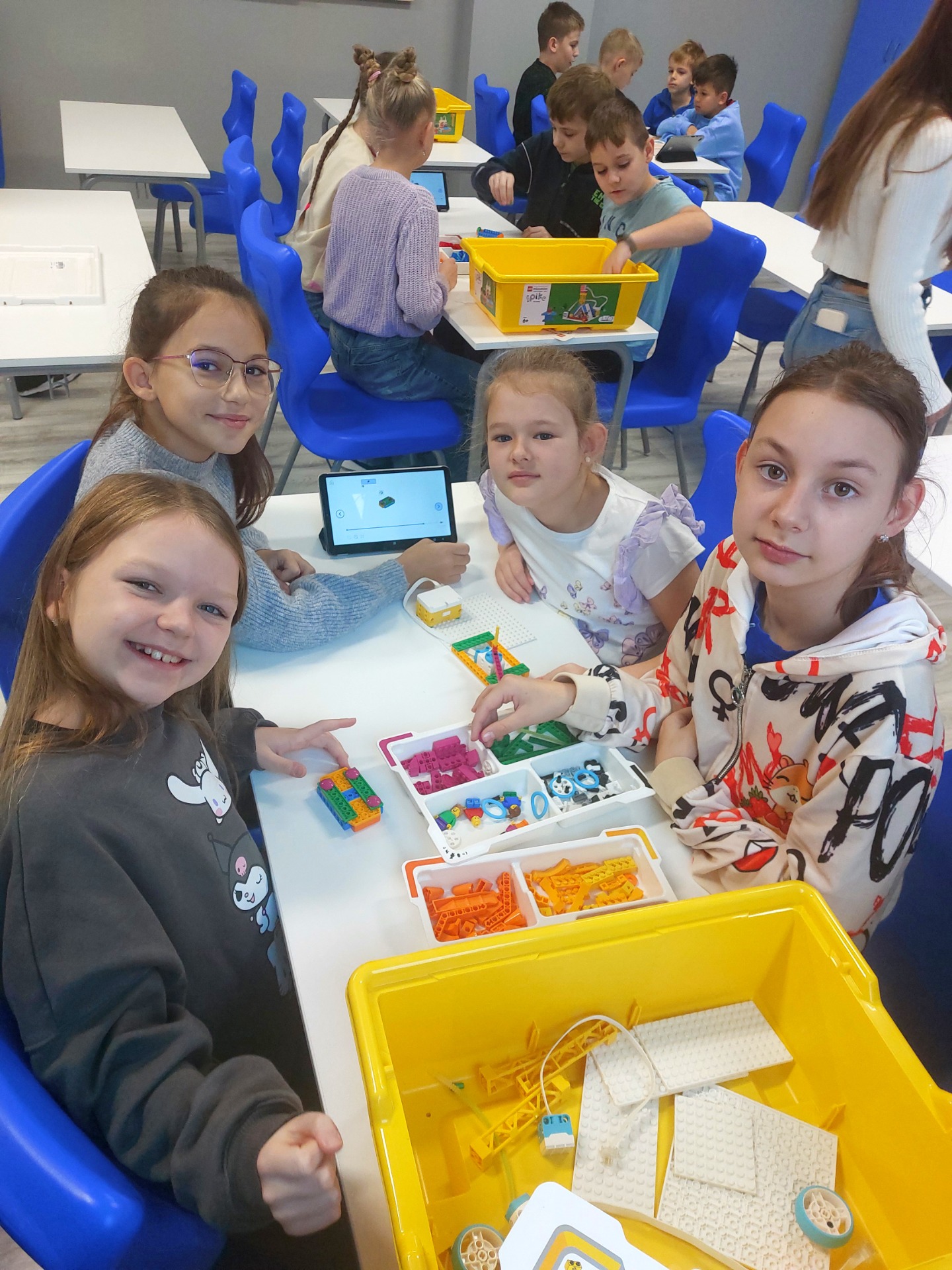 Dziś (piątek, 17.10.2025) odbyły się pokazowe zajęcia z robotyki, prowadzone przez Robotyczne Przygody – Akademię Robotyki dla Dzieci. Uczniowie klas 0-3 mieli okazję samodzielnie programować i konstruować roboty z klocków LEGO, rozwijając przy tym kreatywność, logiczne myślenie i umiejętność pracy zespołowej.