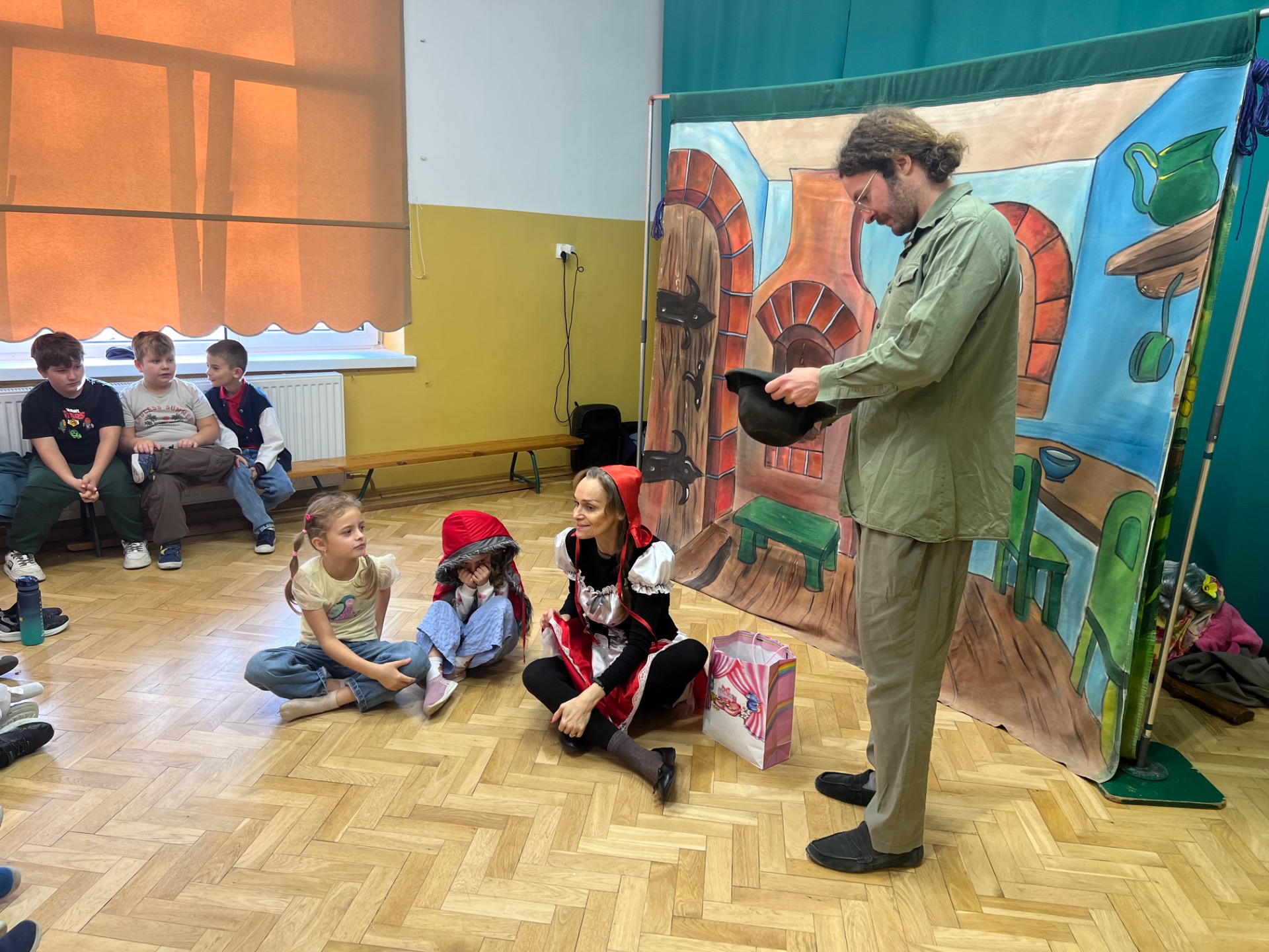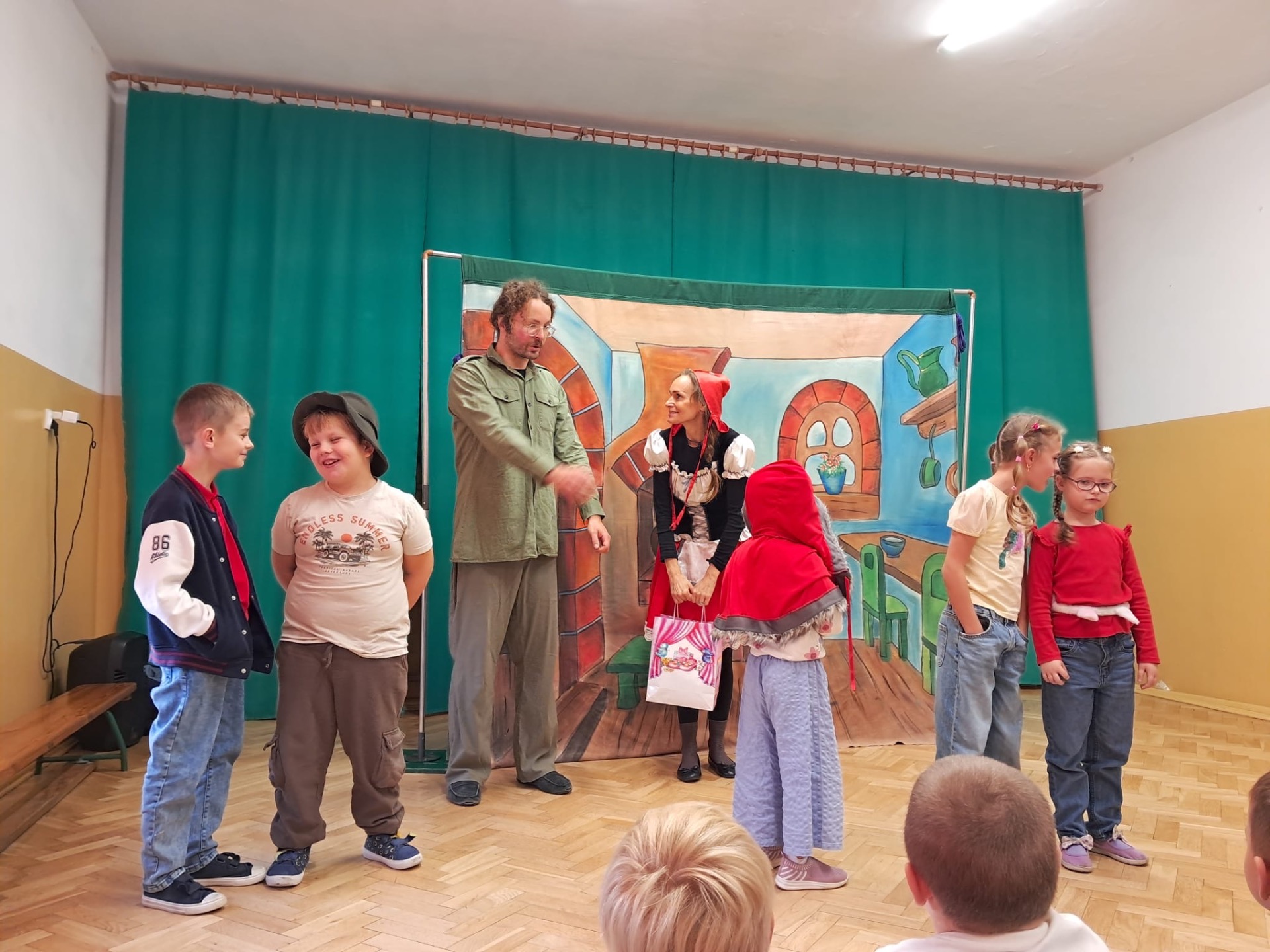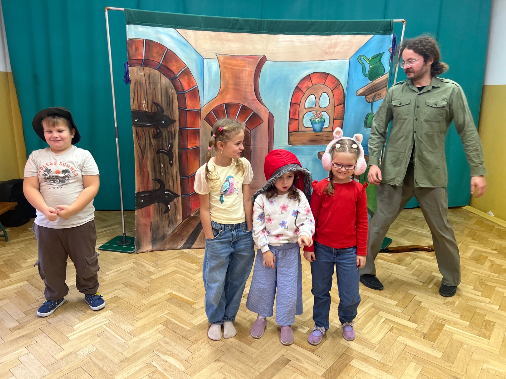 20 października 2025r. gościliśmy w murach Szkoły Filialnej w Soczewce grupę teatralną Krak-Art-Bis. Aktorzy zaprezentowaki spektakl pt. "Czerwony Kapturek", który wywołał szeroki uśmiech na dziecięcych twarzach. Uczniowie chętnie uczestniczyli w przedstawieniu, które miało charakter interaktywny.
