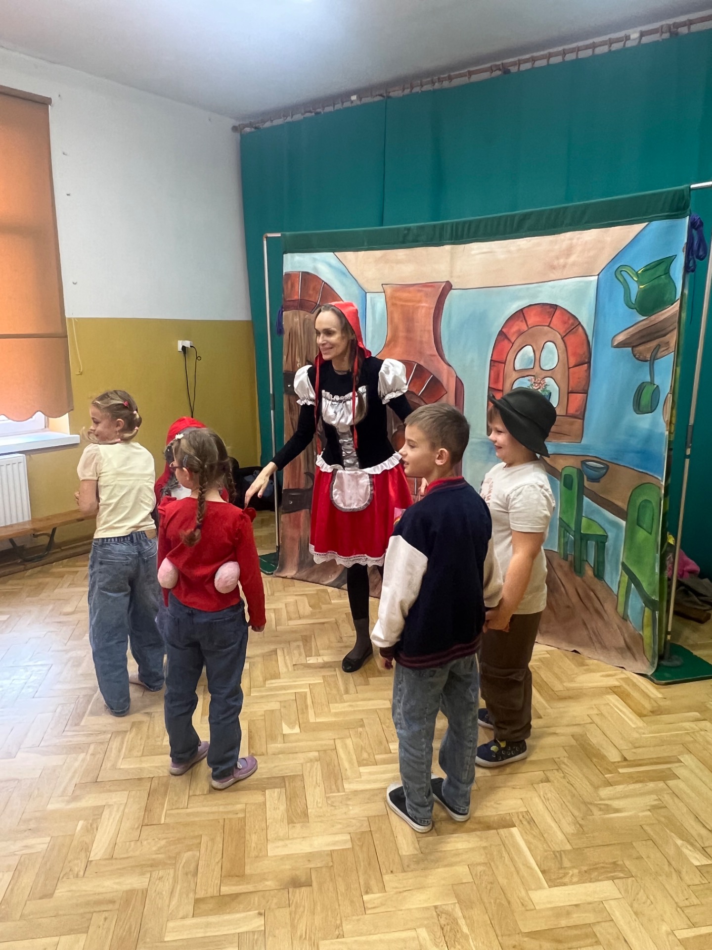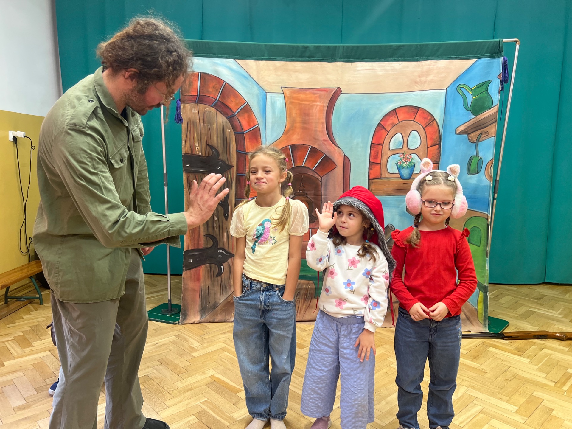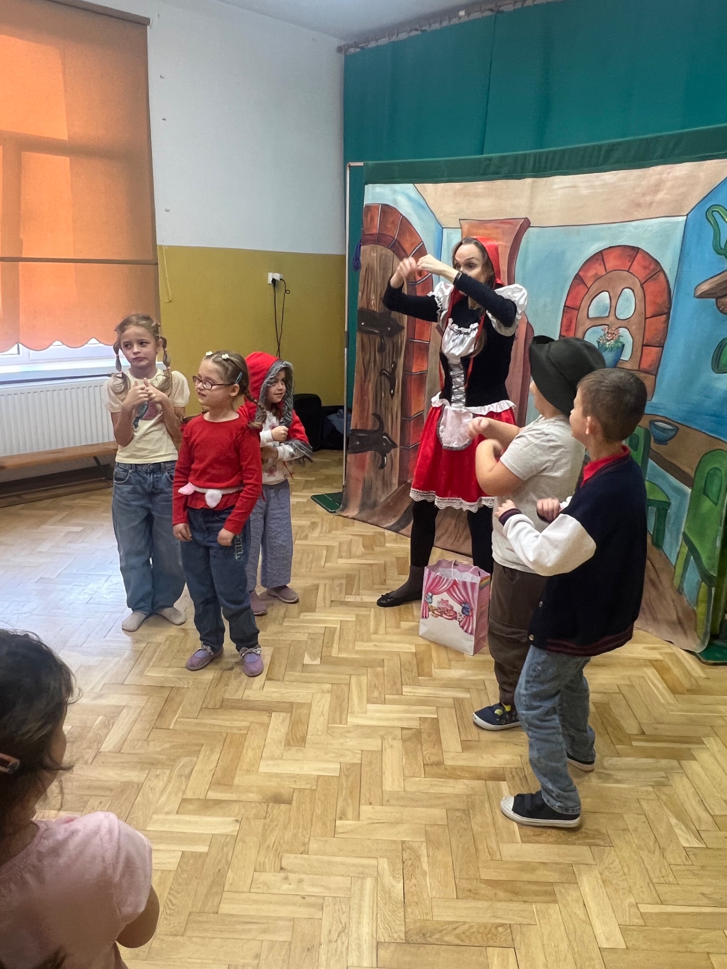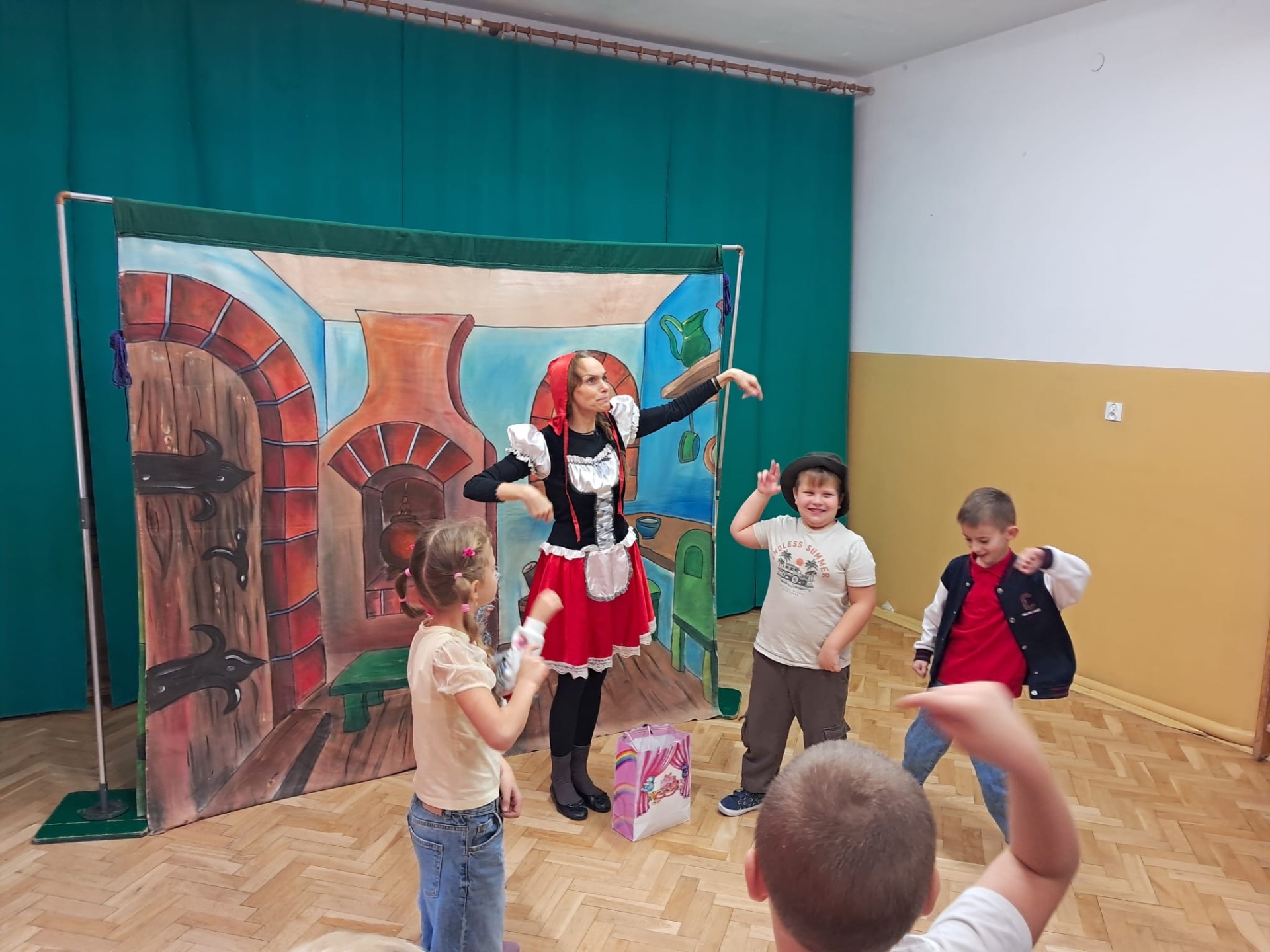 20 października 2025r. gościliśmy w murach Szkoły Filialnej w Soczewce grupę teatralną Krak-Art-Bis. Aktorzy zaprezentowaki spektakl pt. "Czerwony Kapturek", który wywołał szeroki uśmiech na dziecięcych twarzach. Uczniowie chętnie uczestniczyli w przedstawieniu, które miało charakter interaktywny.