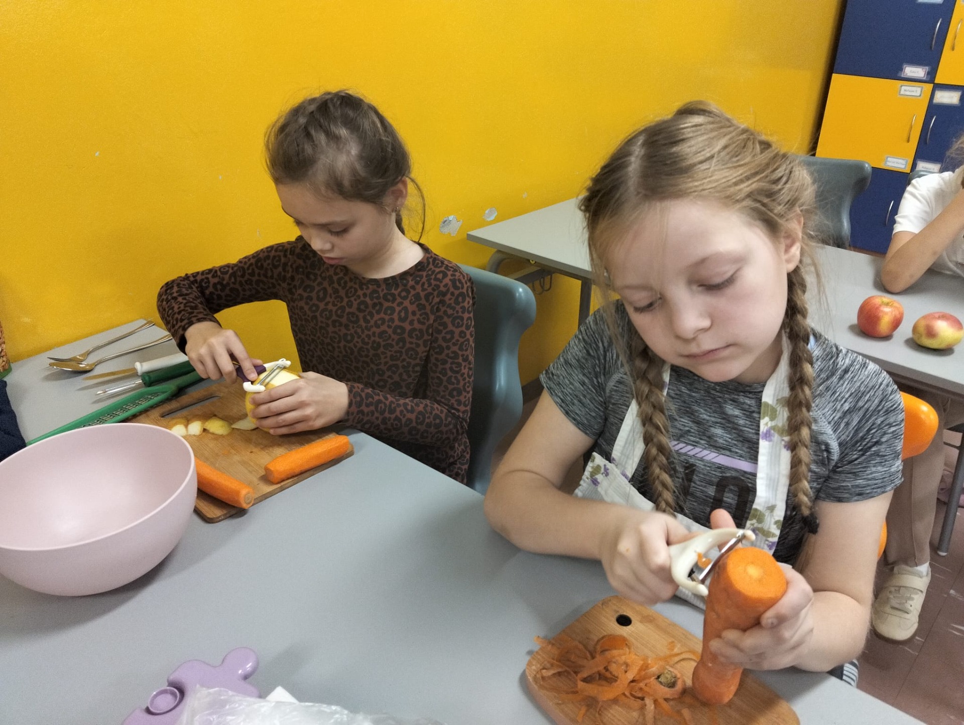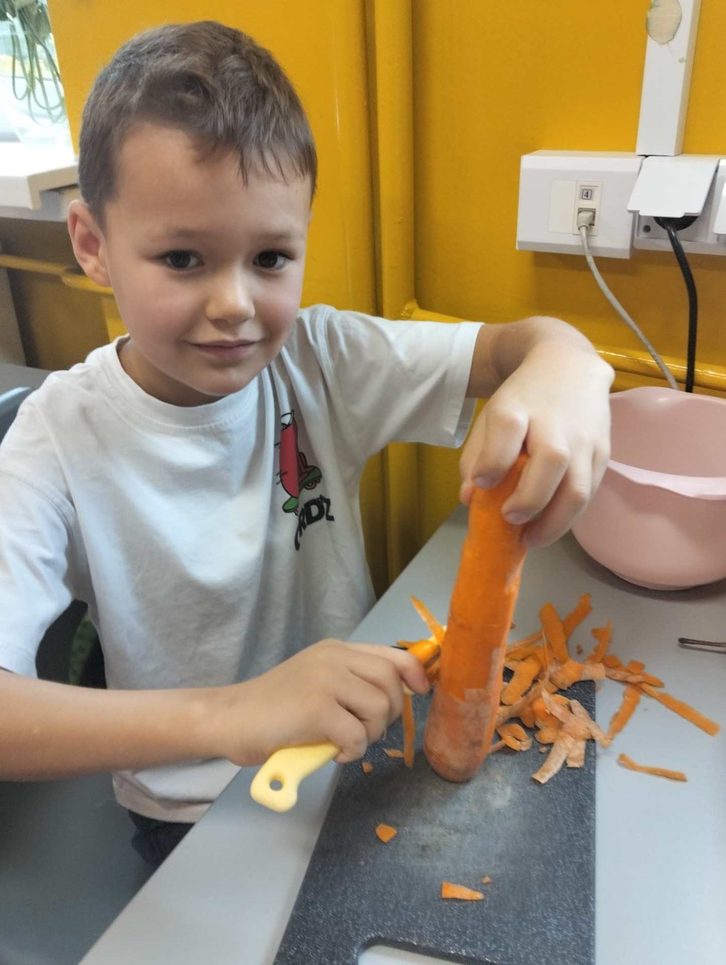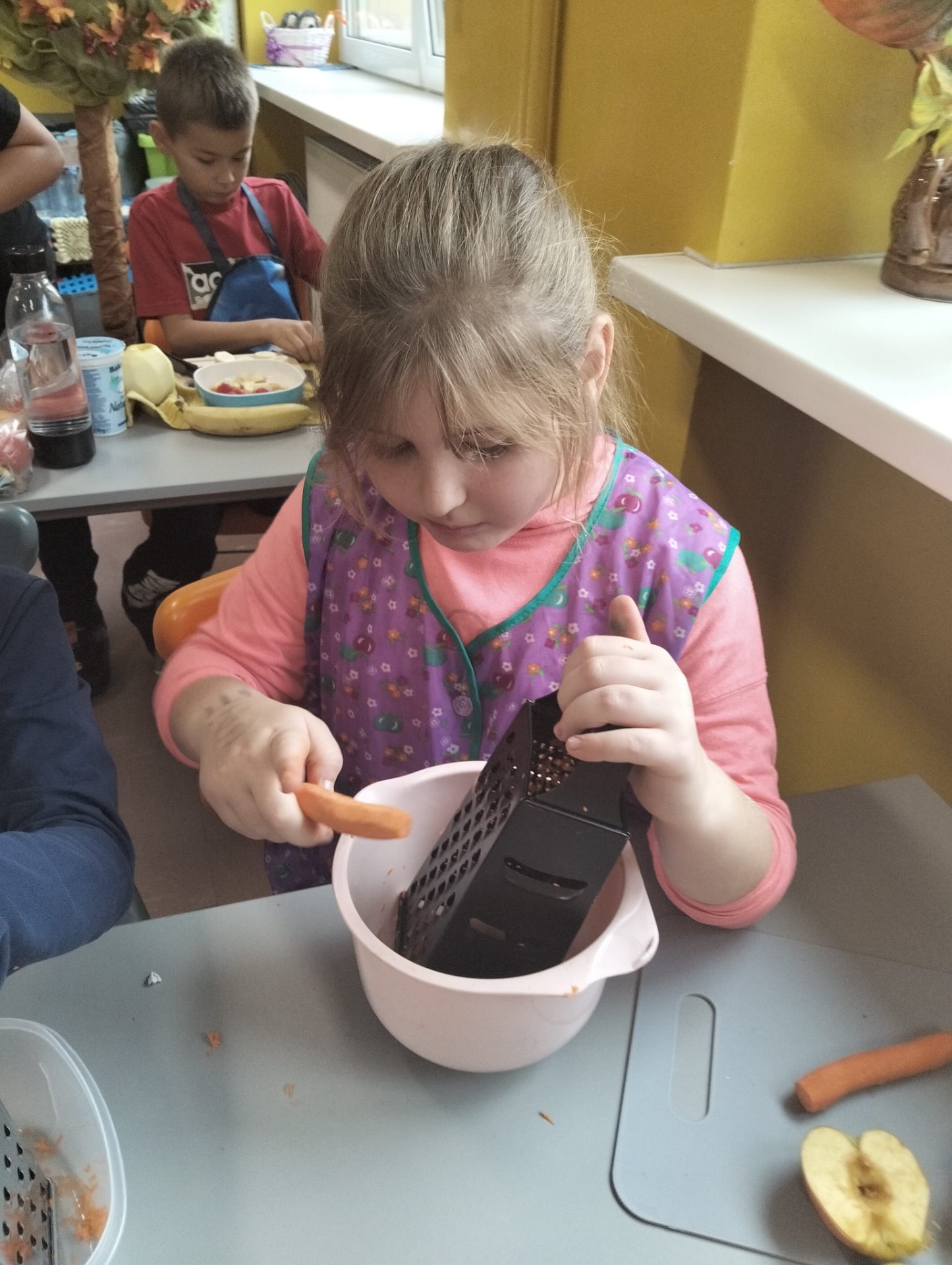 Zwiększenie ilości spożywania zdrowych owoców i warzyw to główny cel Światowego Dnia Owoców i Warzyw, który w kalendarzu przypadał w tym roku 17 października. Święto to zapoczątkowane w Nowej Zelandii postanowiliśmy uczcić i w naszej szkole. Z tej okazji odbyły się w klasie II zajęcia edukacyjne, praktyczne warsztaty robienia surówki na drugie śniadanie i zajęcia twórczości plastycznej. W ten sposób przypomnieliśmy, że właściwe odżywianie jest najlepszym sposobem na zachowanie zdrowia i wzmocnienie odporności. Tak więc dzieci przygotowały pyszne surówki z ulubionych warzyw i owoców, królowały jabłka i marchewki ale na stole znalazły się także: por, sałata, pomidor, maliny, pomarańcze, banany i bakalie. Zachęcamy rodziców do częstszego wzbogacania diety dzieci o cenne i wartościowe produkty odżywcze . Wiemy, że słodycze są dobre tylko w smaku, a warzywa i owoce potrafią dobrze smakować i dobrze wpływają na nasze zdrowia.