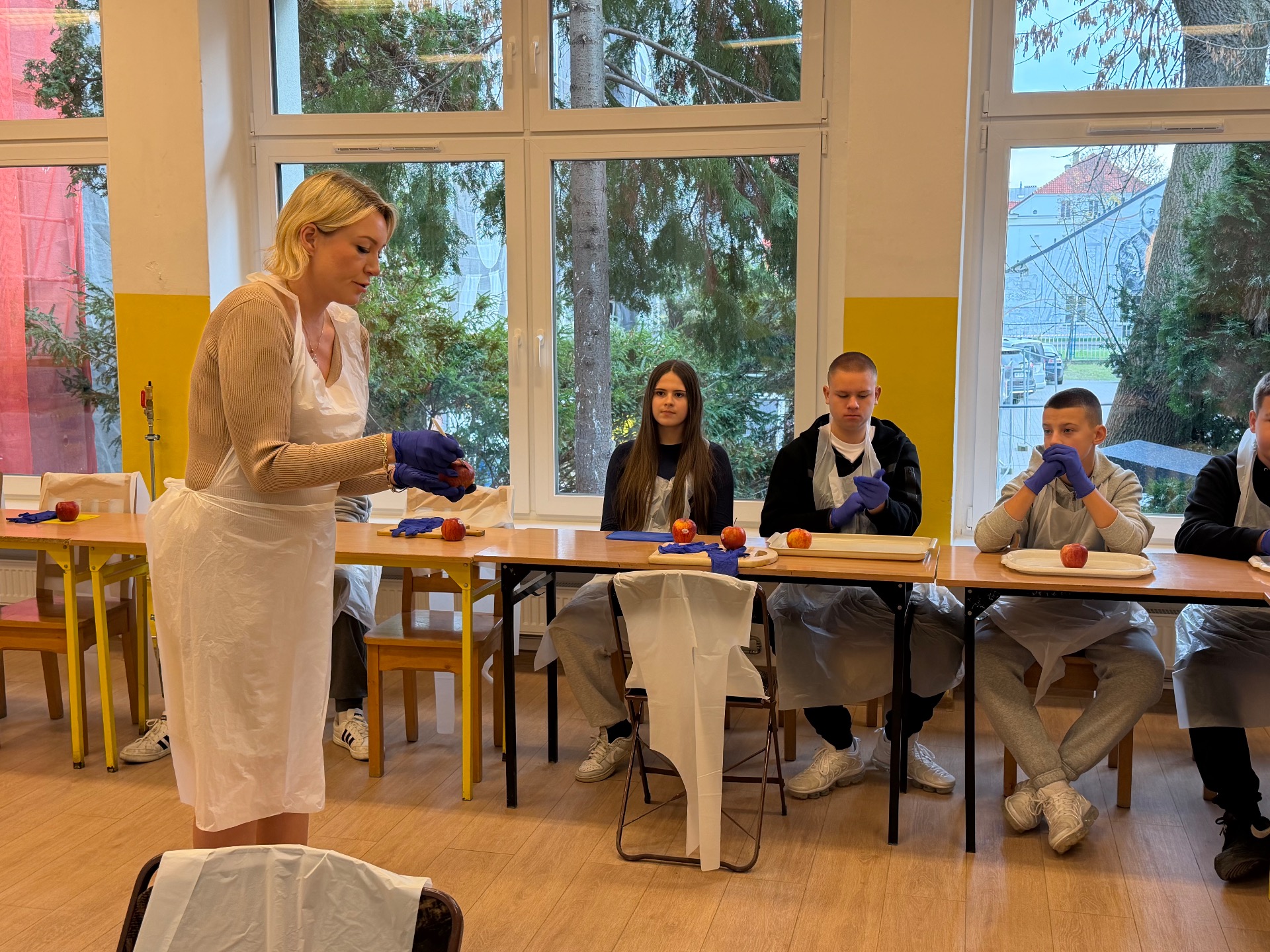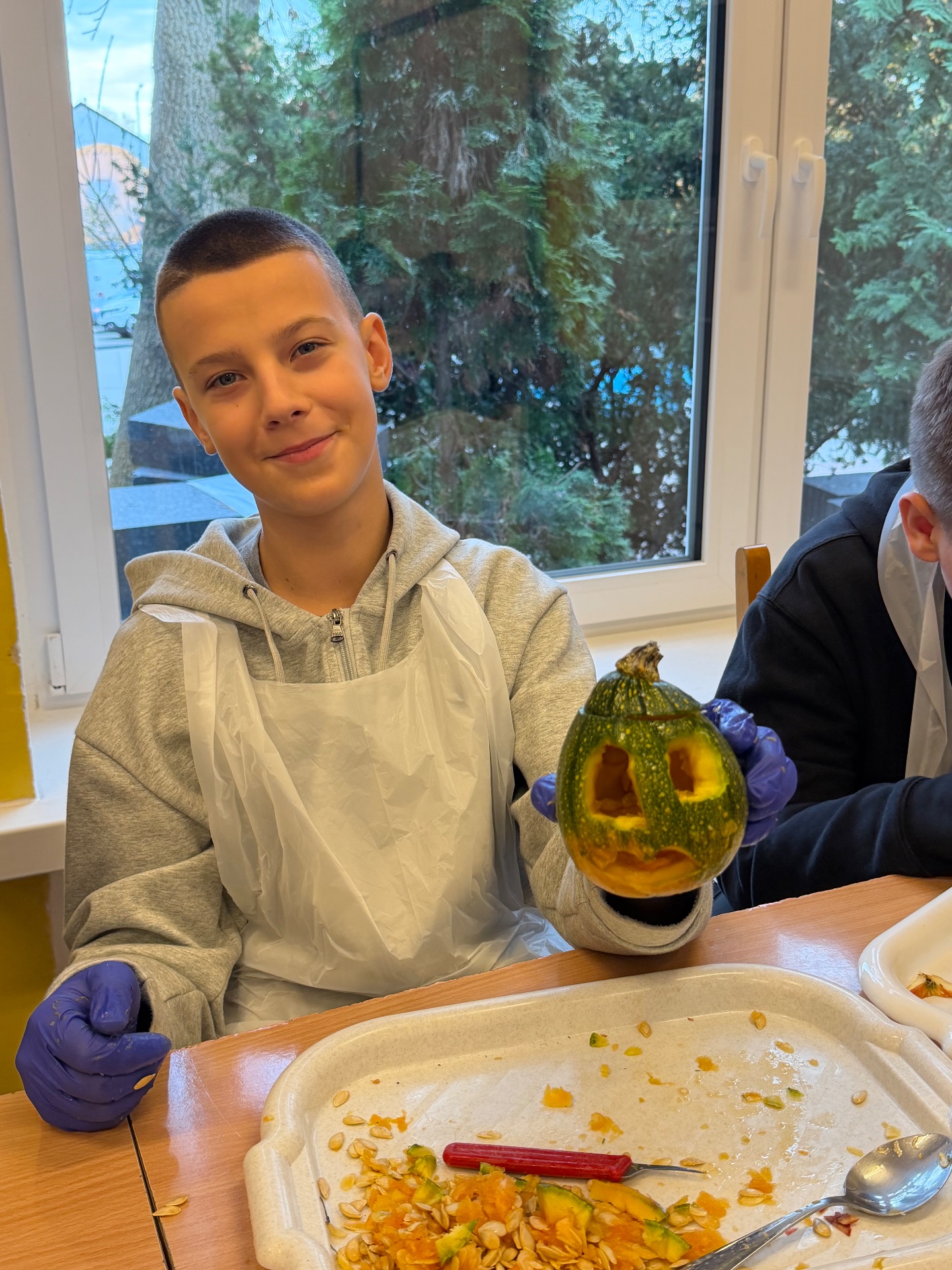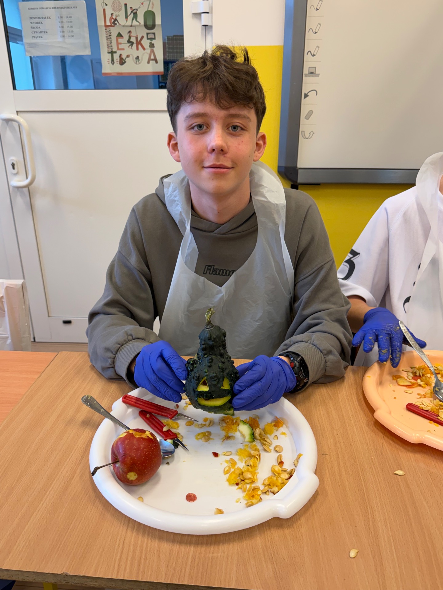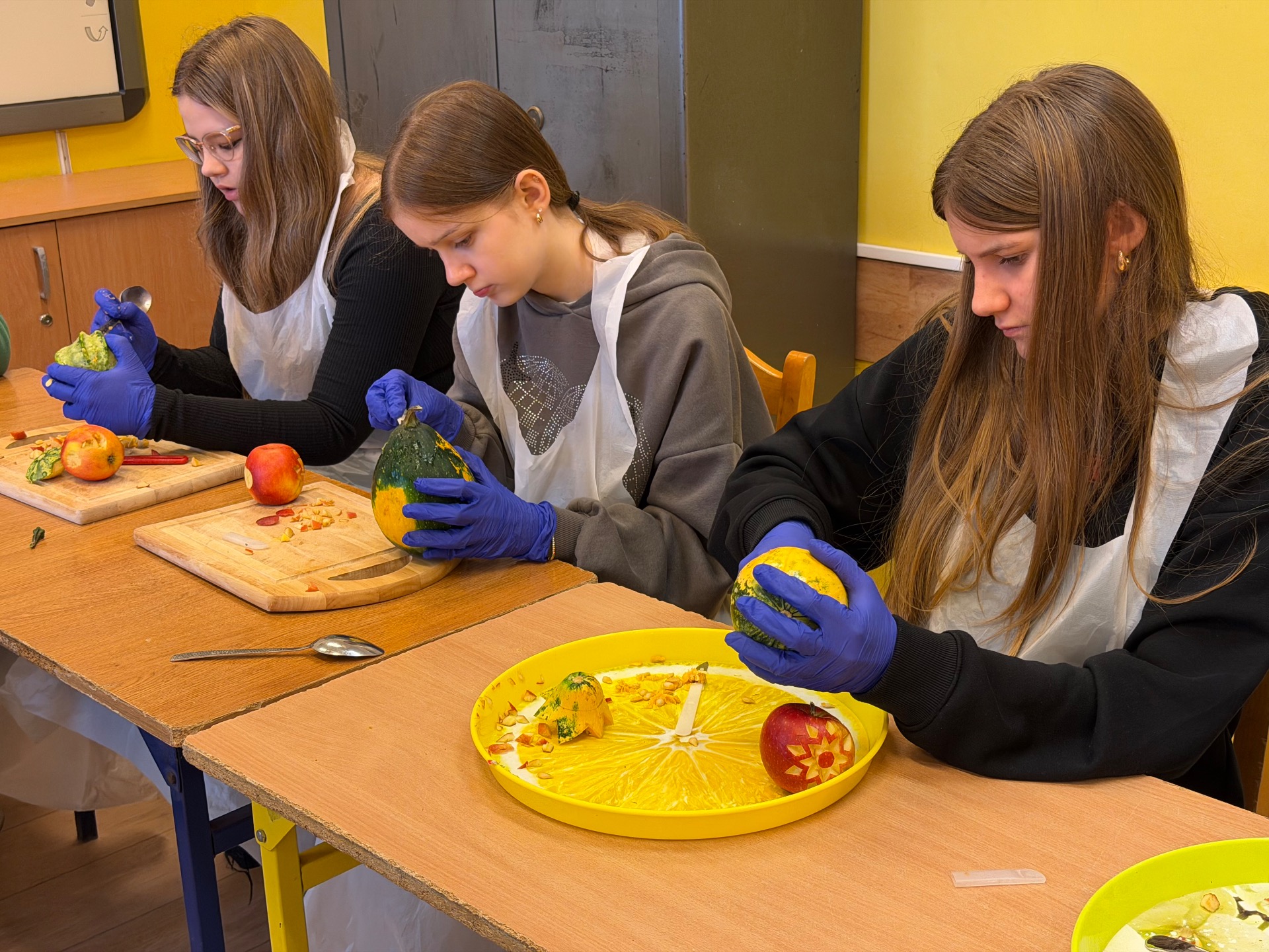 Wspieraj膮c uczni贸w w podejmowaniu 艣wiadomych decyzji dotycz膮cych ich 艣cie偶ki edukacyjnej i zawodowej, staramy si臋 dostarcza膰 im informacji o zawodach i rynku pracy. 30.10.2025 r. uczniowie klasy 8B z wychowawc膮 wybrali si臋 do Zespo艂u Szk贸艂 Ekonomiczno - Kupieckich w P艂ocku i uczestniczyli w warszatach z carvingu - dekoracyjnego wycinania owoc贸w i warzyw. W ramach warsztat贸w uczestnicy poznali specjalistyczne narz臋dzia, podstawowe techniki wycinania i tworzenia dekoracji z owoc贸w a tak偶e stworzyli halloweenowe dynie. Uczniowie zostali zapoznani r贸wnie偶 z ofert膮 edukacyjn膮 szko艂y ponadpodstawowej.