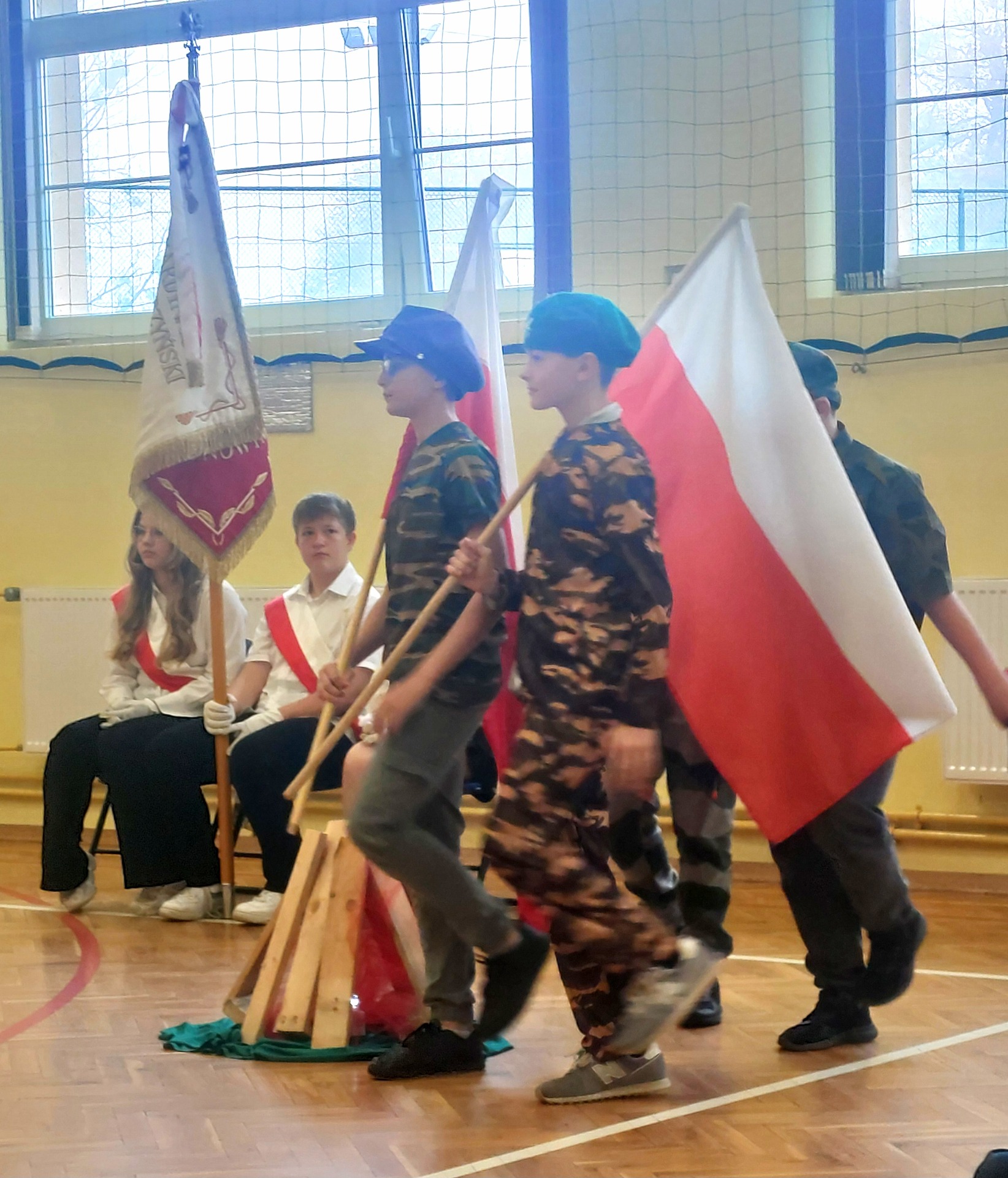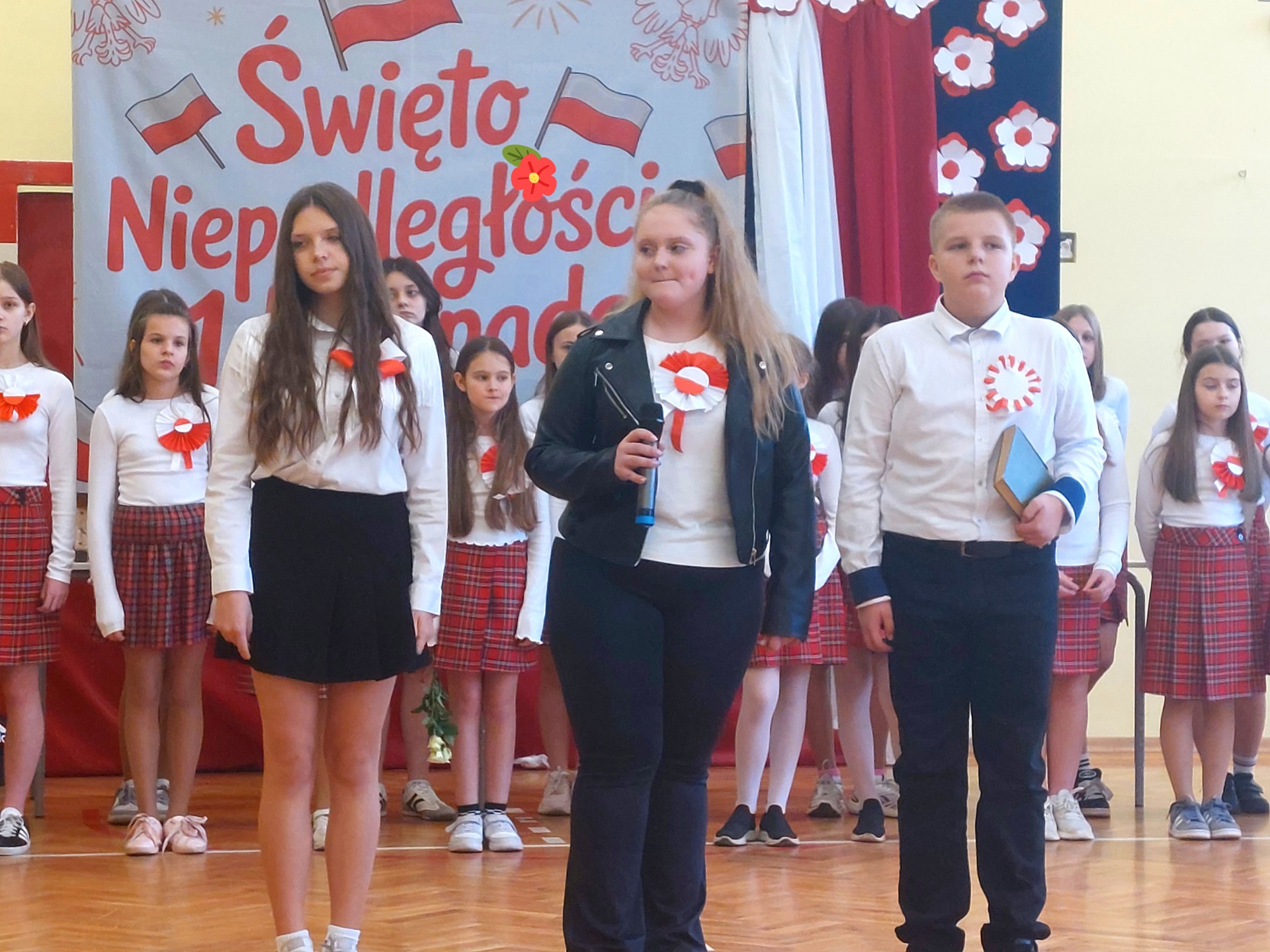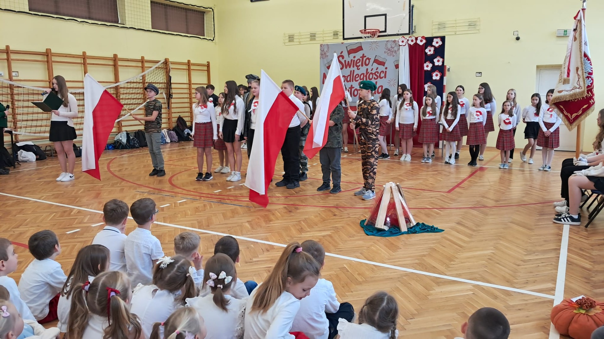 W dniu 11 listopada w naszej szkole odbył się uroczysty apel upamiętniający 107. rocznicę odzyskania przez Polskę niepodległości. Uroczystość rozpoczęła się od wprowadzenia pocztu sztandarowego i wspólnego odśpiewania hymnu narodowego. Następnie uczniowie przedstawili montaż słowno-muzyczny, w którym przypomnieli najważniejsze wydarzenia z historii Polski prowadzące do odzyskania wolności po latach zaborów.