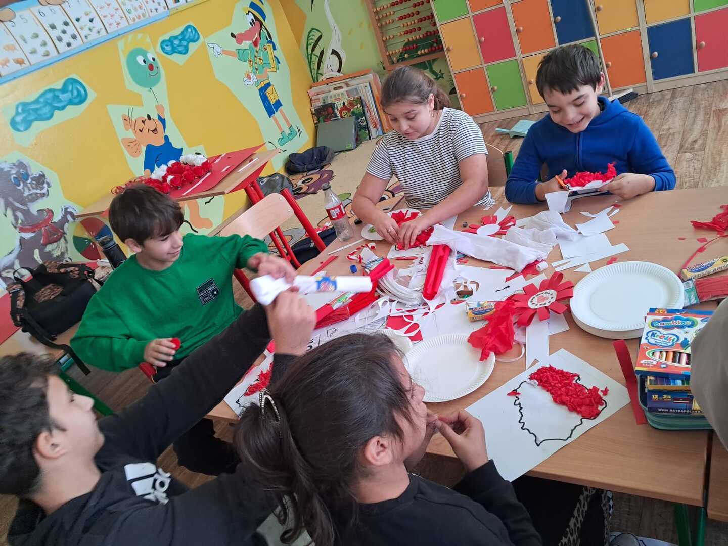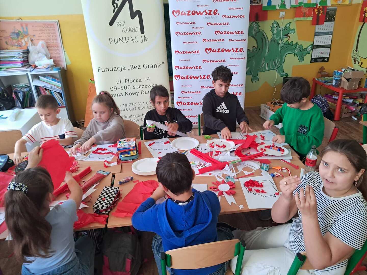 6 listopada 2025r. w Szkole Filialnej w Soczewce odbyły się Patriotyczne Warsztaty Plastyczne z Fundacją "Bez Granic". Uczniowie wykonali piękne biało-czerwone kotyliony, różane serca oraz ozdobili mapę Polski ojczystymi barwami. Poznali historię naszego kraju oraz szczegóły odzyskania niepodległości przez Polskę. Zapoznali się także ze zmianami godła na przestrzeni lat. To były wspaniałe chwile pełne zadumy i wartościowa lekcja patriotyzmu.