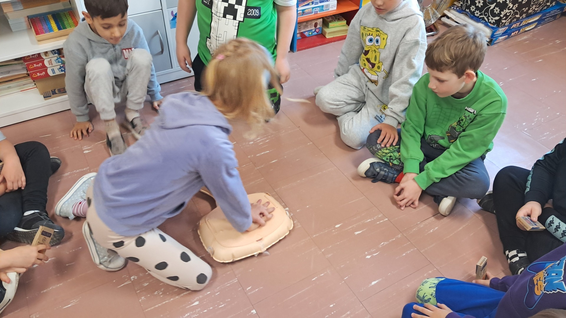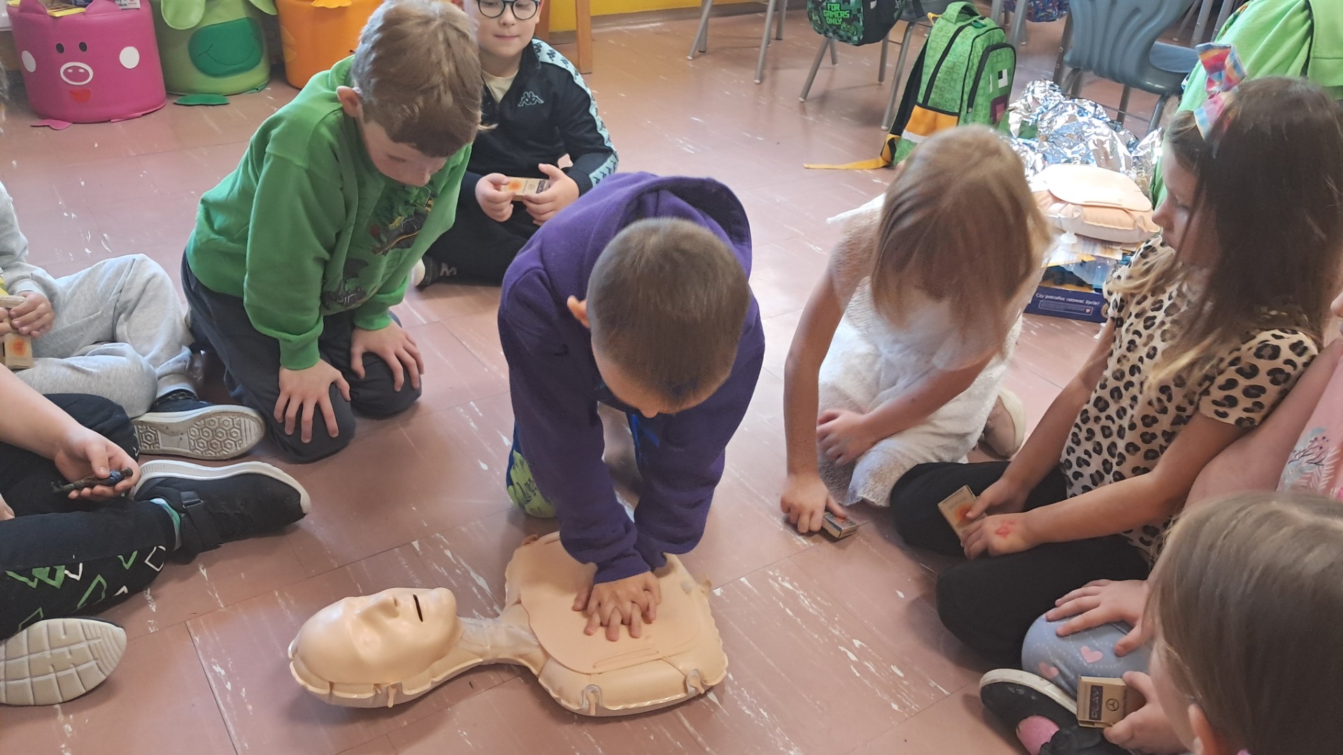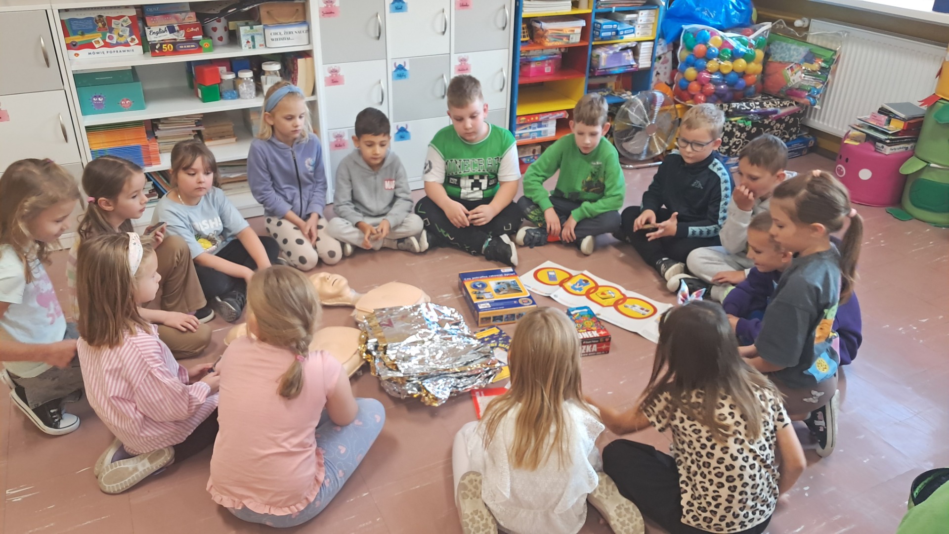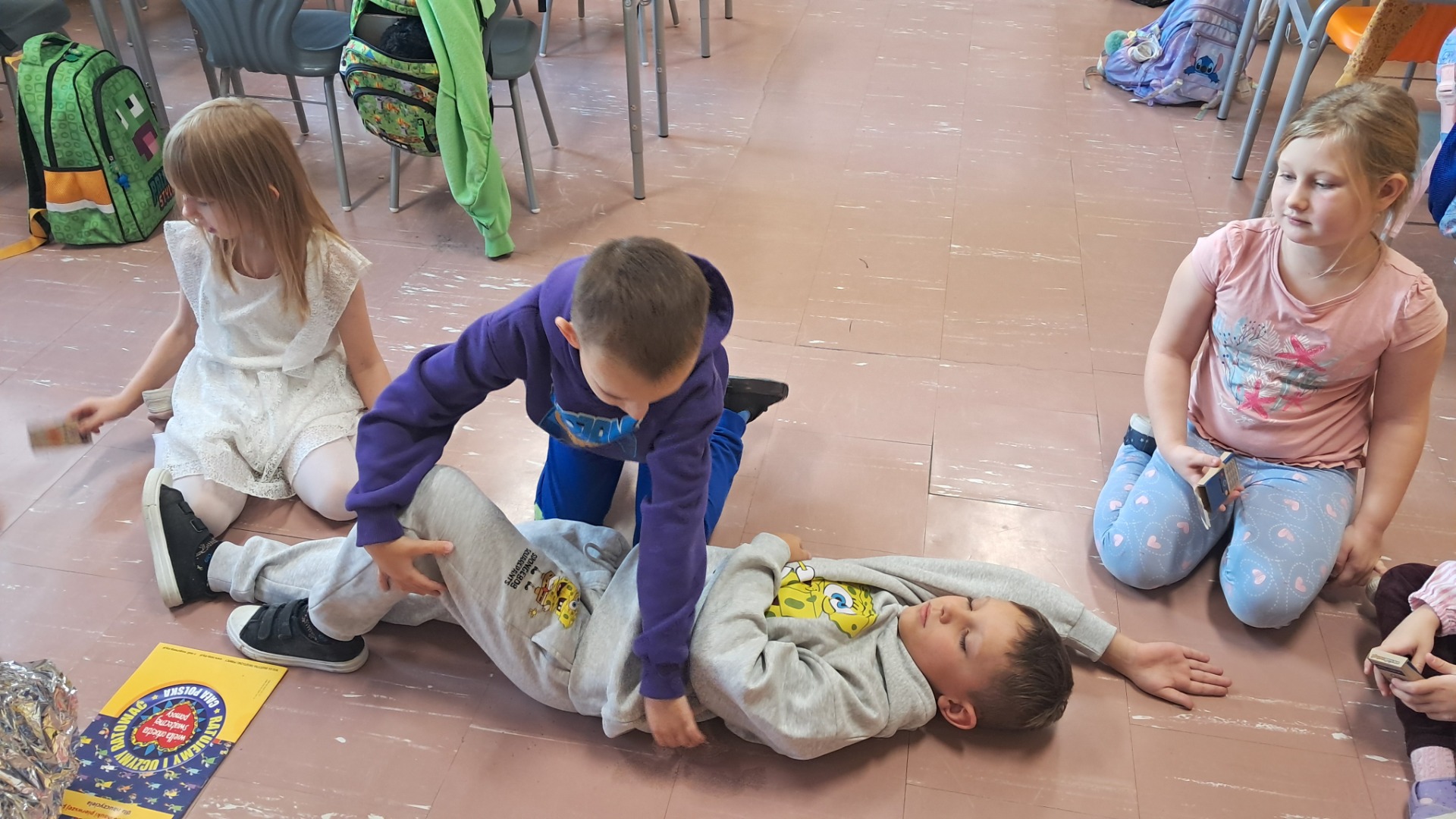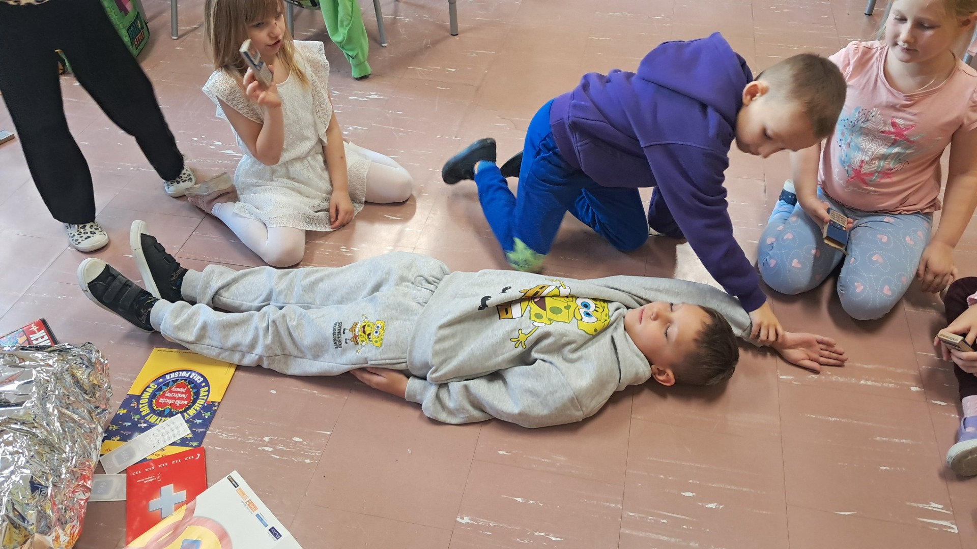 Klasa Ia ma za sobą pierwsze zajęcia w ramach programu Ratujemy i Uczymy Ratować z Wielkiej Orkiestry Świątecznej Pomocy. Poznanie zasad pierwszej pomocy to nie wszystko – na podjęcie działań ratujących życie przez świadków zdarzenia ogromny wpływ ma również ich postawa, pewność co do swoich umiejętności, a także obawy, które często im towarzyszą. Program RUR polega na wprowadzeniu zajęć z podstawowych czynności ratujących życie. Dzieci oswajają się z tak ważnymi zagadnieniami i kształtują właściwe nawyki – pierwsza pomoc staje się dla nich czymś naturalnym. Dzieci nauczyły się, że jednym z najważniejszych elementów udzielania skutecznej pomocy jest zachowanie własnego bezpieczeństwa, następnie ocena stanu poszkodowanego oraz wezwanie pomocy. Od tego czy powiadomimy służby ratownicze o wypadku, zdarzeniu może zależeć czyjeś życie.