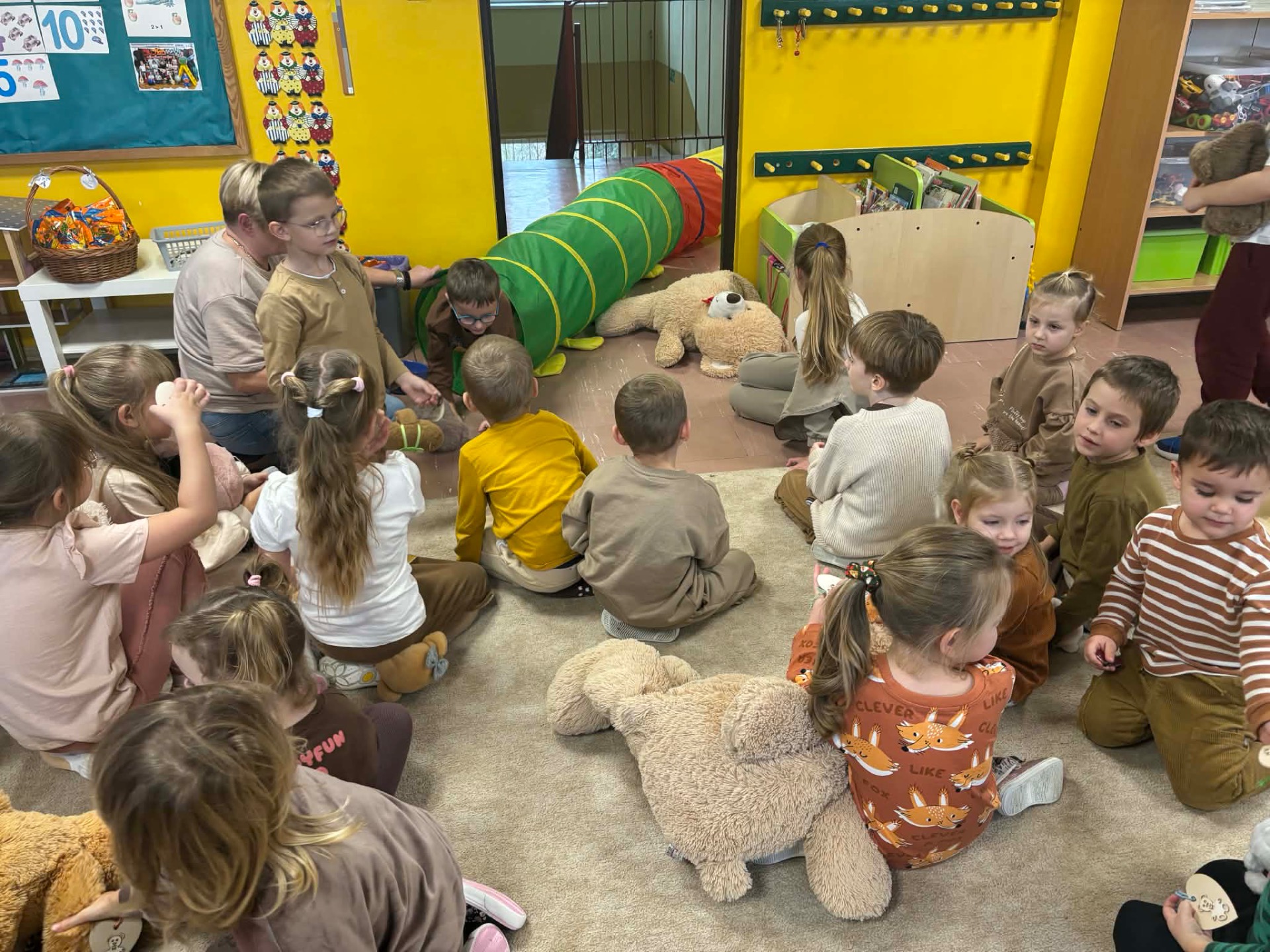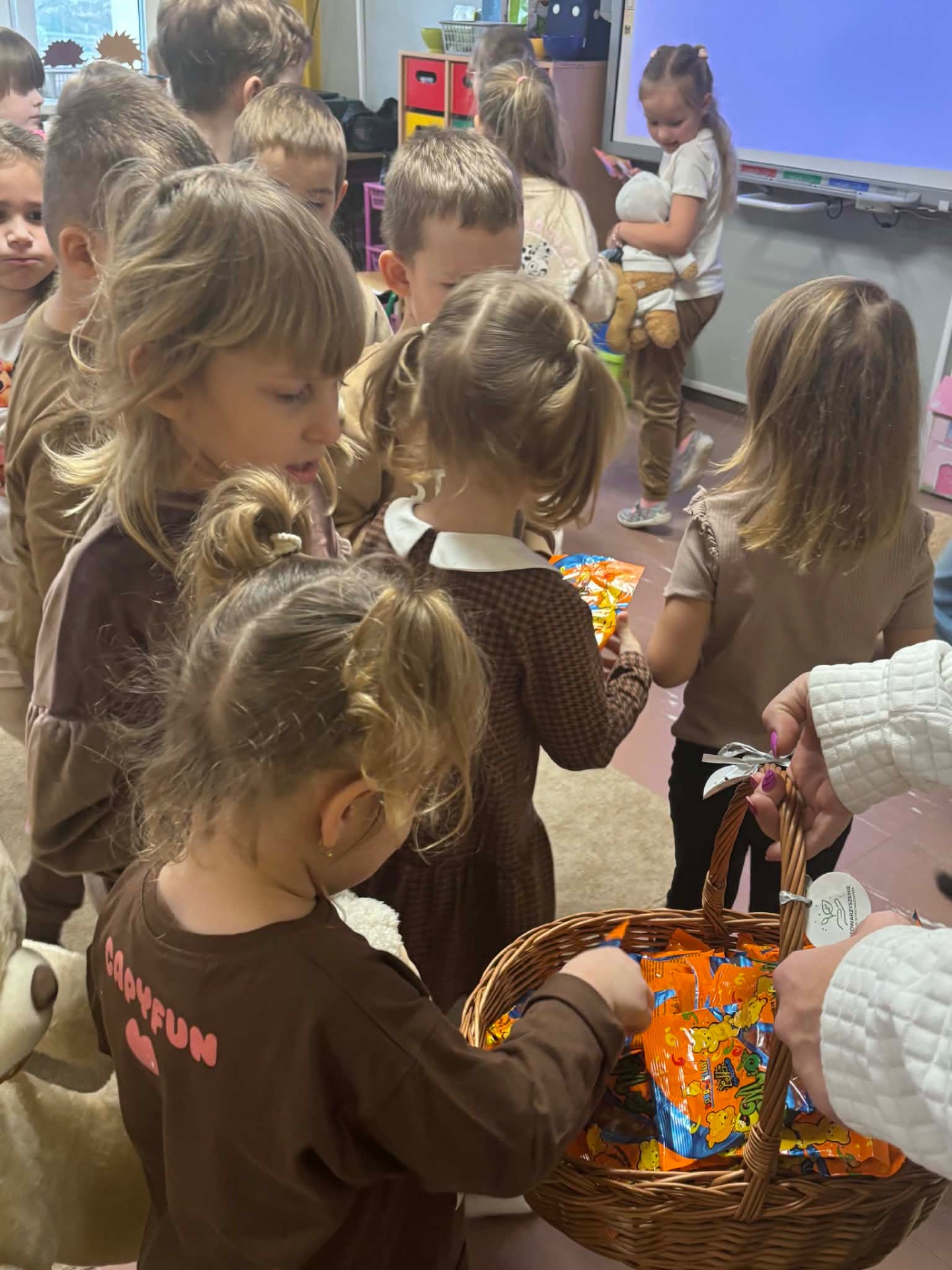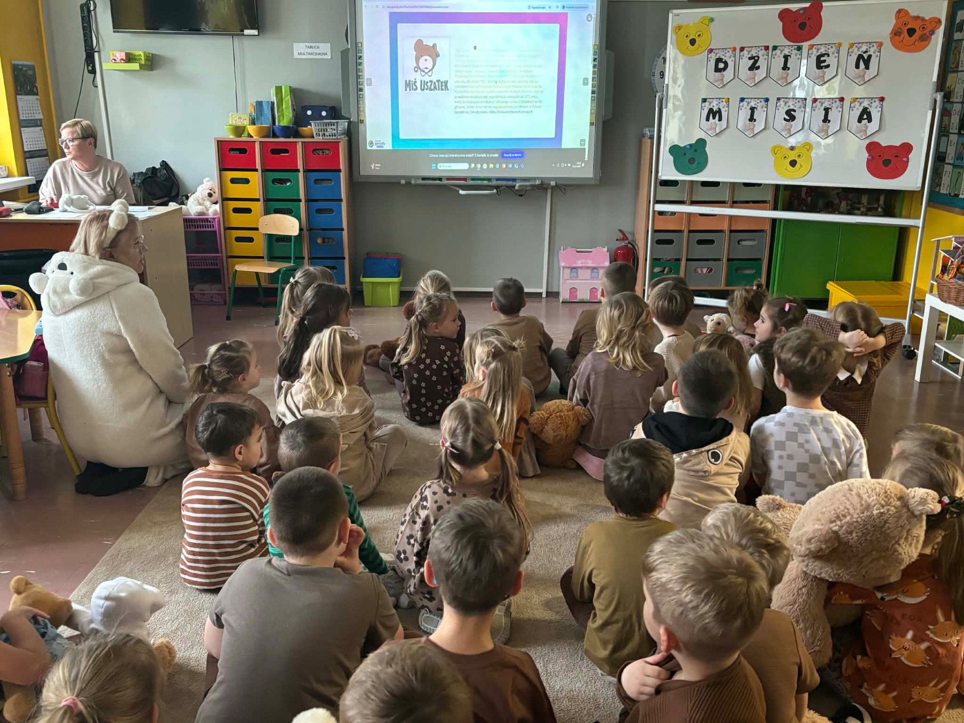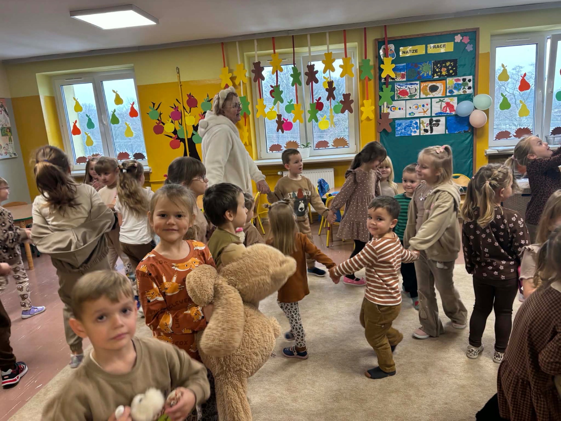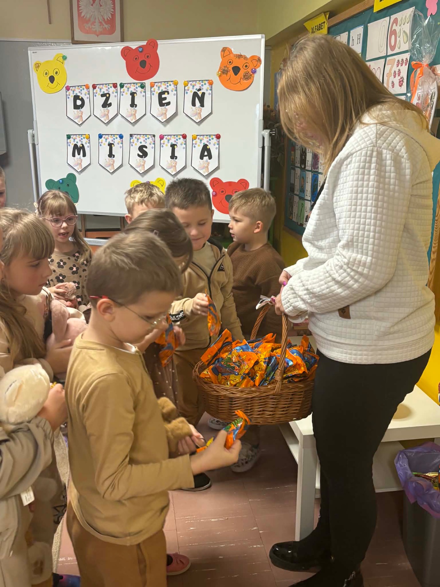 25 listopada swoje święto obchodzi Pluszowy Miś – najmilsza zabawka, najlepszy przyjaciel dzieci i niezastąpiona przytulanka przy zasypianiu. W naszym przedszkolu Święto Pluszowego Misia obchodzone jest bardzo szczególnie. Tego dnia, każde dziecko przyszło do przedszkola ze swoim „milutkim” przyjacielem, by wspólnie z innymi celebrować te pełne radości chwile. Na dzieci i ich misie czekało wiele atrakcji. Poznały historię święta, wspólnie recytowały wiersze i rymowanki o misiach, bawiły się przy misiowych piosenkach, uczestniczyły w zabawach ruchowych i zręcznościowych. Nie zabrakło konkursów, quizów i zgadywanek o słynnych misiach występujących w znanych bajkach. Dziekujemy Fundacji Bez Granic, która co roku pamięta o naszym wydarzeniu i obdarowuje przedszkolaki słodkimi upominkami.