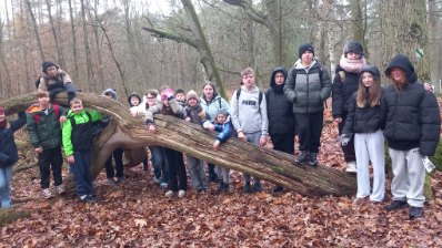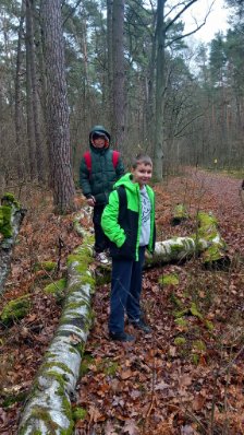 18 listopada 2025 r. odbyła się wycieczka do Kampinoskiego Parku Narodowego. W wyjeździe uczestniczyło 20 uczestników z klas IV-VII. Pomimo prognoz na deszcz i zimno pogoda dopisała - słońce zza chmur wyglądało. Pani przewodnik prowadząc nas po ścieżce dydaktycznej pokazywała piękne krajobrazy, ciekawe zakątki puszczy, jak również fantazyjnie rosnące drzewa. Zagadki, konkursy, zabawy sprawiły, że cztery godziny spaceru po lesie minęły jak kilka chwil. Spotkanie z leśnikiem w Muzeum Parku w Granicy dopełniło dawkę o ekologii, życiu zwierząt i ludzi w wdawnej puszczy. Super atmosfera, fajne dzieciaki, obcowanie z przyrodą, cisza lasu i pełne płuca tlenu sprawiły, że byliśmy szczęśliwi i zadowoleni z wyjazdu. Nie byłoby tego, gdyby nie dofiansowanie z Zarządu LOP z Warszawy, skąd otzymaliśmy dopłatę do wynajmu autokaru.