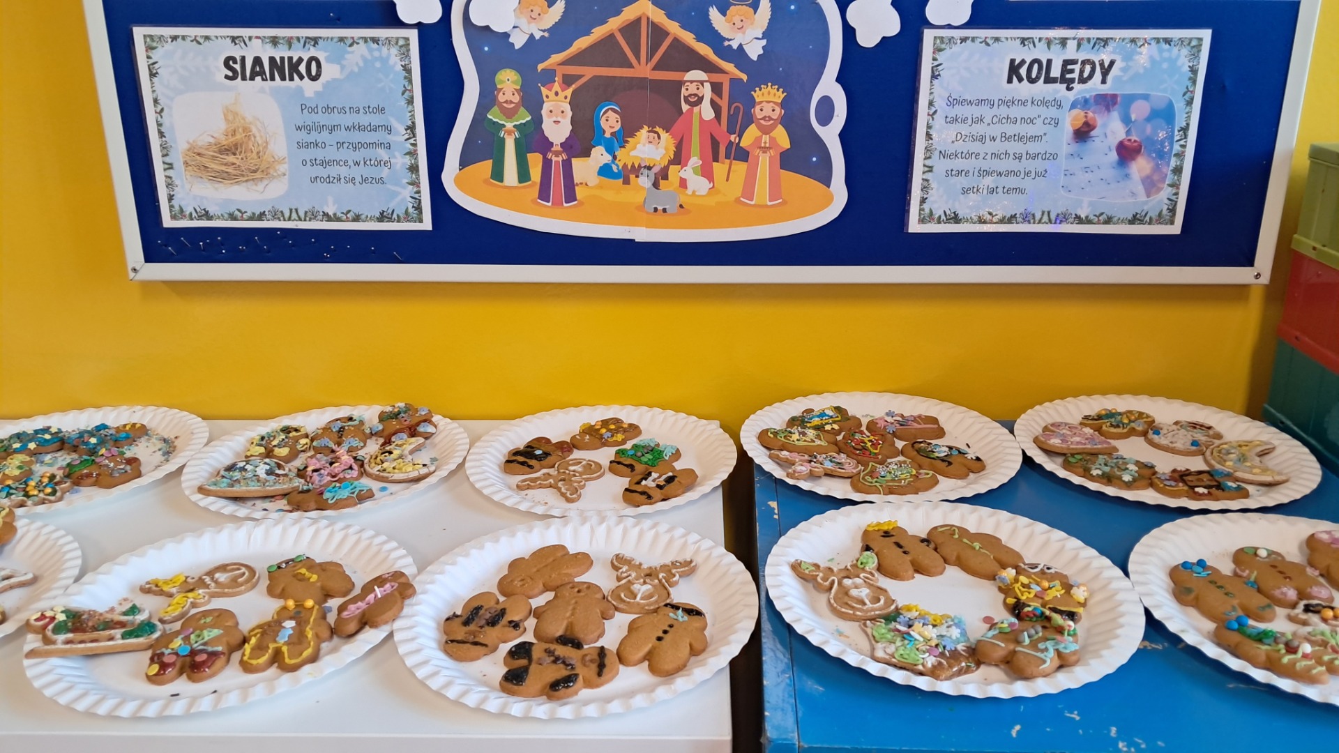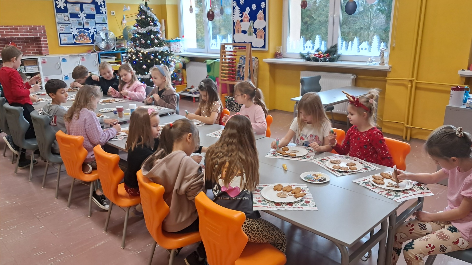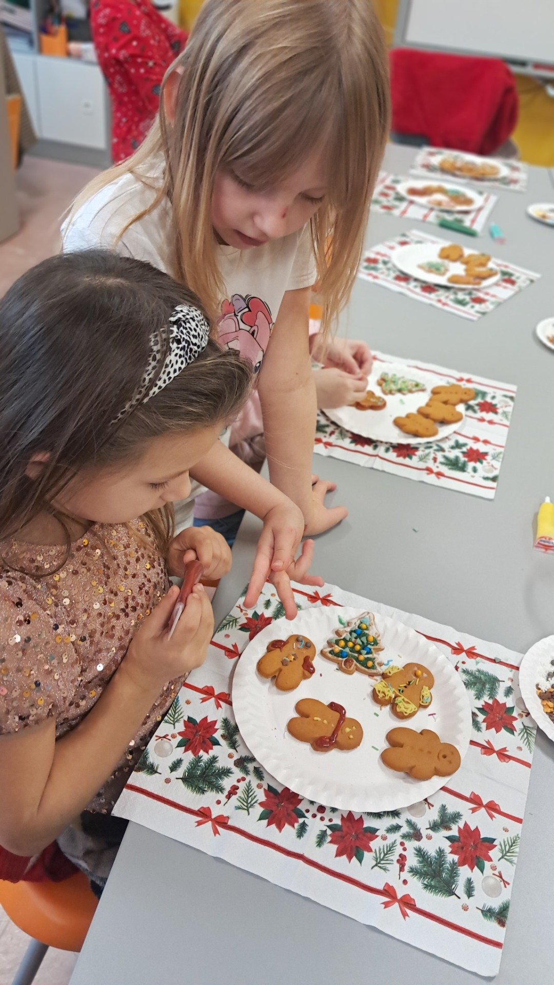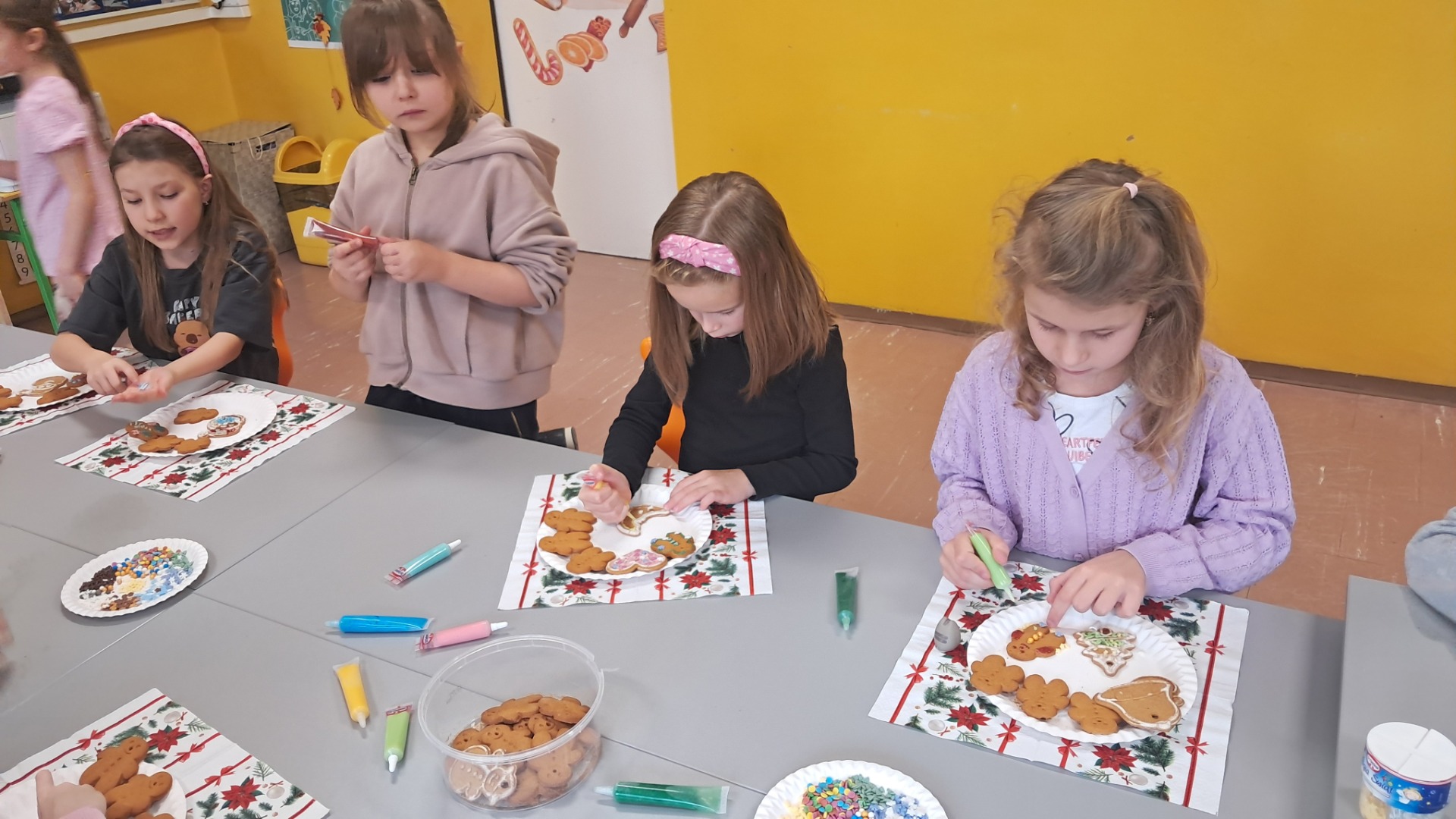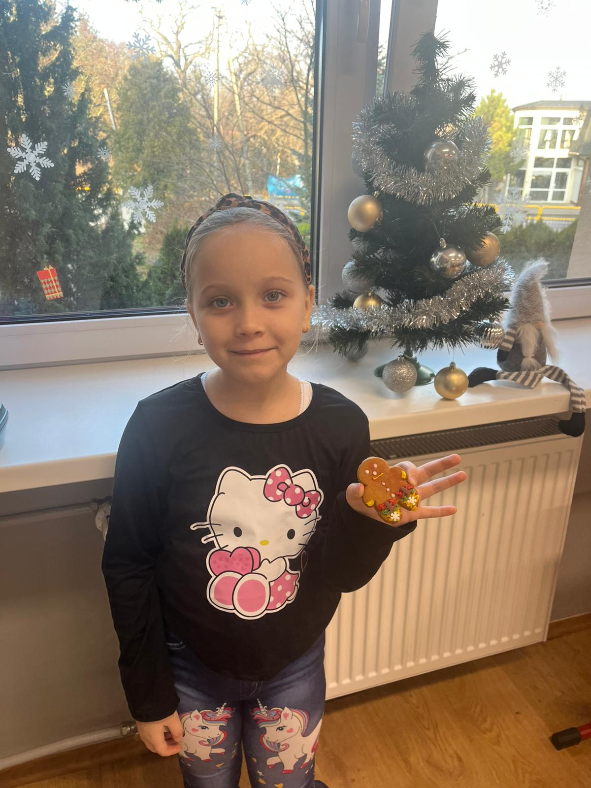 Przedświąteczny czas każdemu kojarzy się z pieczeniem i dekorowaniem pierników oraz wspólnym kolędowaniem. Zgodnie z tradycją w klasach Ia i Ib dzieci zebrały się, aby w swoim gronie udekorować świateczne pierniczki. Na stołach pojawiły się kolorowe pisaki z lukrem, posypki, które pomogły w dekorowaniu. Zdobienie okazało się nie tylko twórczym wyzwaniem, ale także świetną okazją do integracji i wspólnego spędzania czasu w duchu zbliżających się świąt.