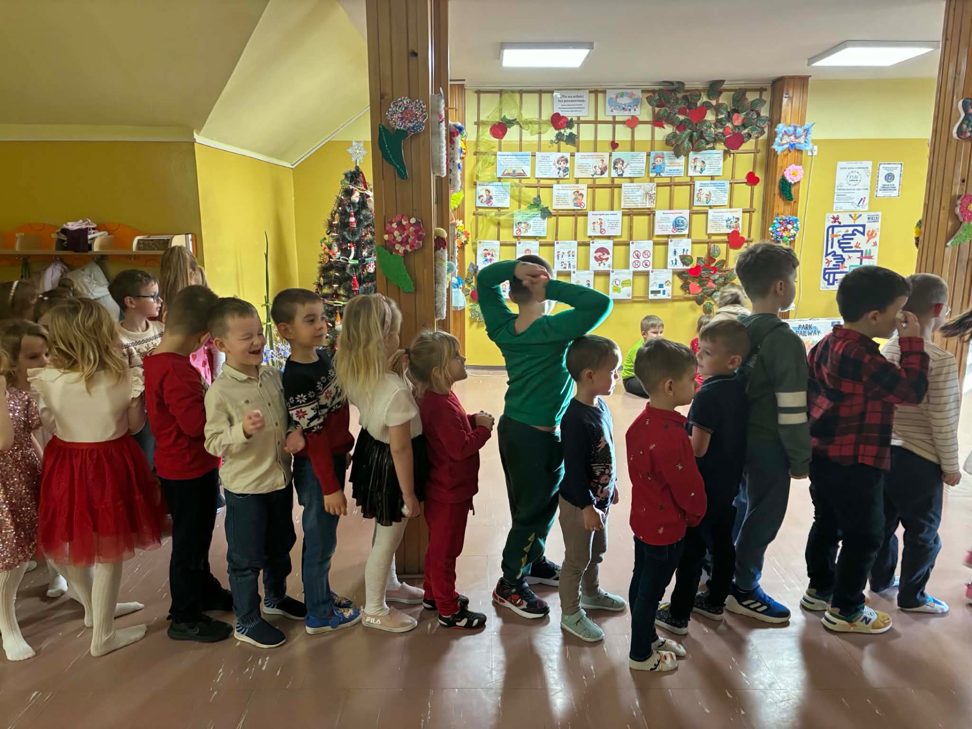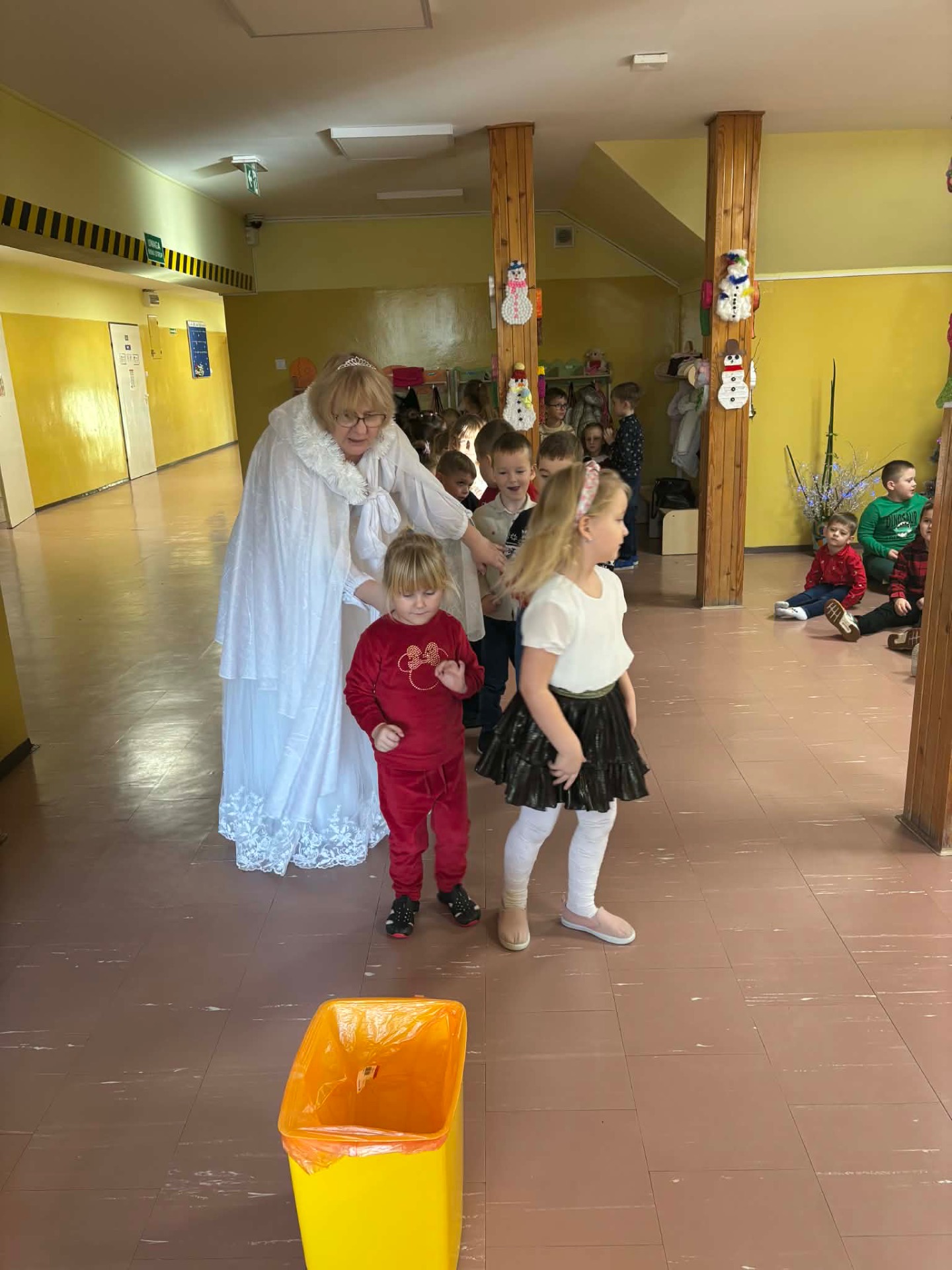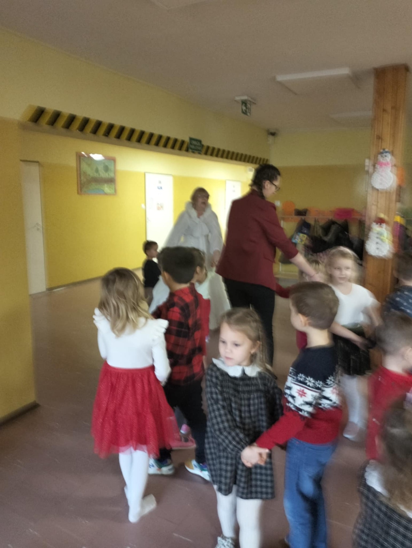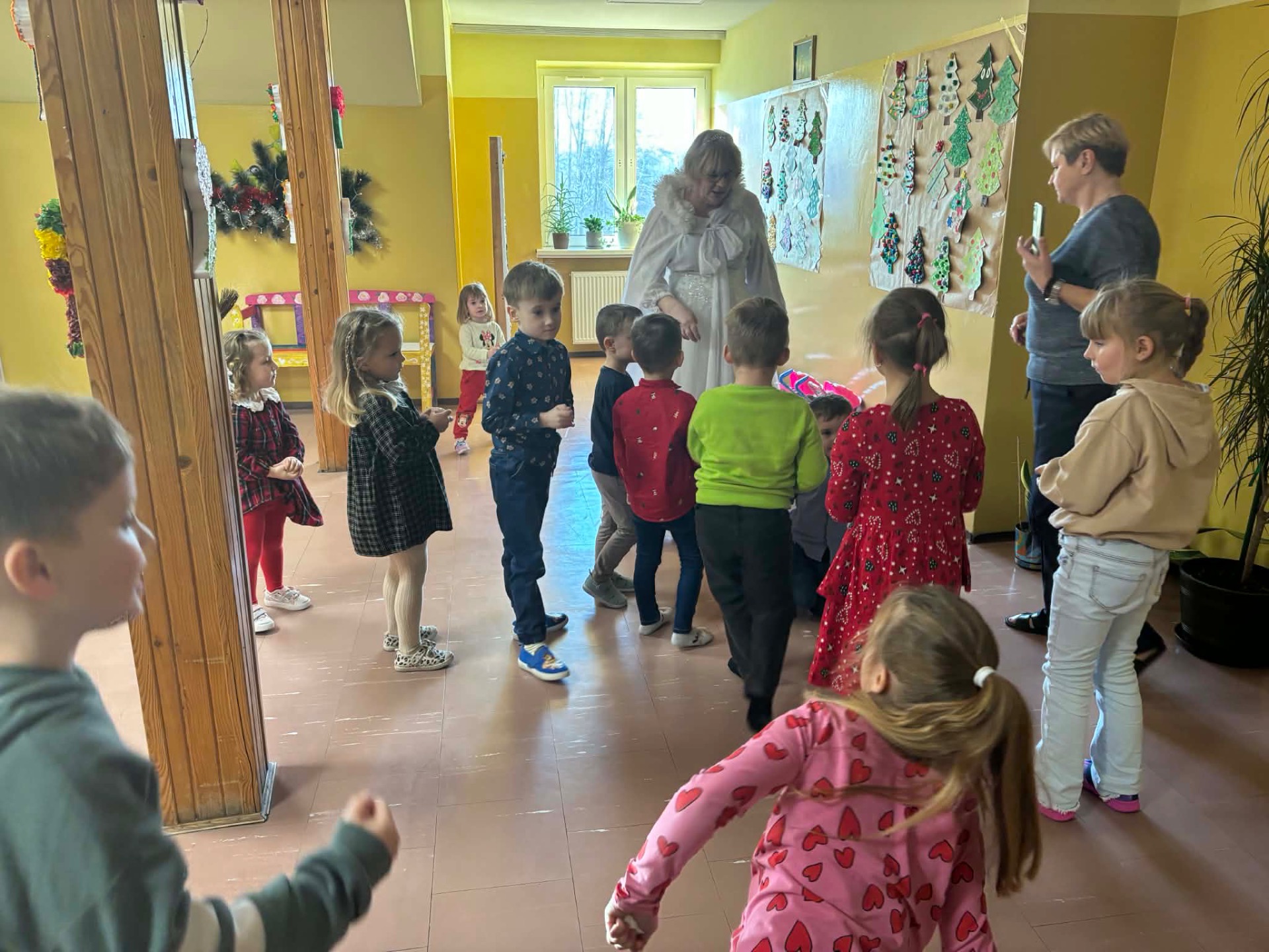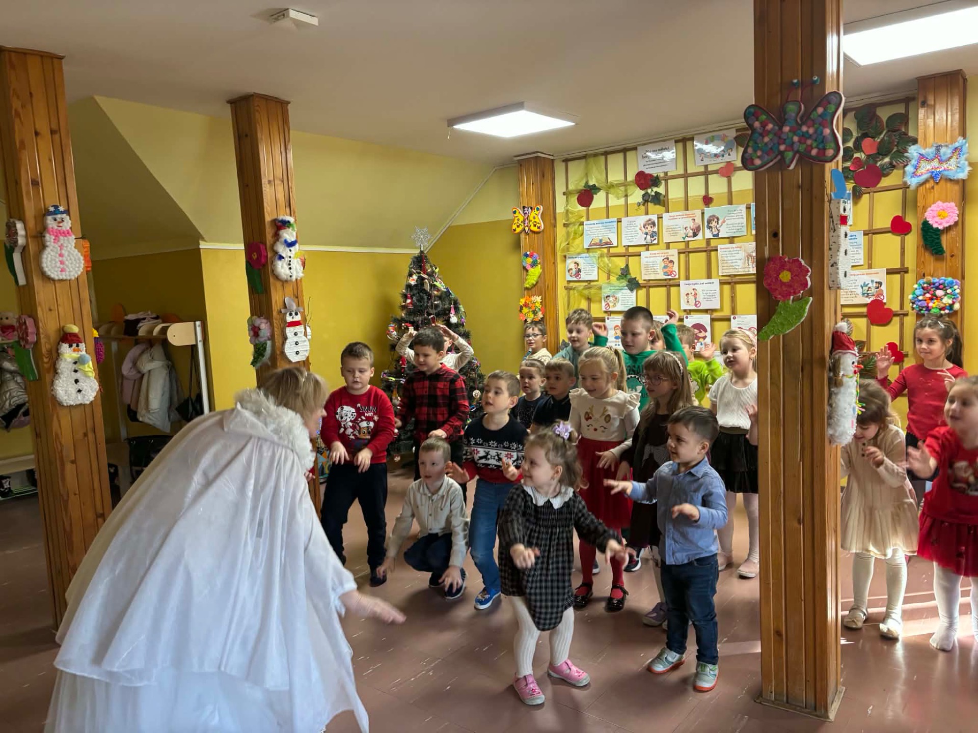 19 grudnia wszystkie przedszkolaki przywitały Panią Zimę która wręczyła nagrody w konkursie na najładniejszą choinkę. W naszym spotkaniu uczestniczyła Pani dyrektor Agnieszka Paradowska , która w imieniu swoim i Pana wójta Karola Gutkowicza podarowała każdej grupie piękne prezenty. Dziękujemy i życzymy wszystkim Wesołych Świąt.