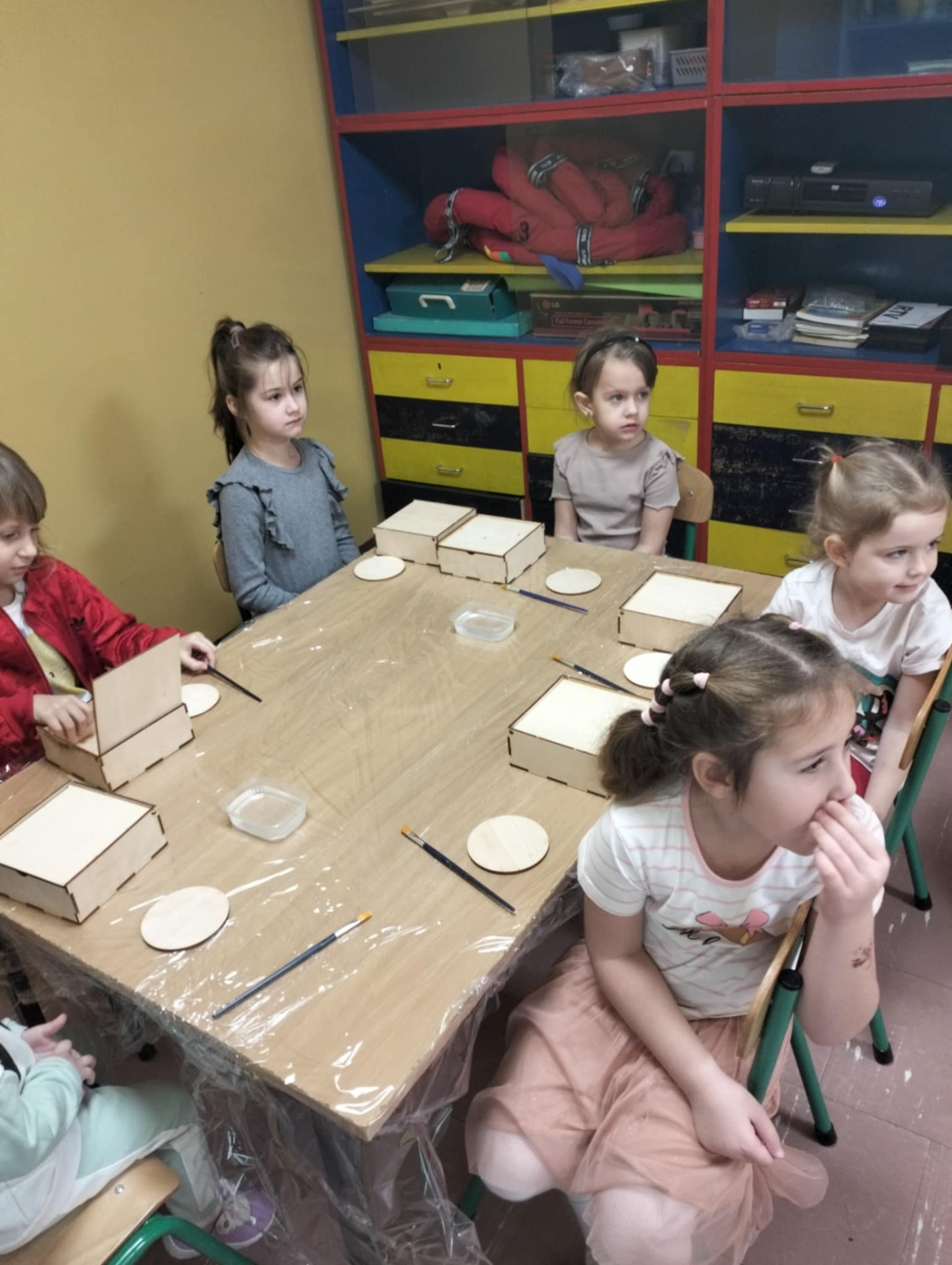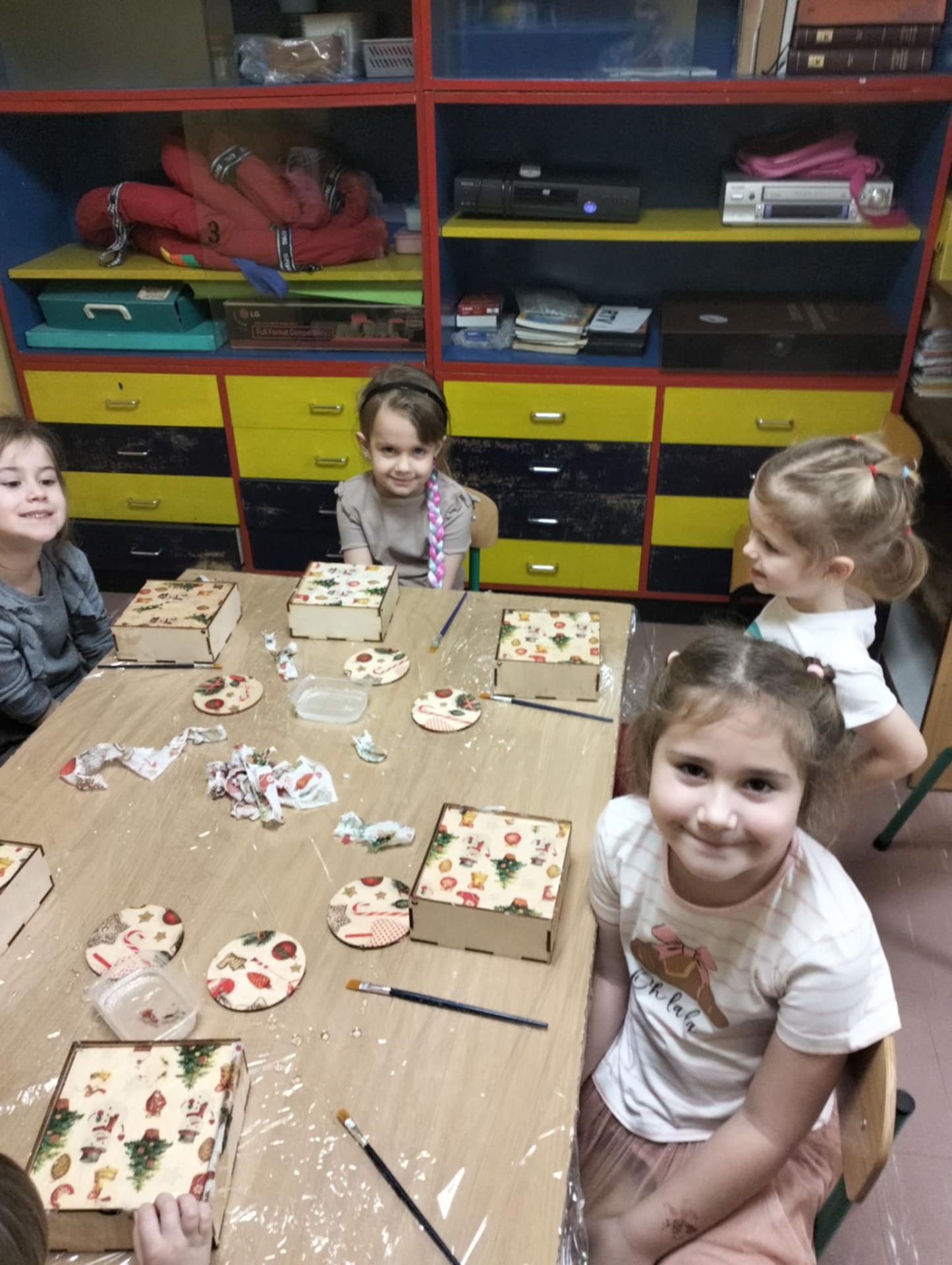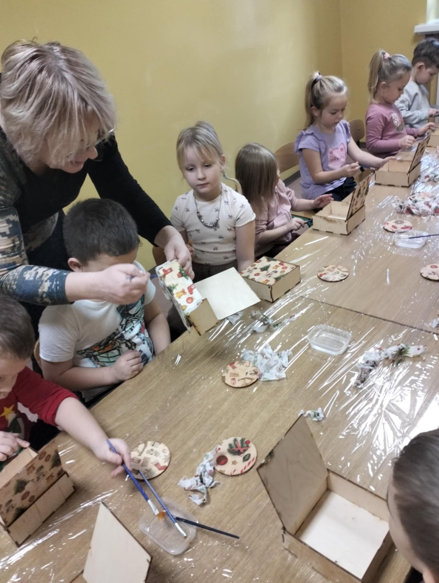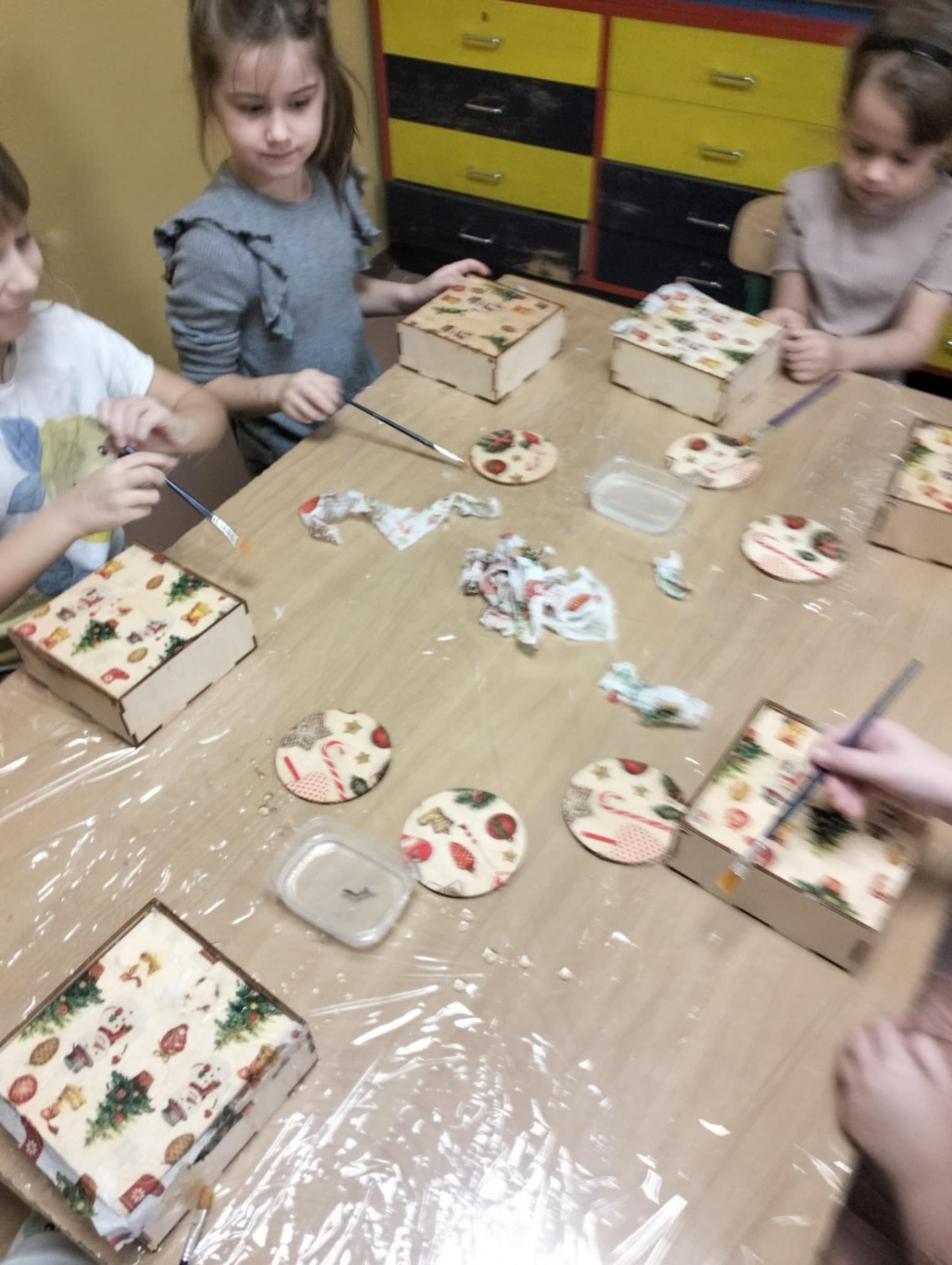 11 grudnia dzieci z oddziałów 0a i 0b uczestniczyły w warsztatach świątecznych z wielkim zaangażowaniem wykonały skrzyneczki na świąteczne skarby np.slodkie pierniczki.