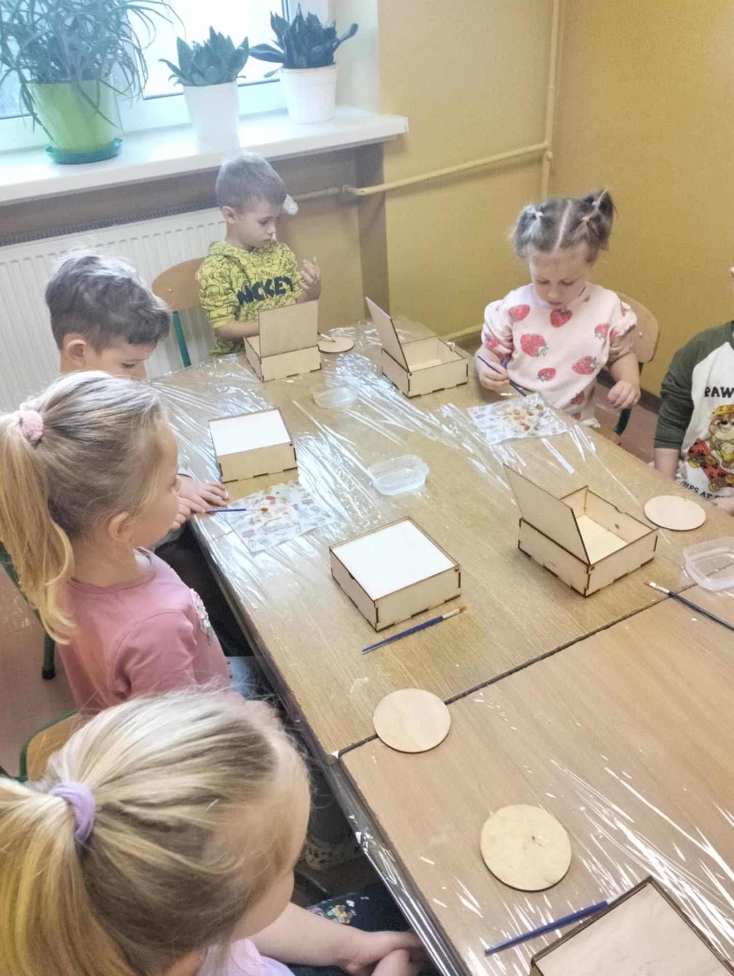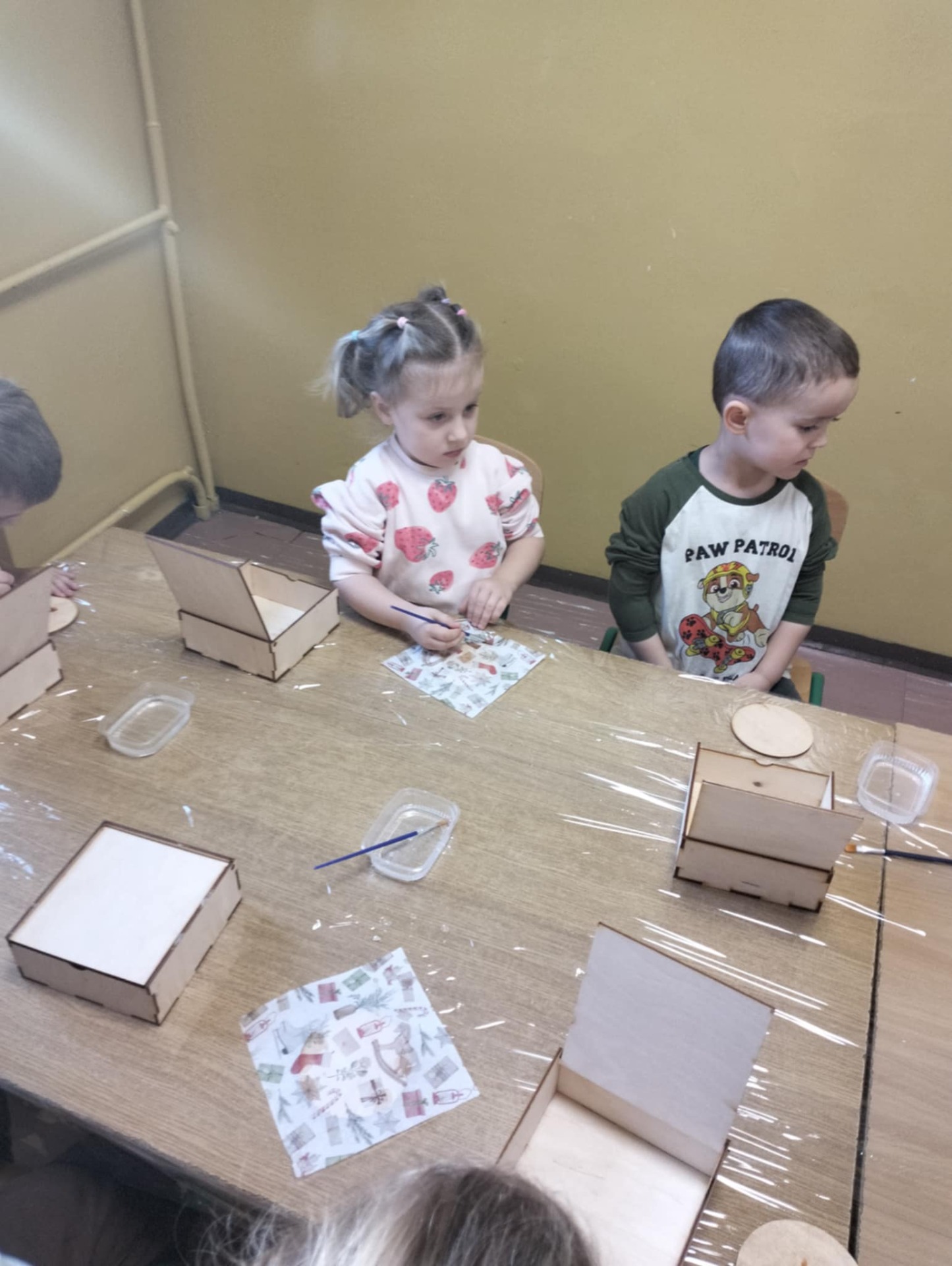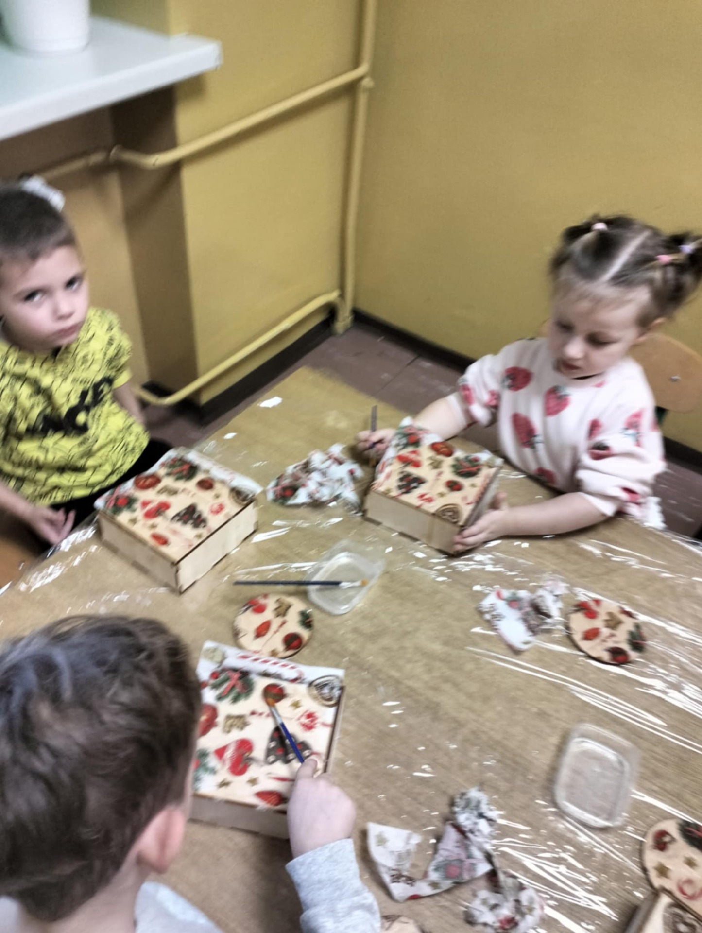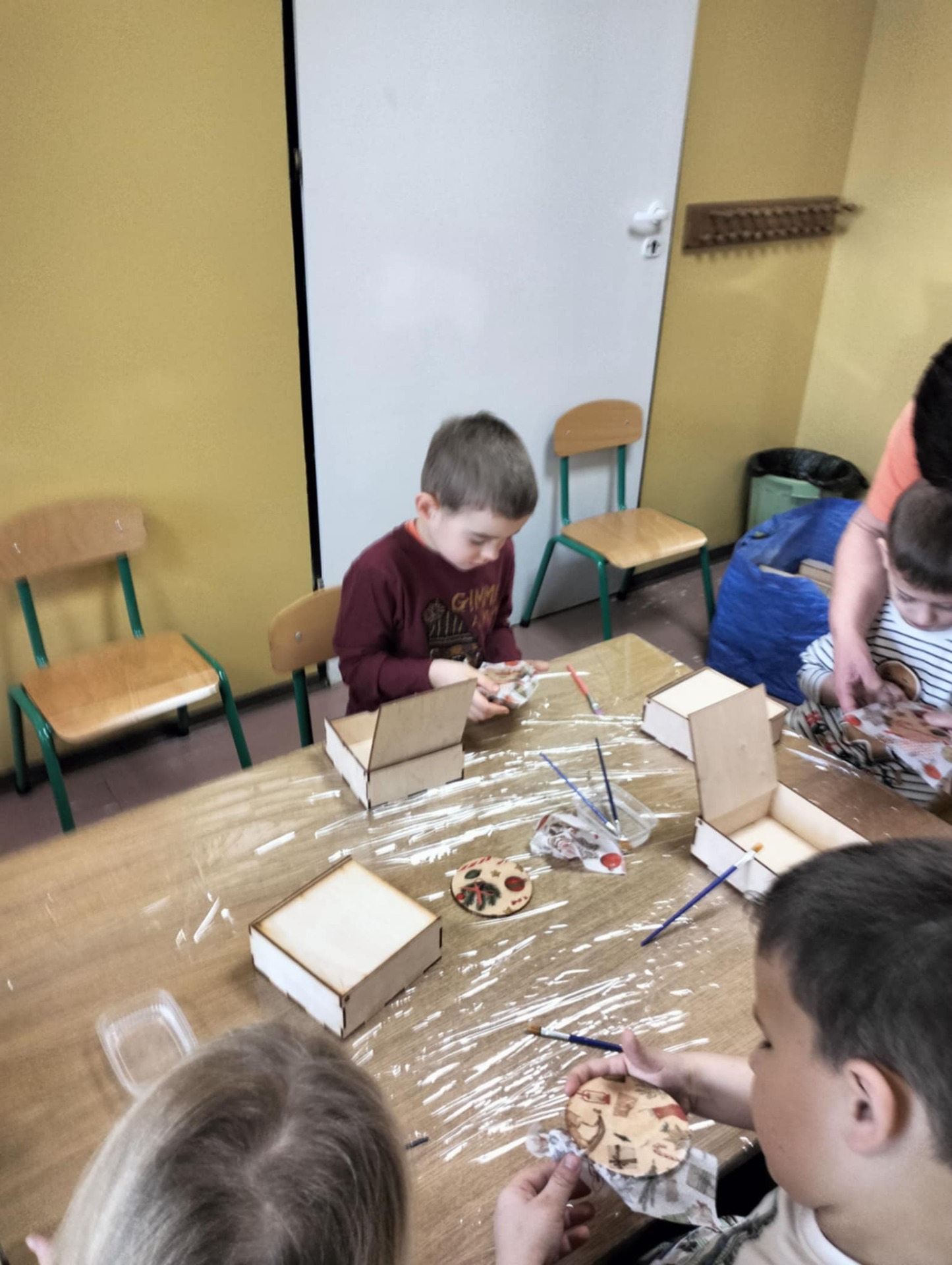 11 grudnia dzieci z oddziałów 0a i 0b uczestniczyły w warsztatach świątecznych z wielkim zaangażowaniem wykonały skrzyneczki na świąteczne skarby np.slodkie pierniczki.