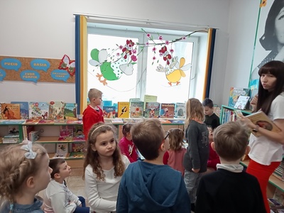 Lekcja biblioteczna w CHOTOMKU klas piątych
