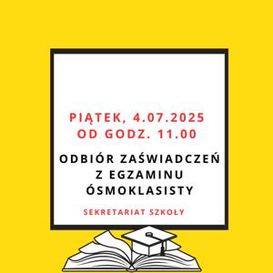 Odbiór zaświadczeń z egzaminu ósmoklasisty